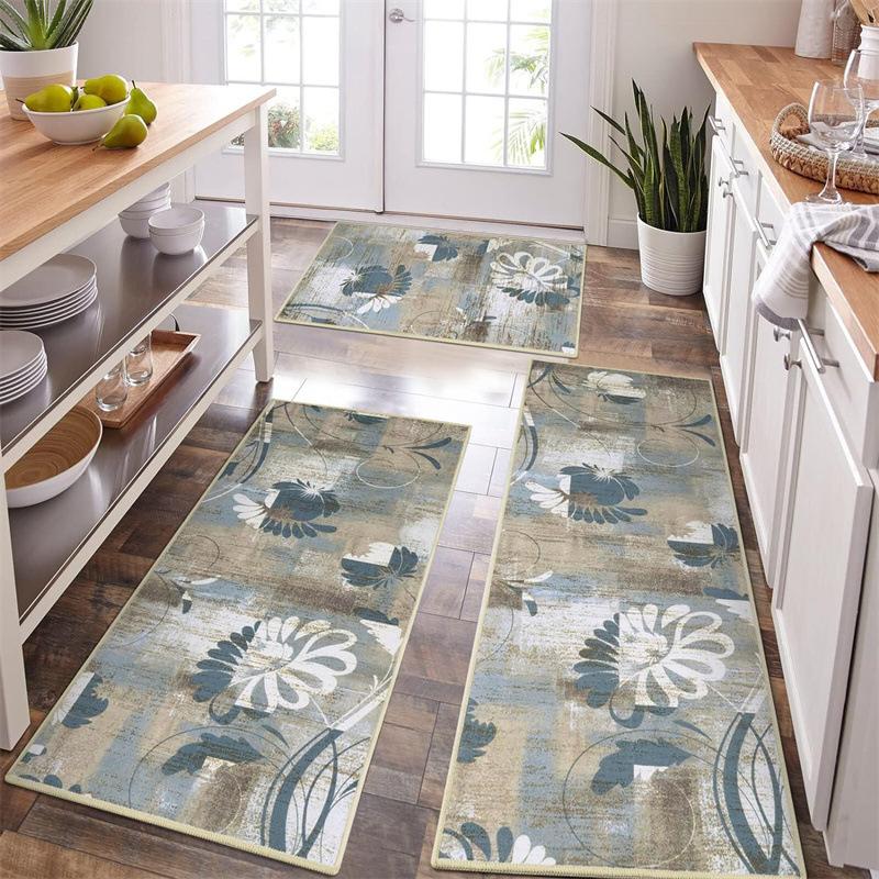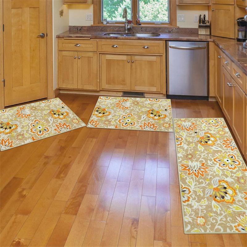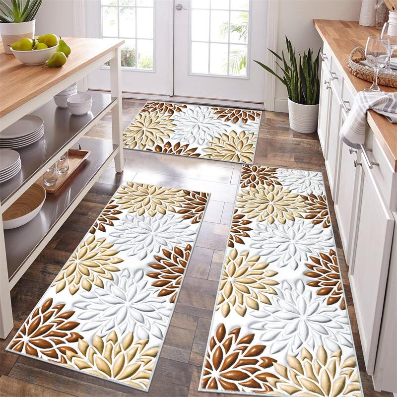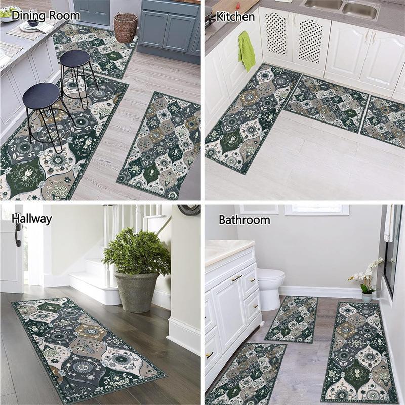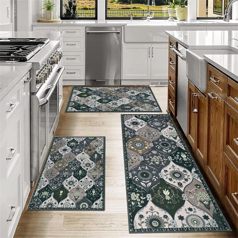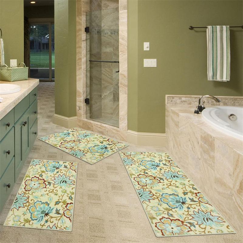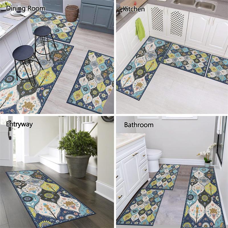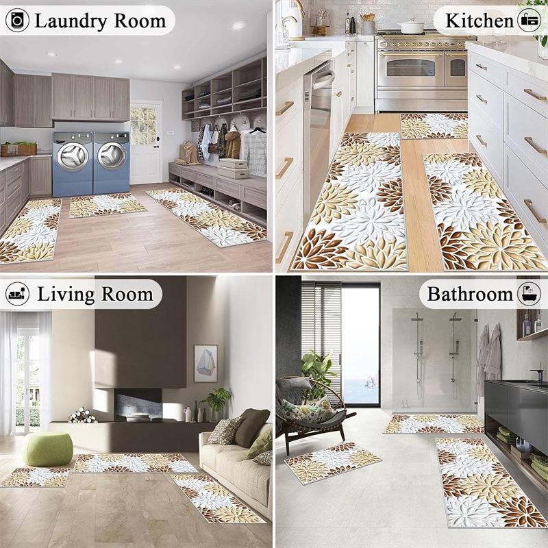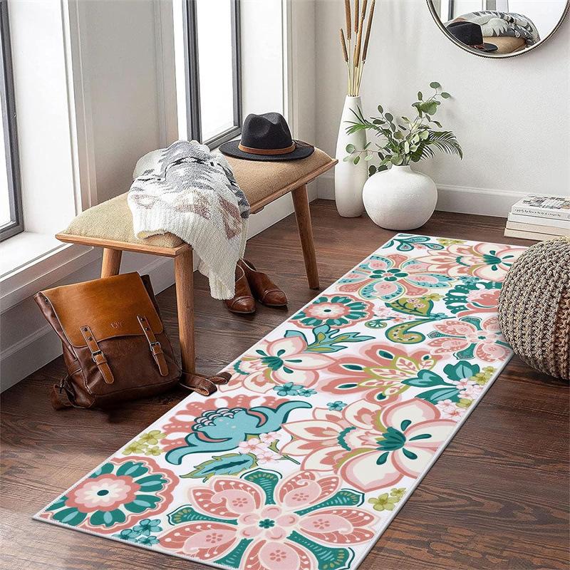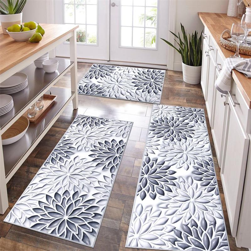 Tapete de três peças para sala de estar com flor Luoshen persa transfronteiriça, tapete antiderrapante para cabeceira do quarto, tapete de sofá, tapete de fácil manutenção