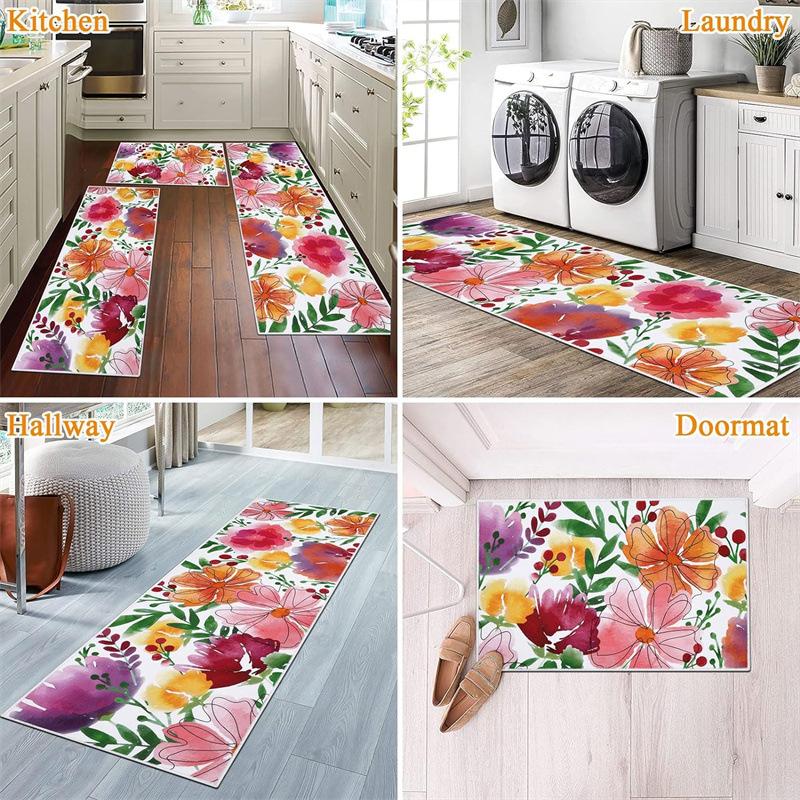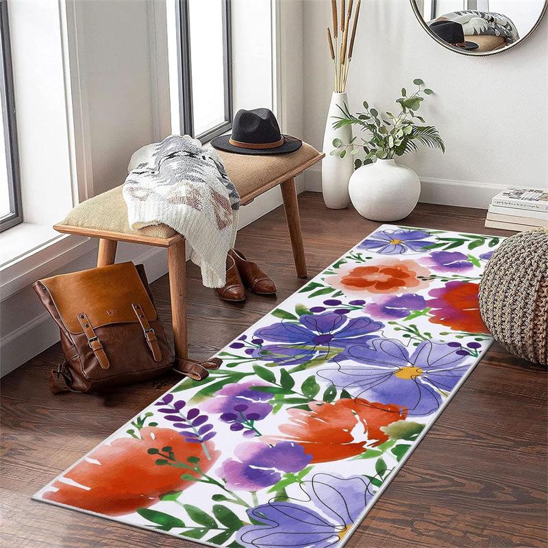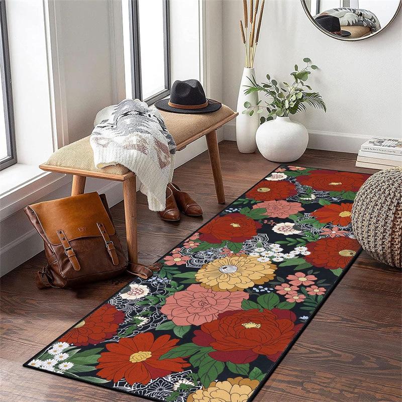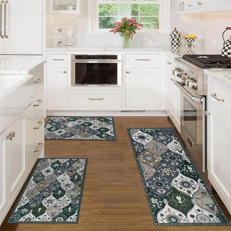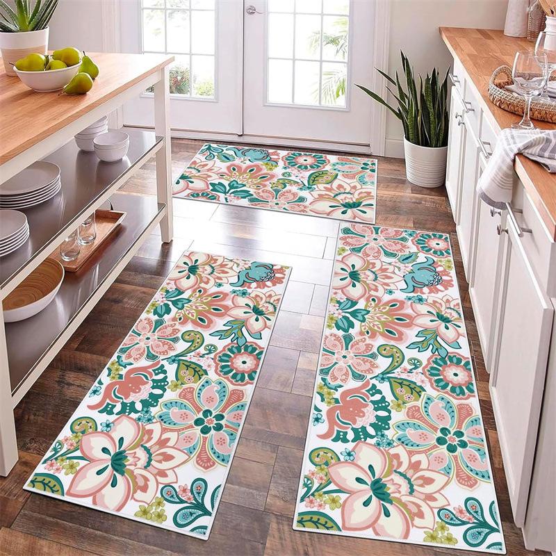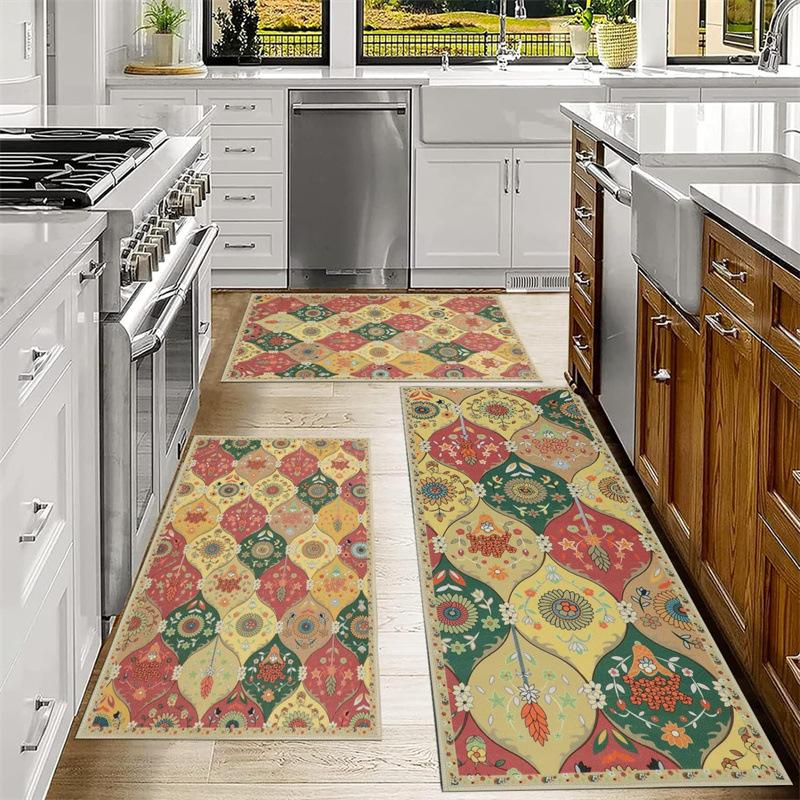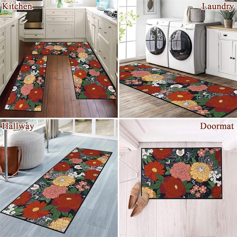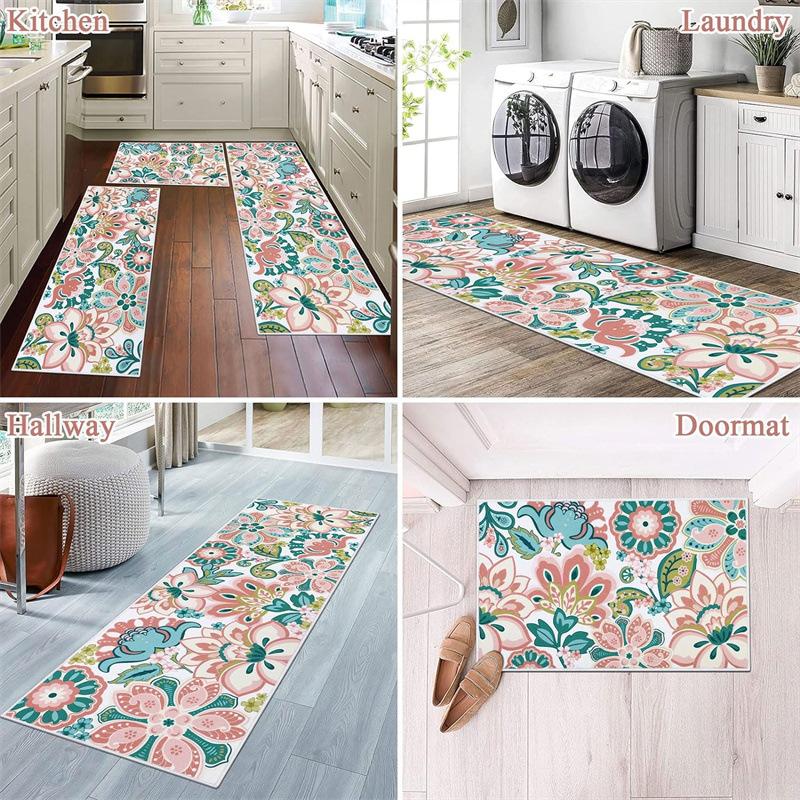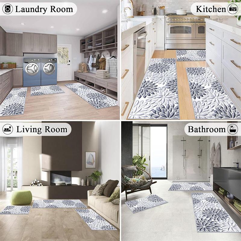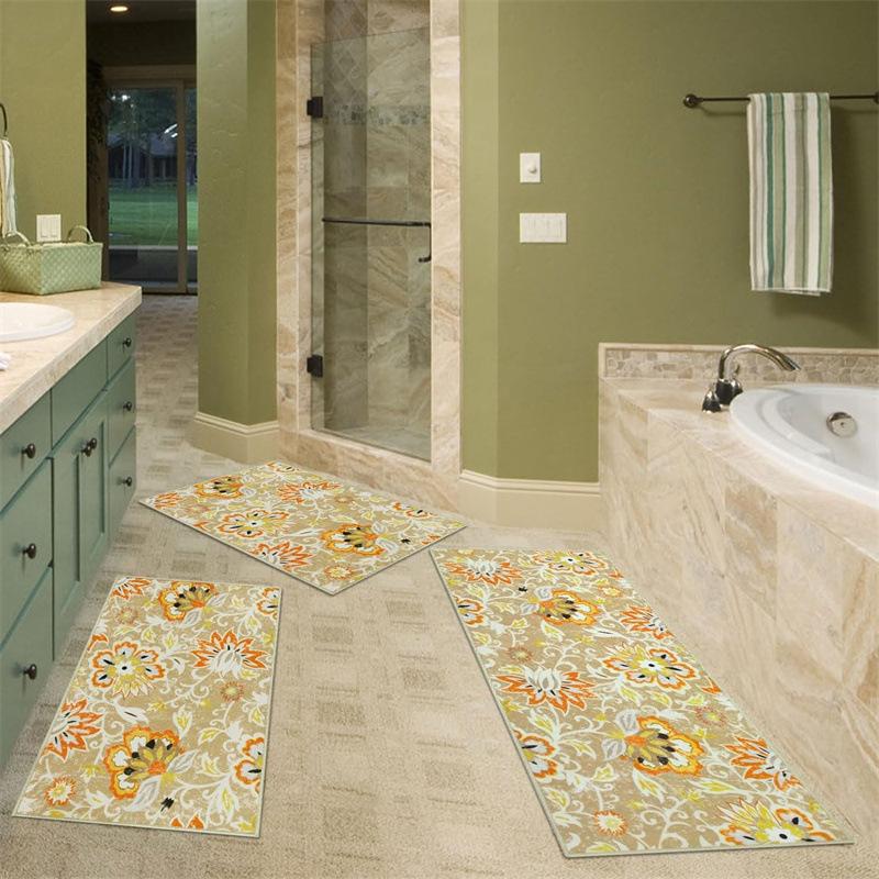Tapete de três peças para sala de estar com flor Luoshen persa transfronteiriça, tapete antiderrapante para cabeceira do quarto, tapete de sofá, tapete de fácil manutenção