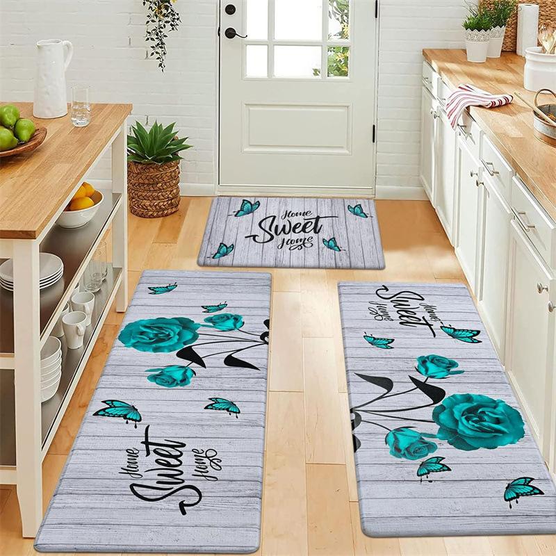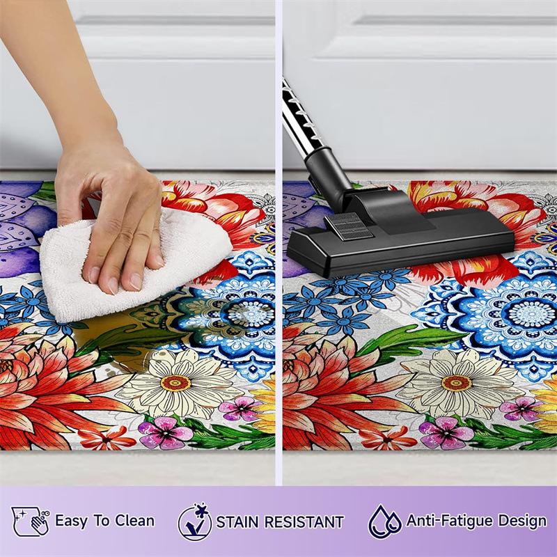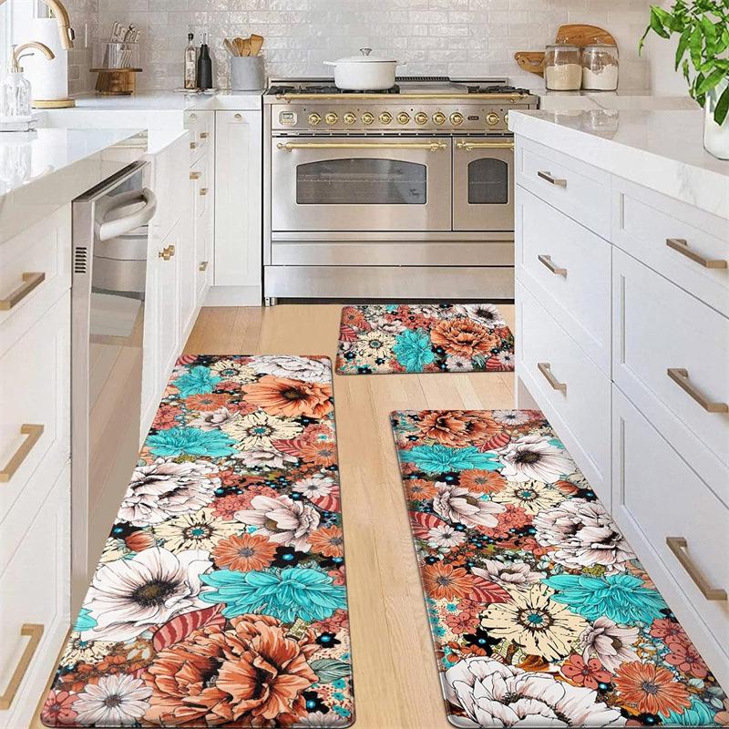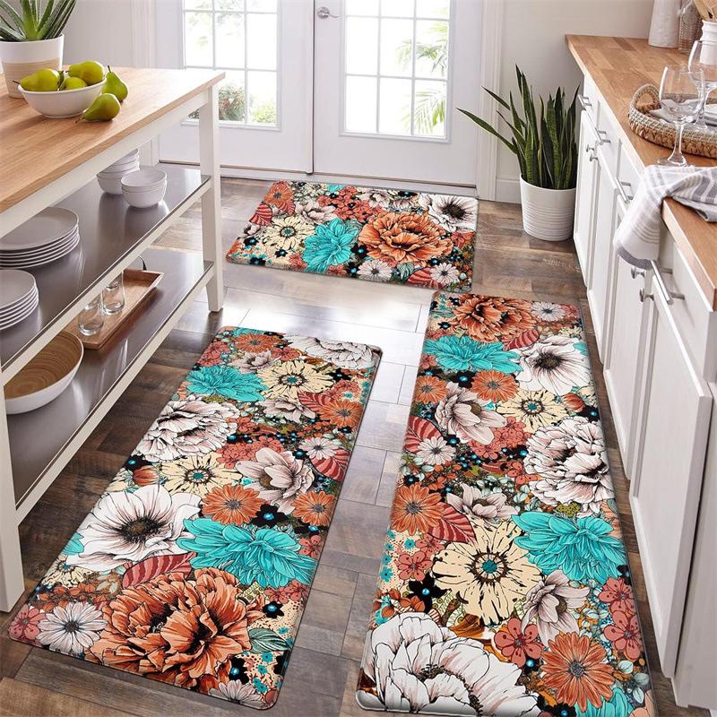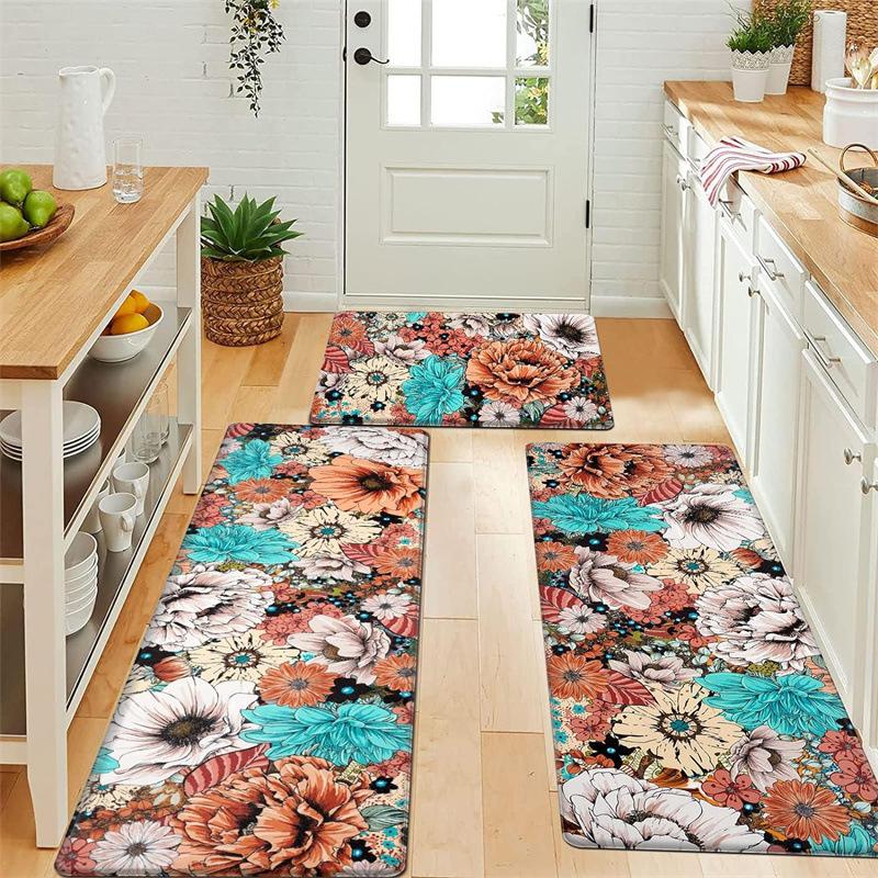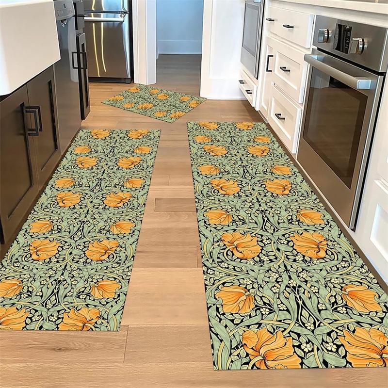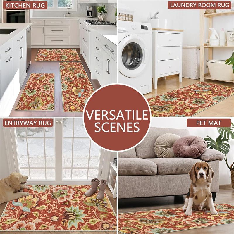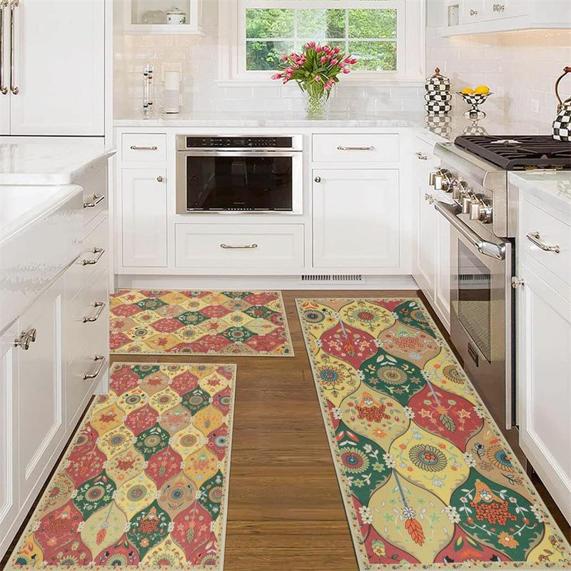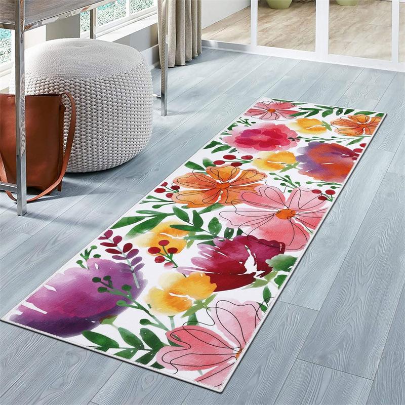 Tapete de três peças para sala de estar com flor Luoshen persa transfronteiriça, tapete antiderrapante para cabeceira do quarto, tapete de sofá, tapete de fácil manutenção