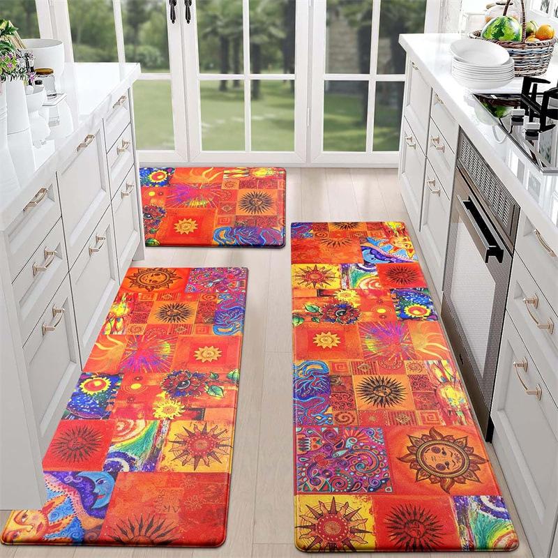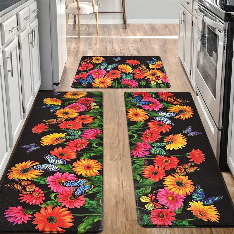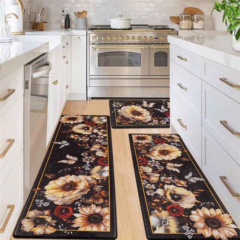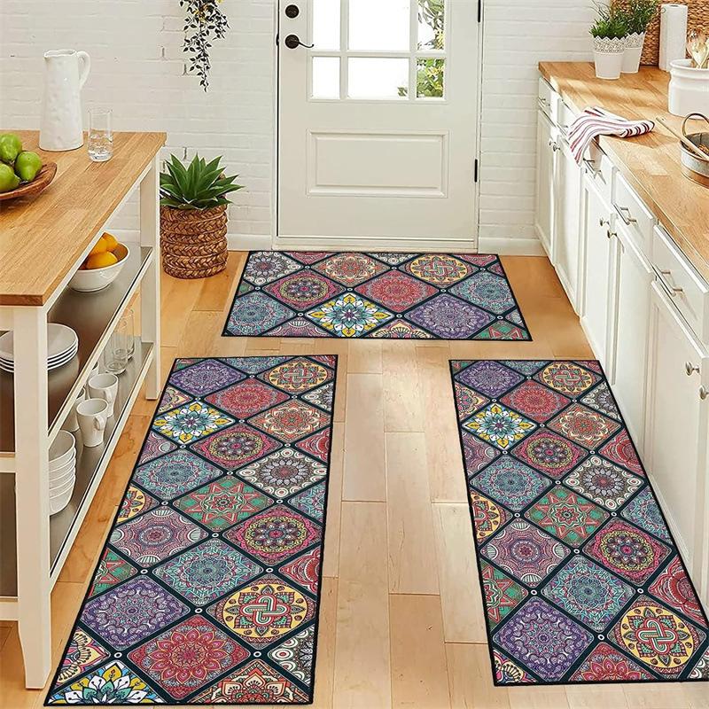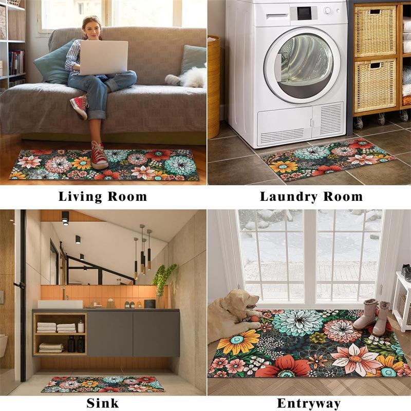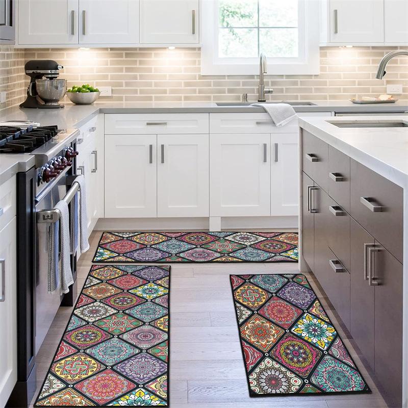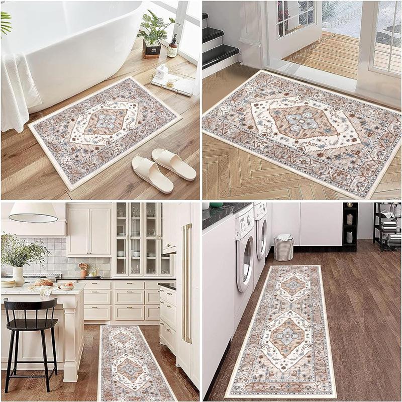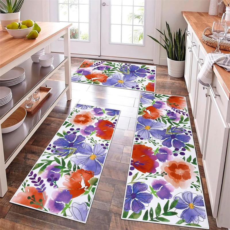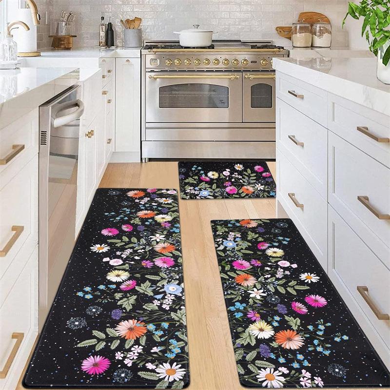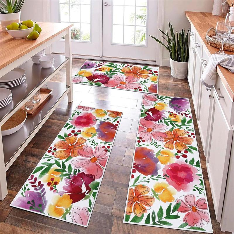 Tapete de três peças para sala de estar com flor Luoshen persa transfronteiriça, tapete antiderrapante para cabeceira do quarto, tapete de sofá, tapete de fácil manutenção