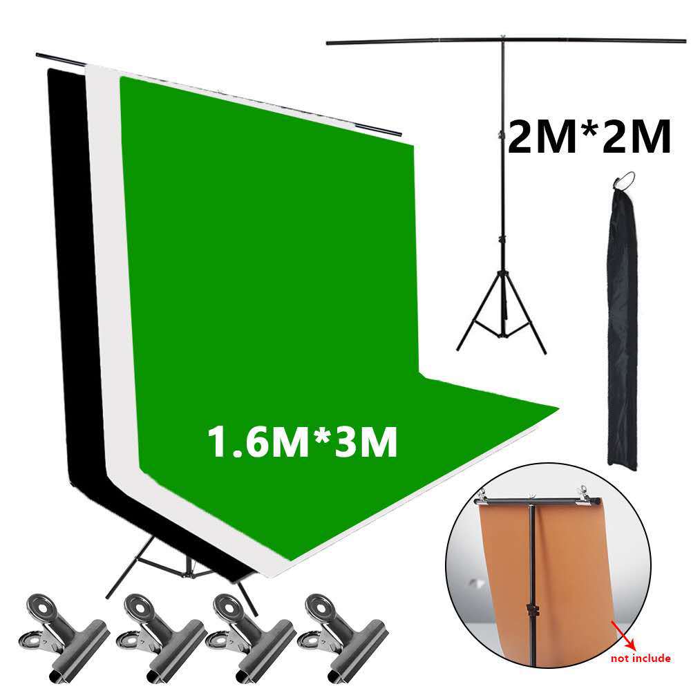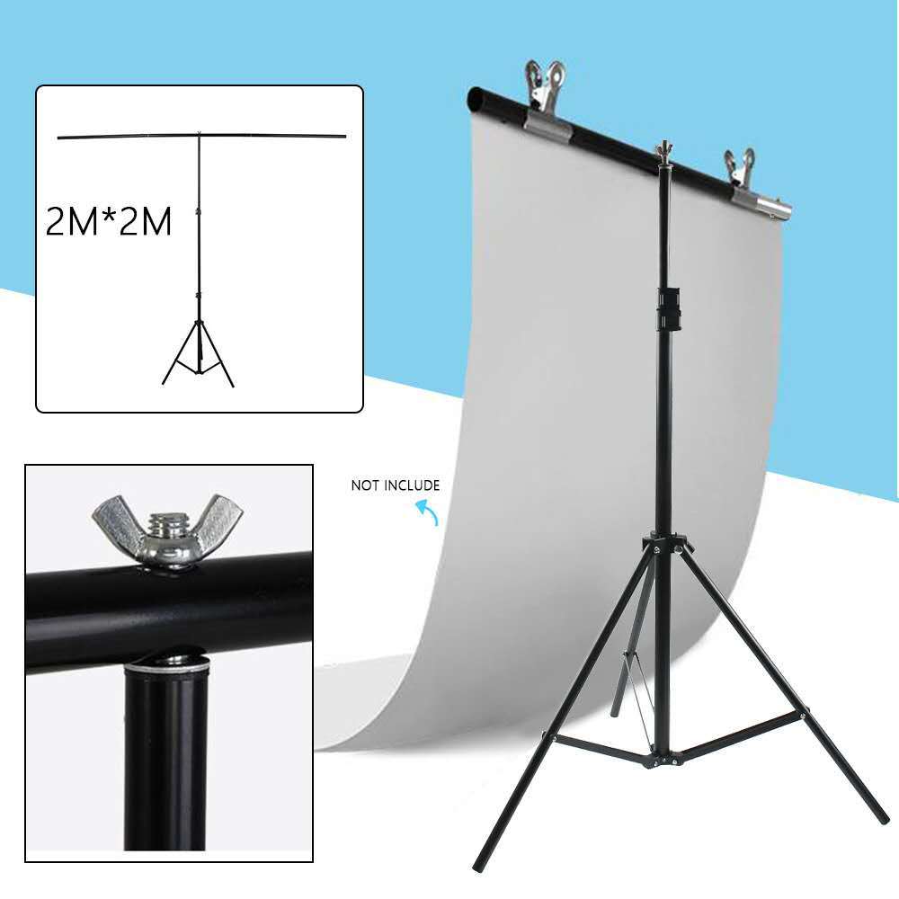 Moldura de fundo em forma de T 2*2 M com suporte de fundo de foto de identificação de tecido de três cores, moldura de fundo retrátil para fotografia portátil