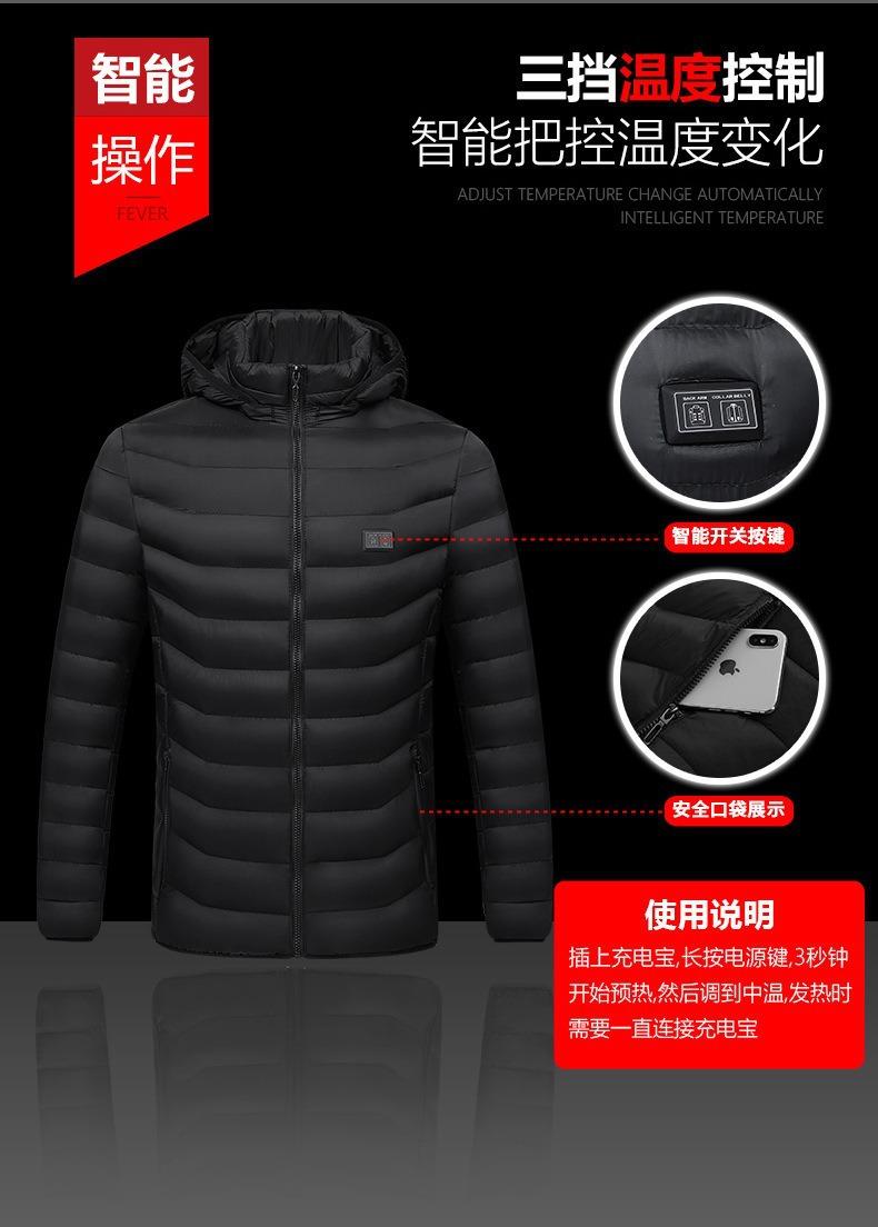 Roupa Inteligente de Aquecimento Elétrico de Inverno Transfronteiriça, Jaqueta de Algodão Aquecida, Jaqueta de Algodão Quente USB de Temperatura Constante, Moderna e Tendência para Homens e Mulheres