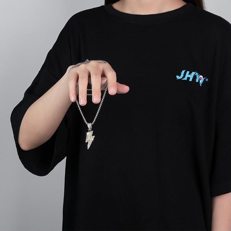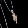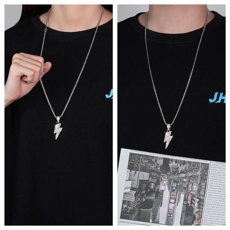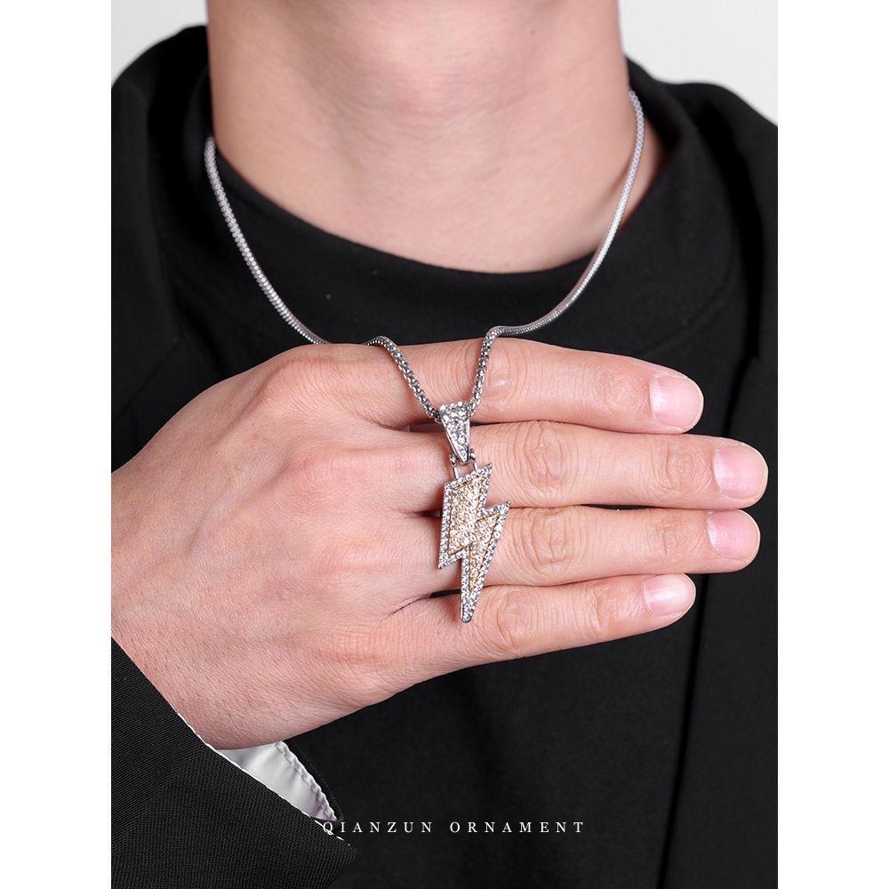 Europeu e Americano Full Diamond Double-Layer Lightning Colar Moderno Masculino Personalizado Luz Luxo Pingente Punk Hip-Hop Acessórios Longa Corrente de Lã para Mulheres