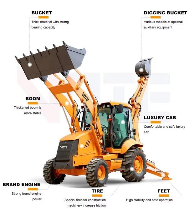 - Nossas retroescavadeiras foram projetadas como um sistema, o que significa que cada peça desempenha um papel crítico.