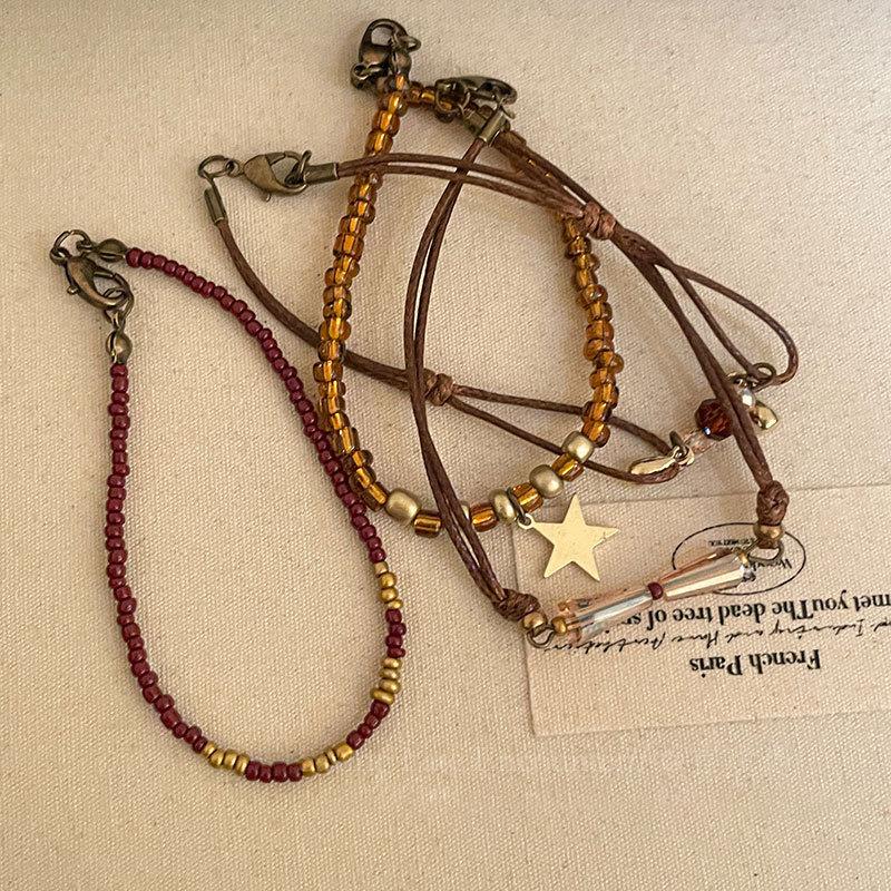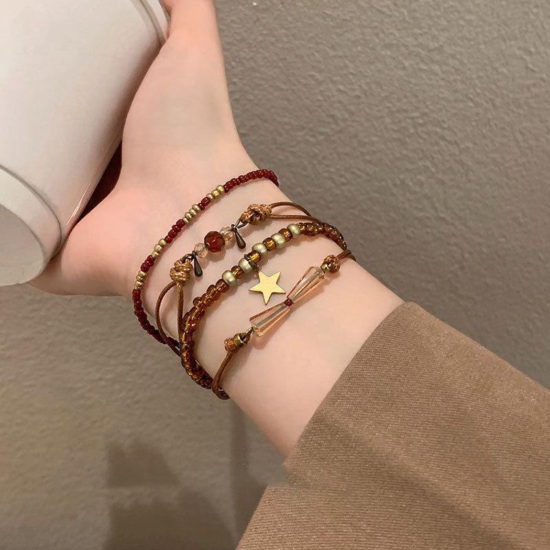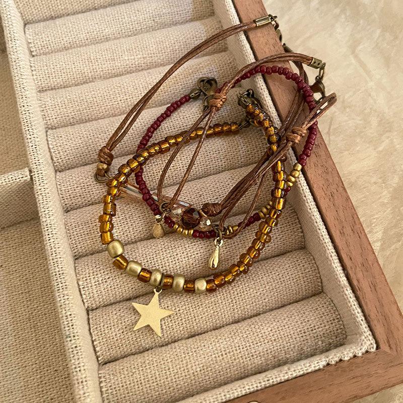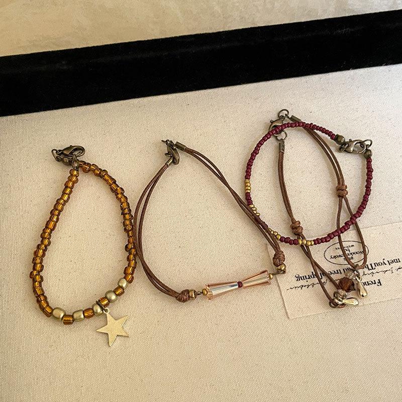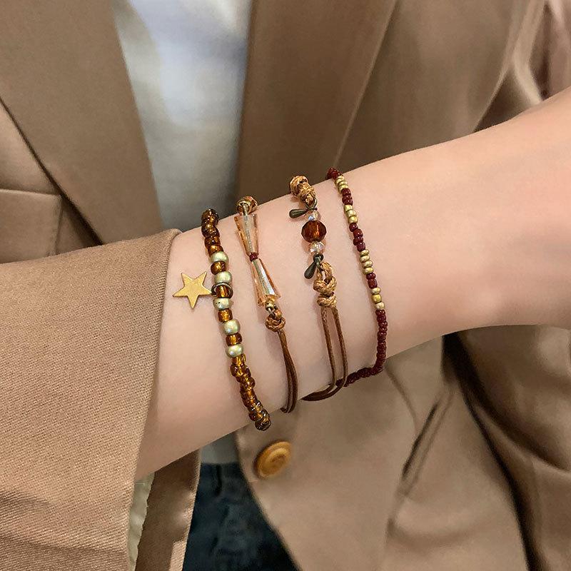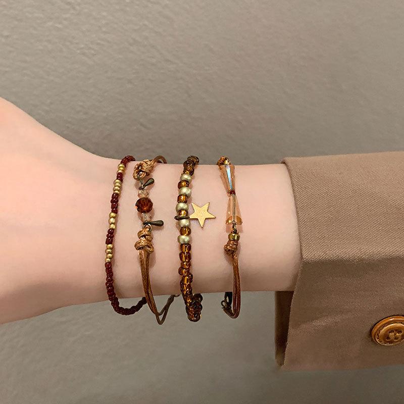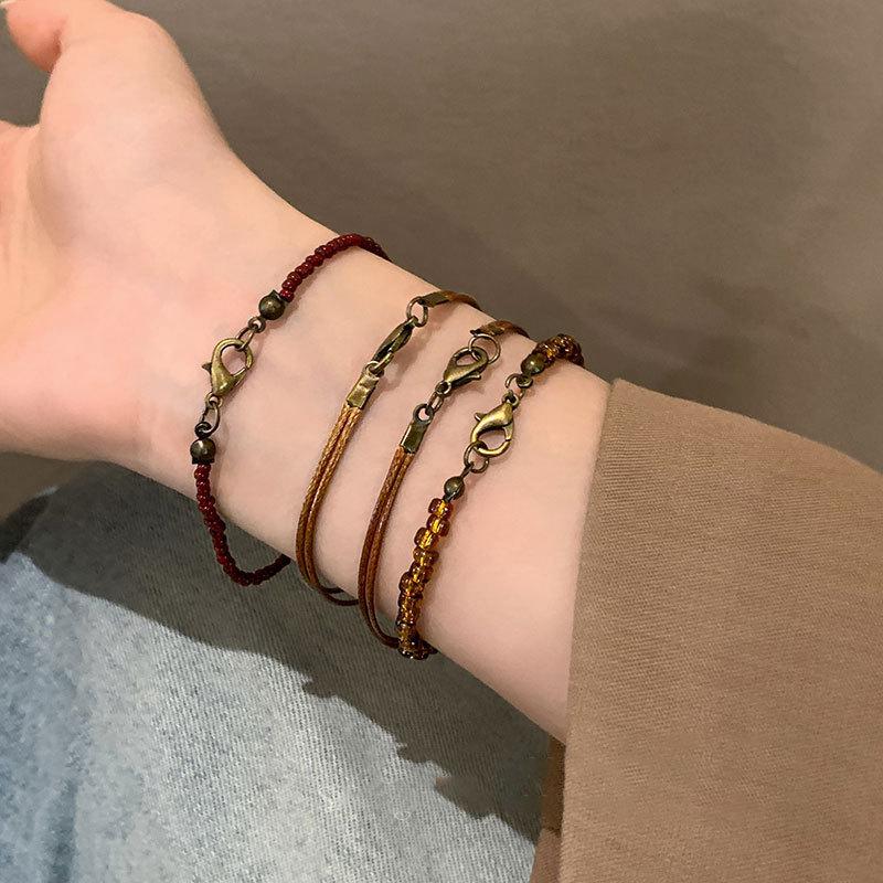 Marrom Estilo Vintage Corda Trançada Pulseira de Contas Feminina Novo Estilo Chinês Nova Chegada Pulseira Estilo Étnico Nicho Pulseira Empilhada