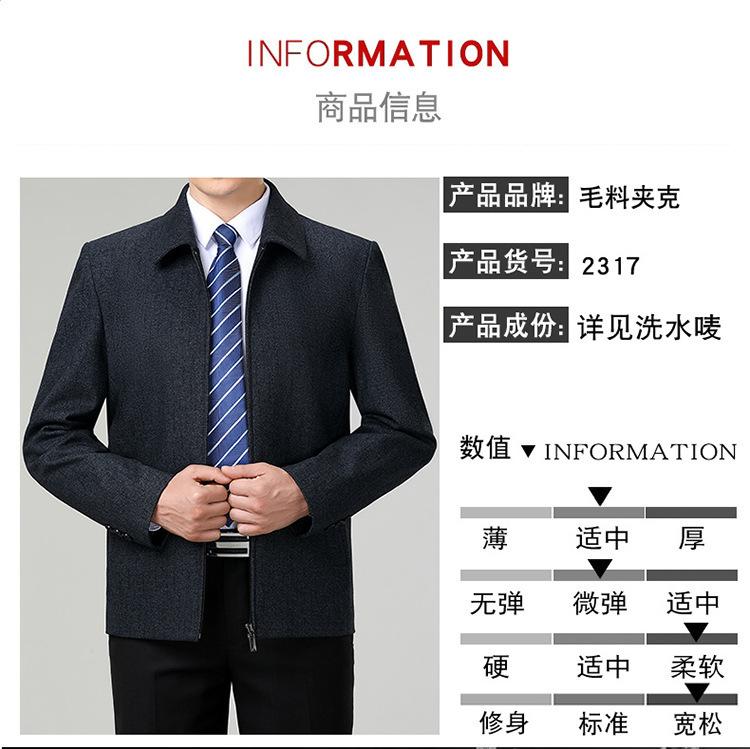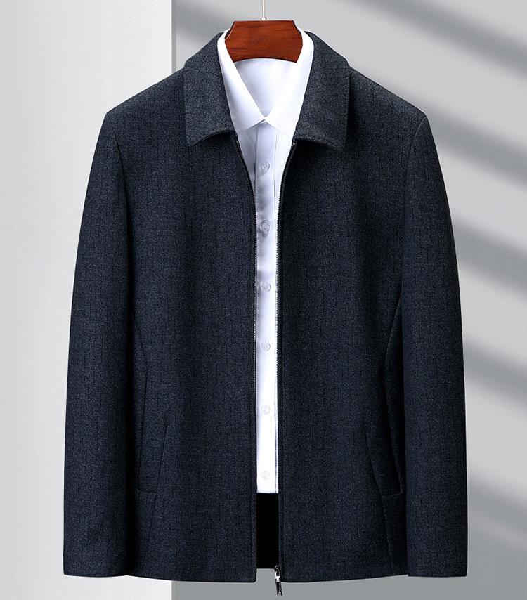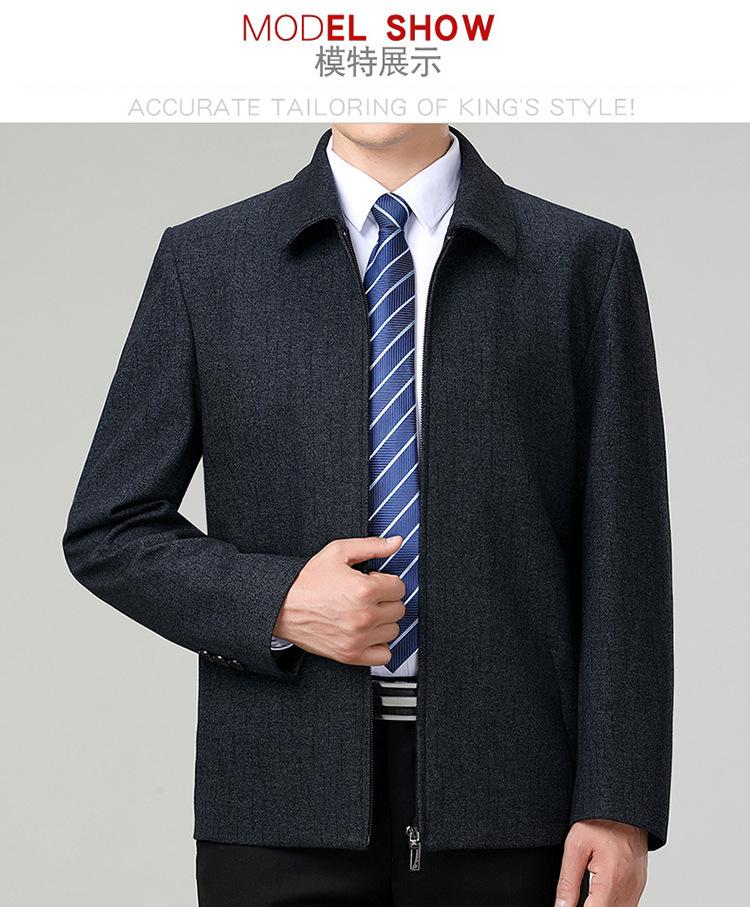 Compre Jaqueta Masculina de Balcão de Marca Outono e Inverno Nova Idade Média e Idosa Business Casual Jaqueta de Lapela Cor Pura Jaqueta de Lã para Homens no atacado no Joom.pro