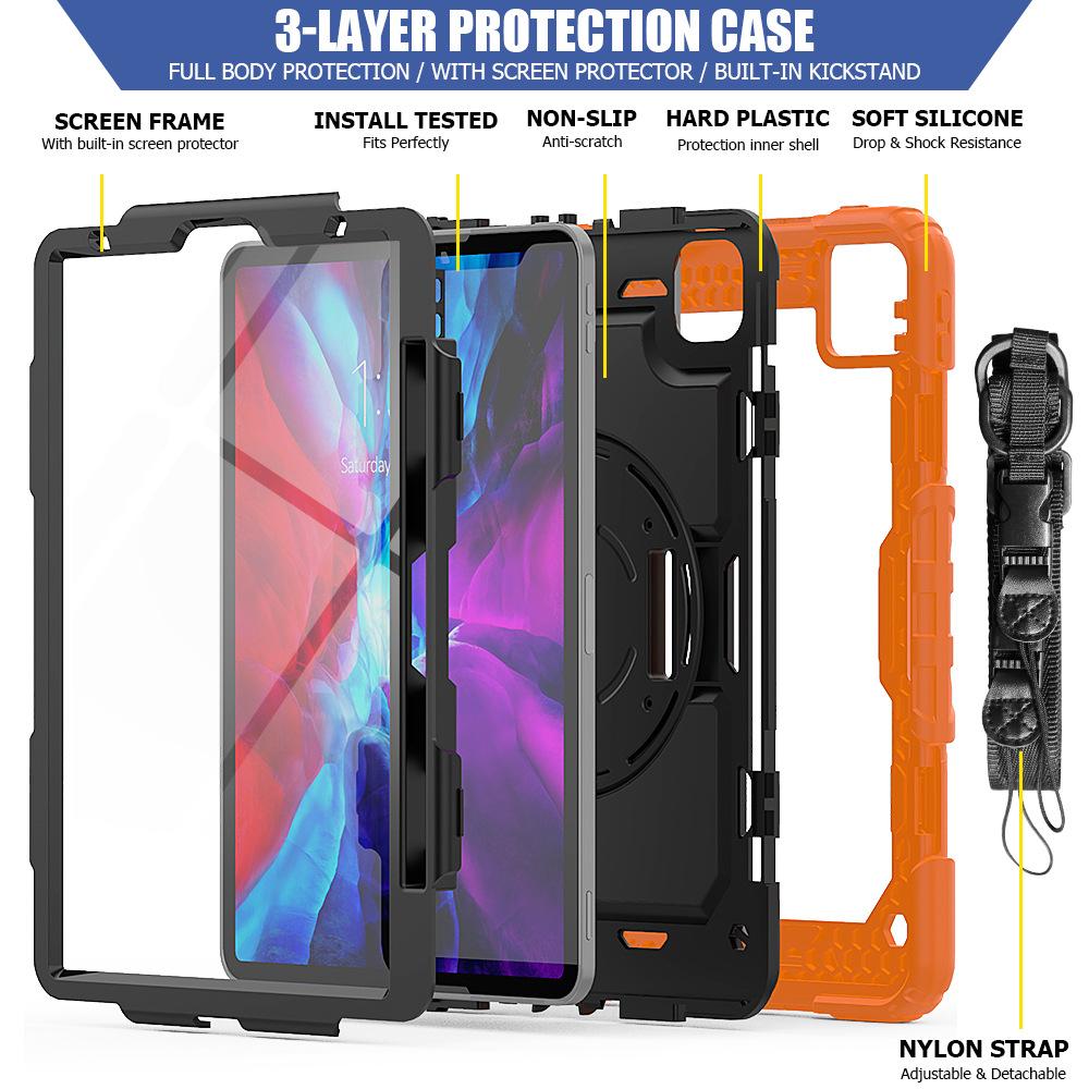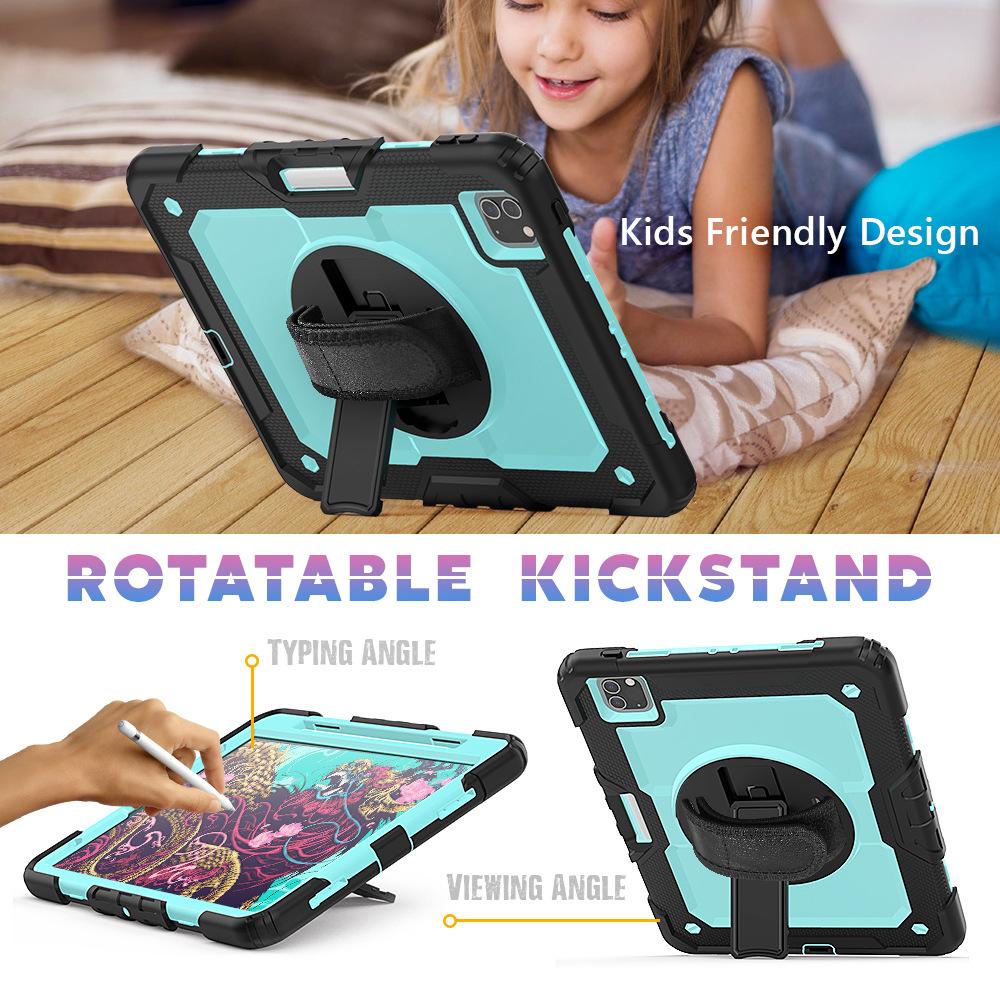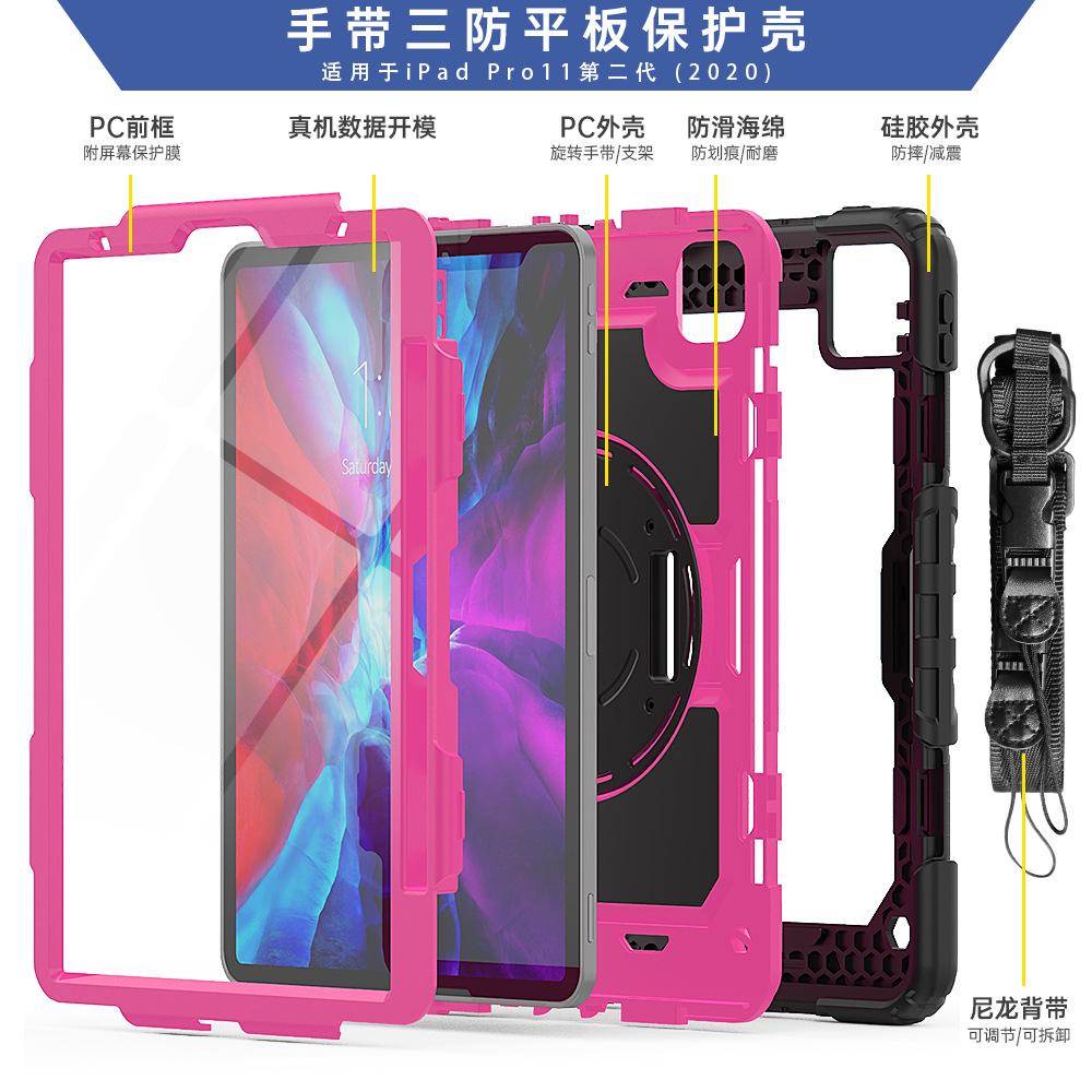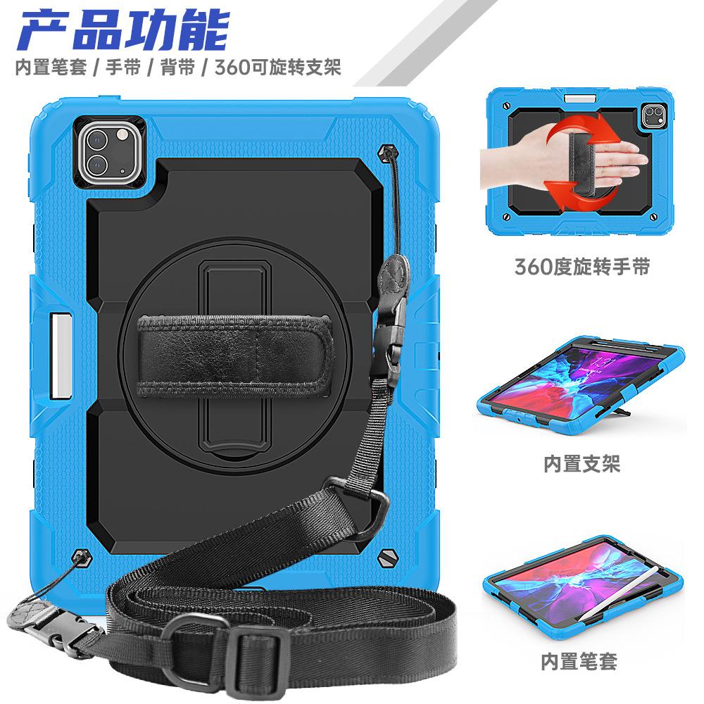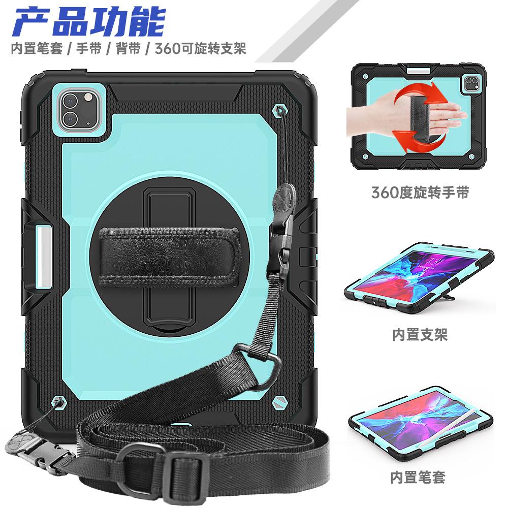 Para iPad Pro 2020 Contraste Cor Alça Capa Plana Silicone PC Suporte Rotativo iPad 11 Polegadas Capa Protetora