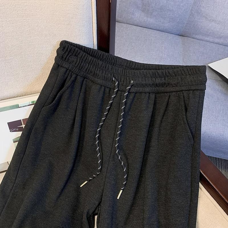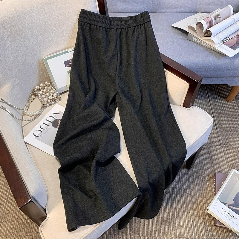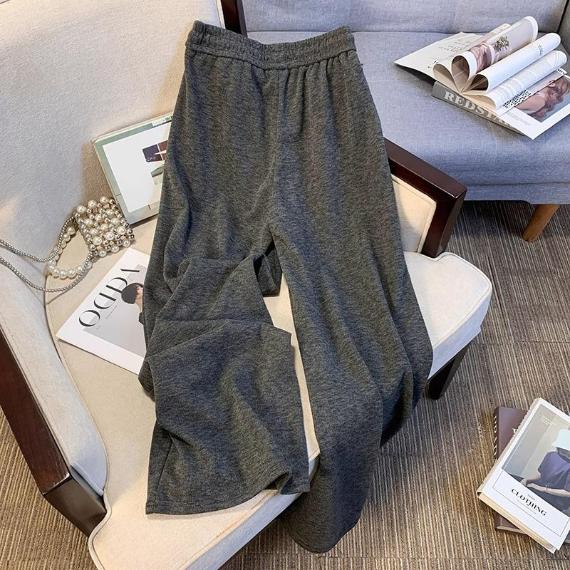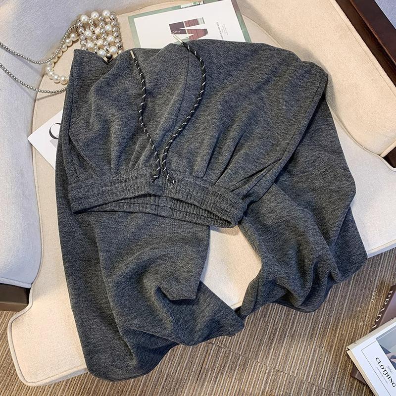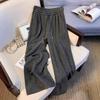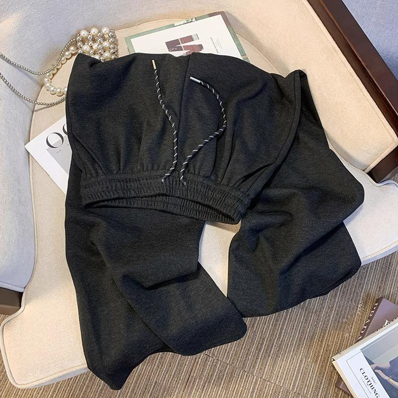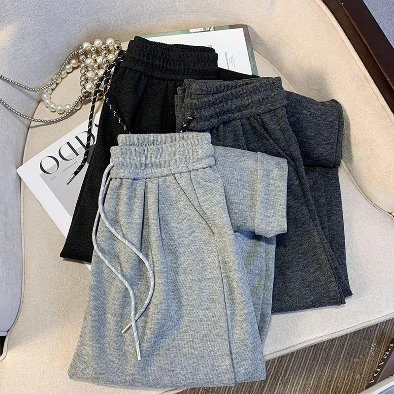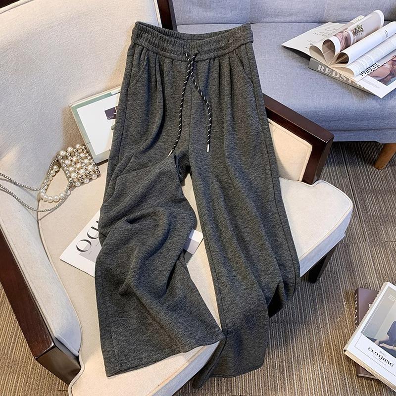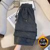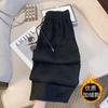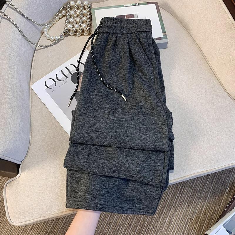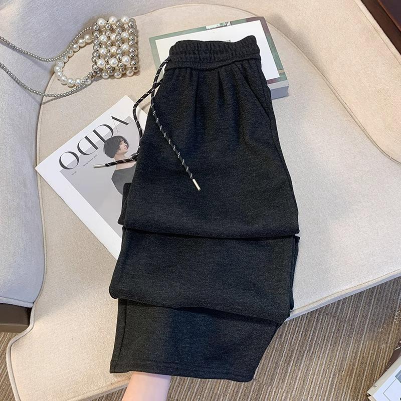 Calças casuais de cintura alta com forro de lã, emagrecimento pequeno, 145, cintura elástica, cordão, 2025, outono e inverno, calças largas