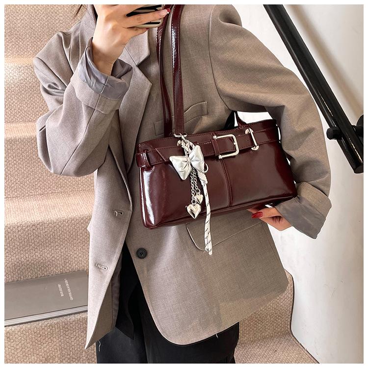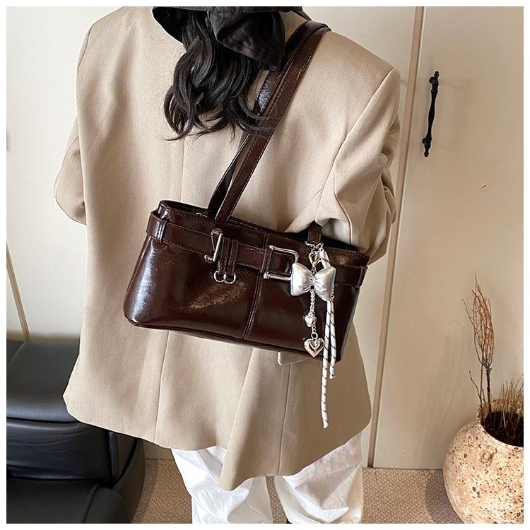 Bolsa de axila de nicho transfronteiriça feminina 2024 nova moda de inverno bolsa de ombro para viajante bolsa de mão estilo ocidental simples para mulheres