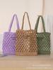 Nova bolsa de palha de ombro vazada feita à mão, bolsa de tecido com letras bordadas, bolsa de praia para férias, bolsa feminina completa