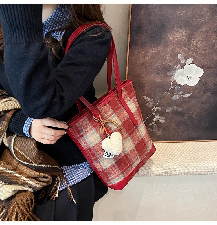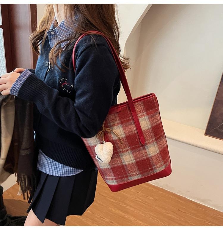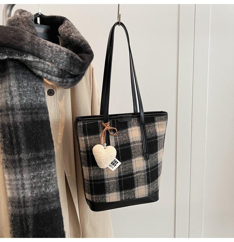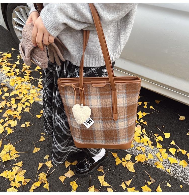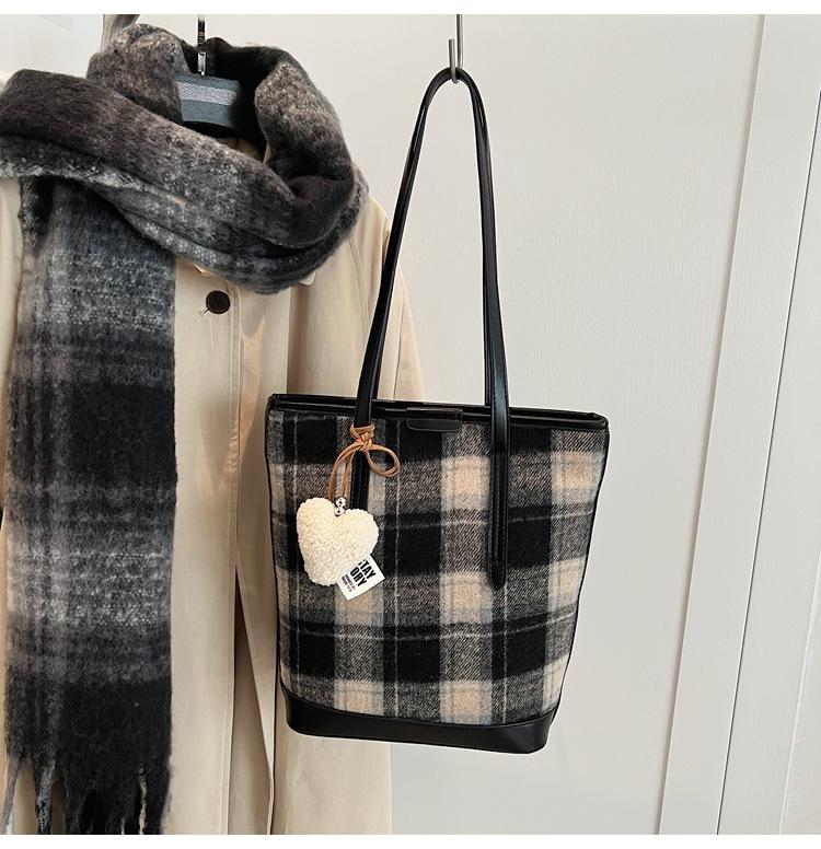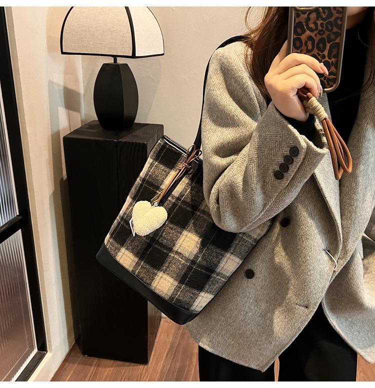Cross-border Super Popular Nicho Bolsa de lã feminina 2025 Nova All-match Um ombro Bolsa axilar Bolsa portátil Bolsa balde na moda