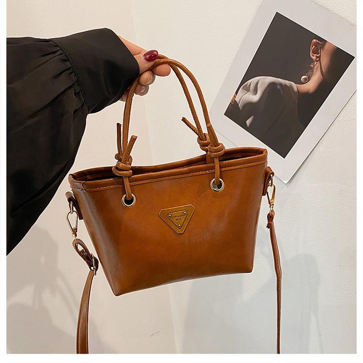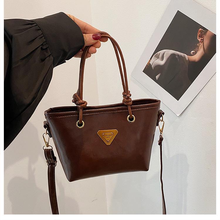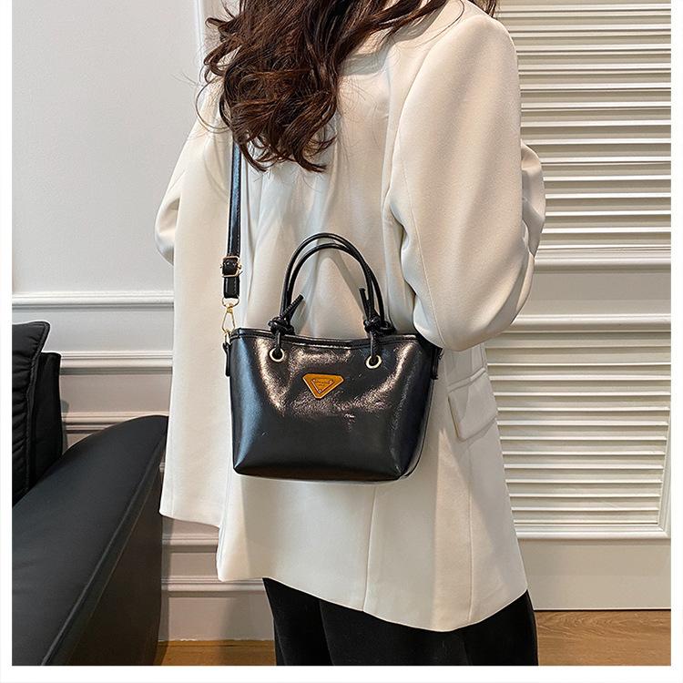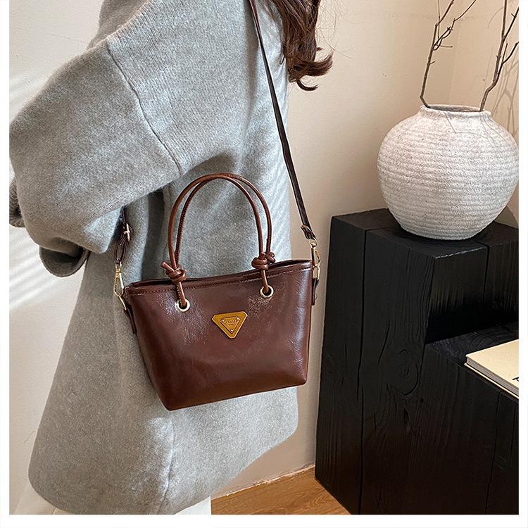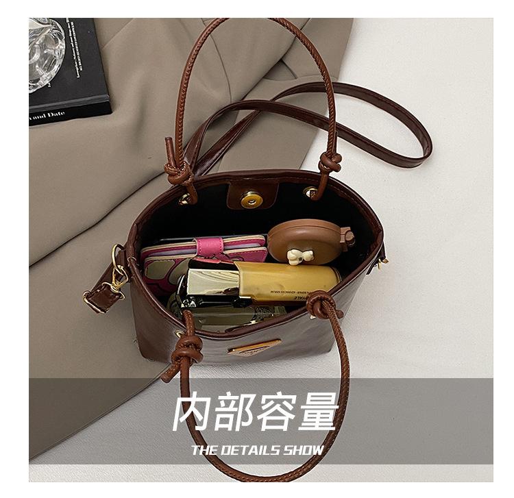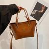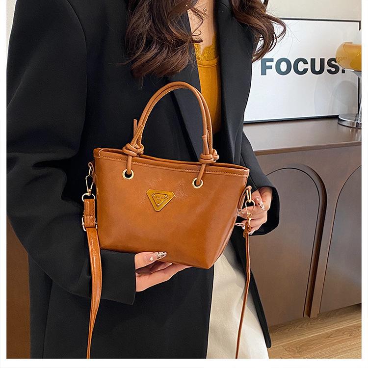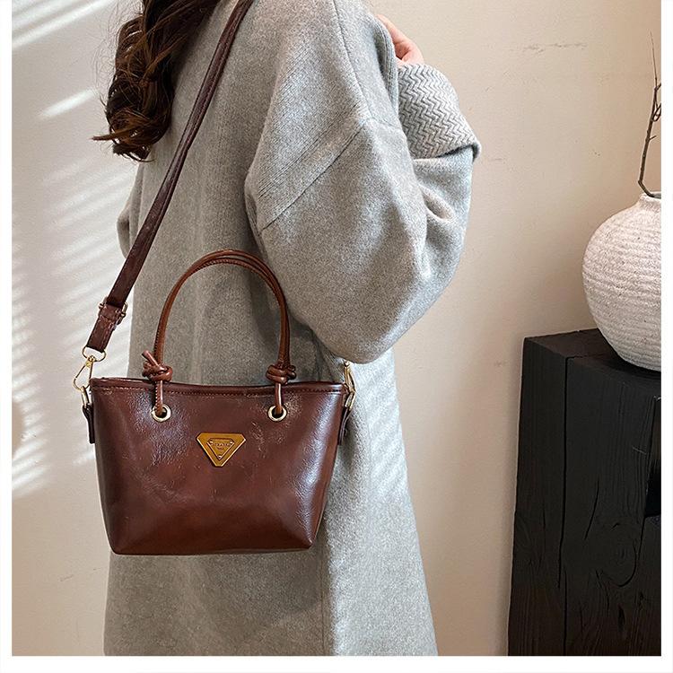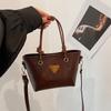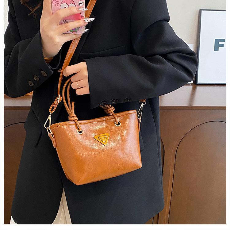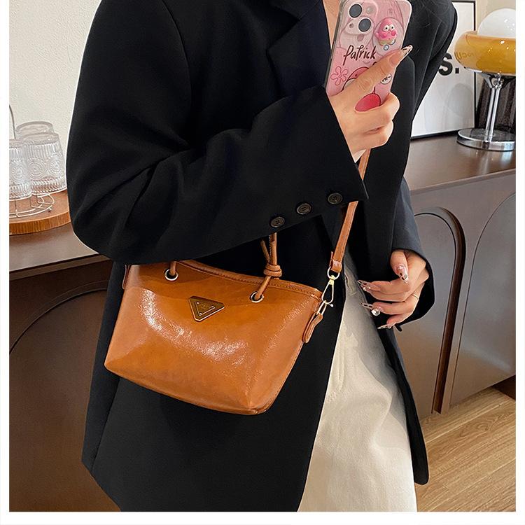 Bolsa pequena portátil retrô estilo Hong Kong para mulheres, nova chegada do inverno 2025, bolsa pequena tipo balde, bolsa de ombro simples, bolsa transversal da moda para mulheres