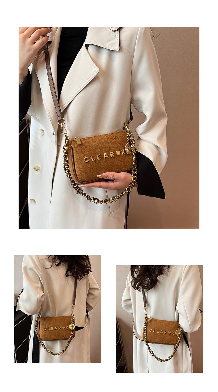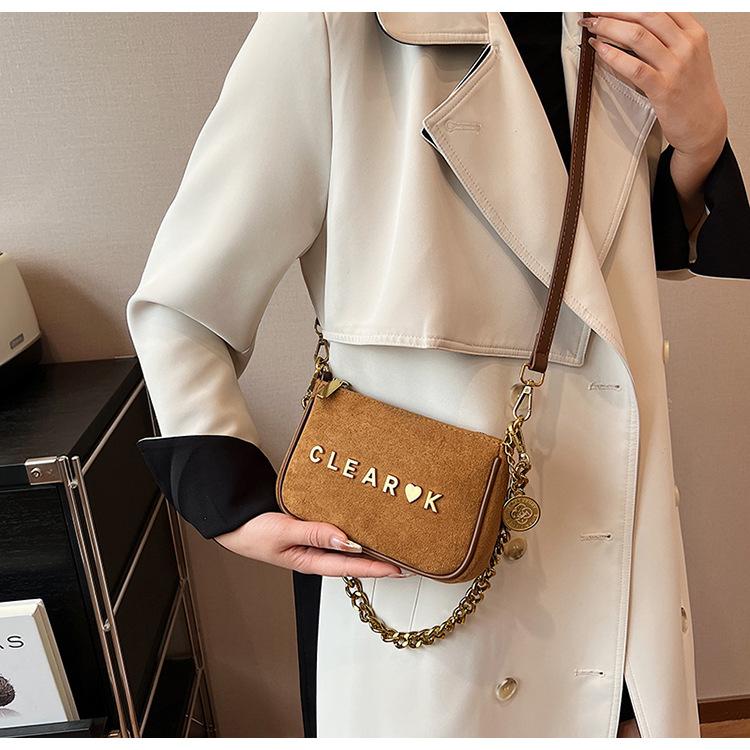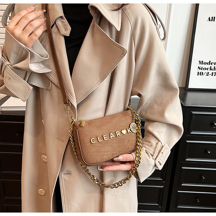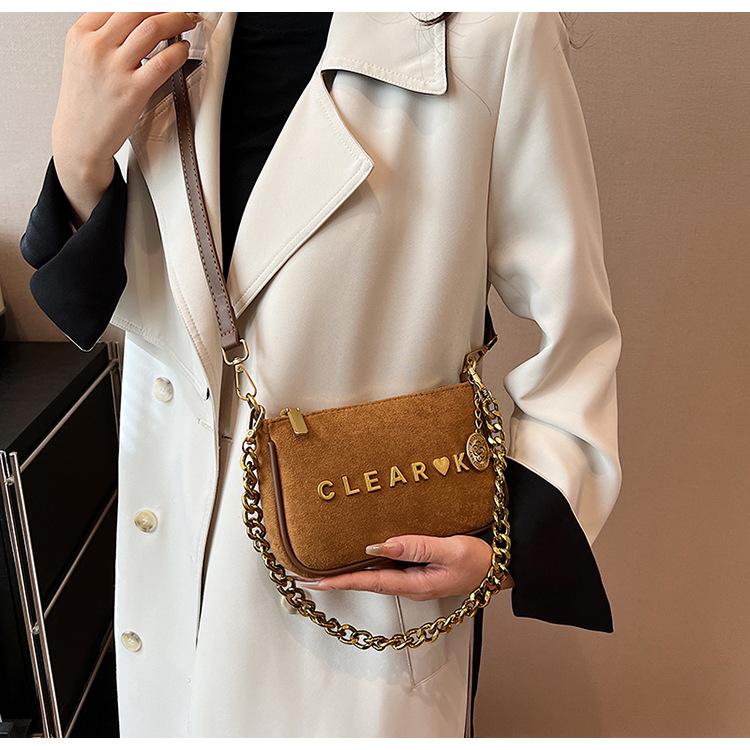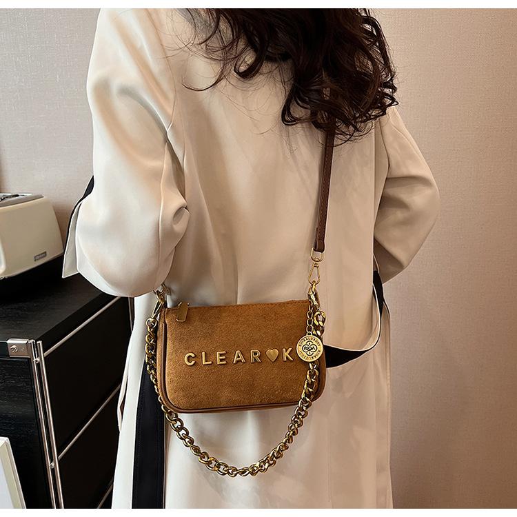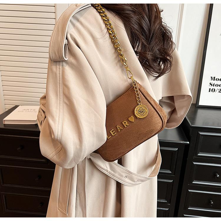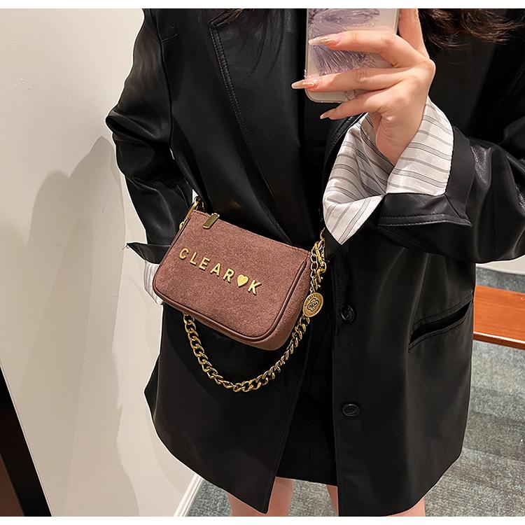 Moda Pequena Bolsa Feminina Outono e Inverno 2025 Nova Camurça Vintage Nicho Bolsa Crossbody Corrente Ombro Único Axila Pequena Bolsa Quadrada