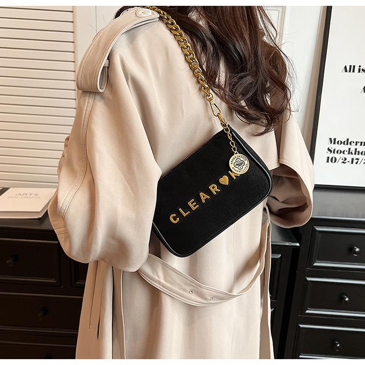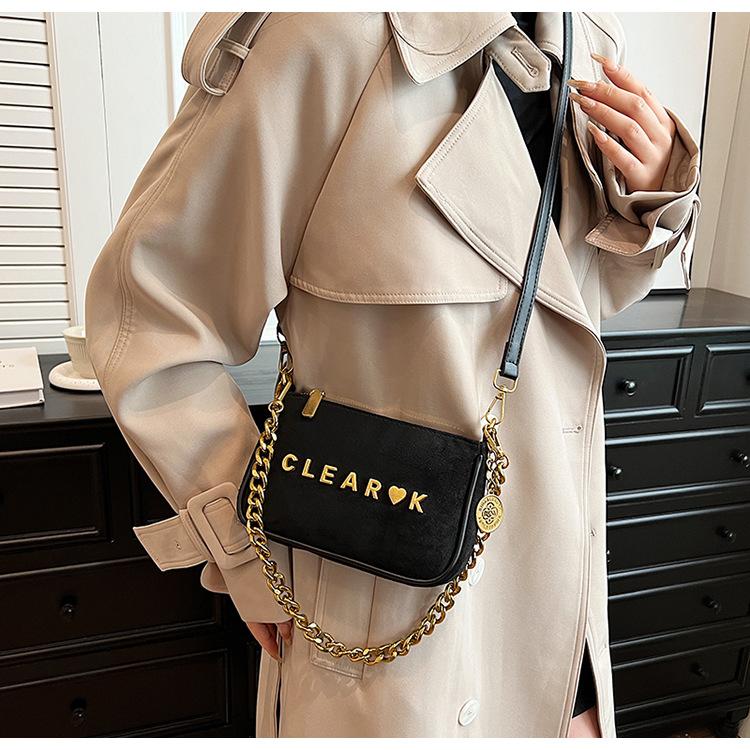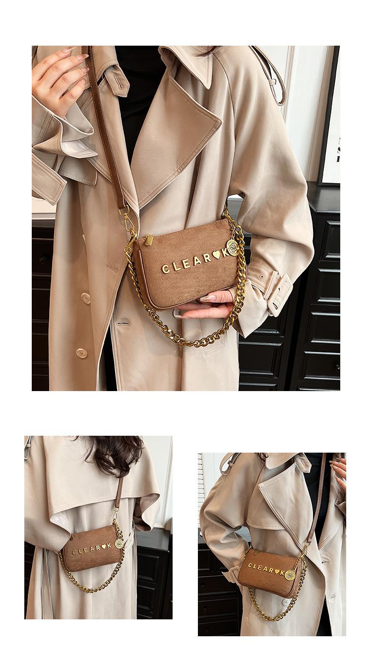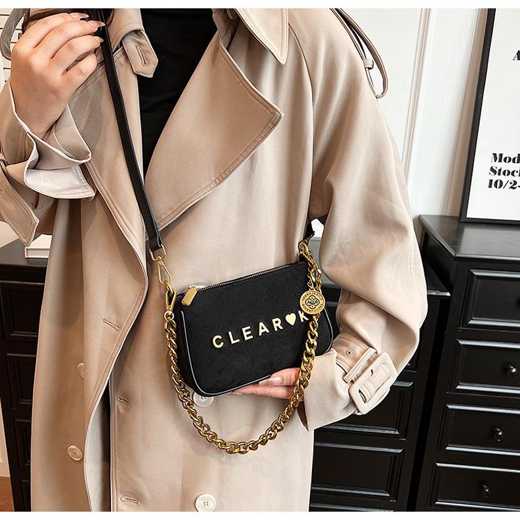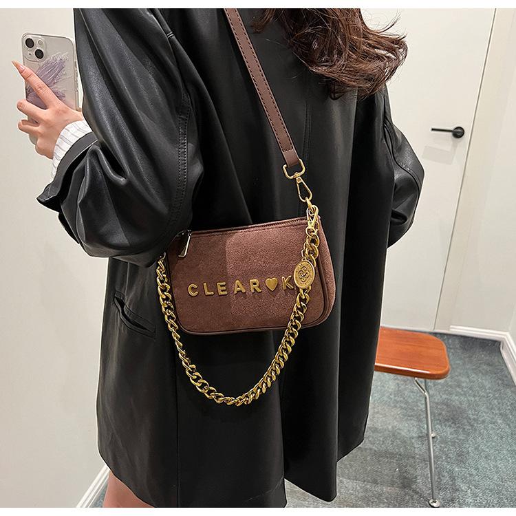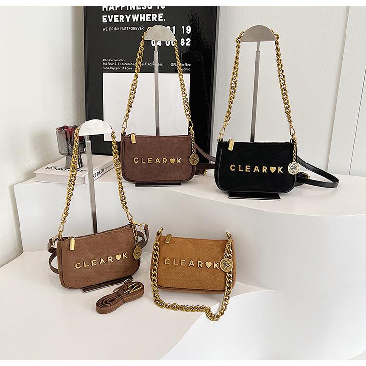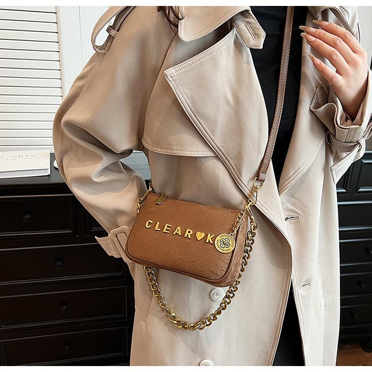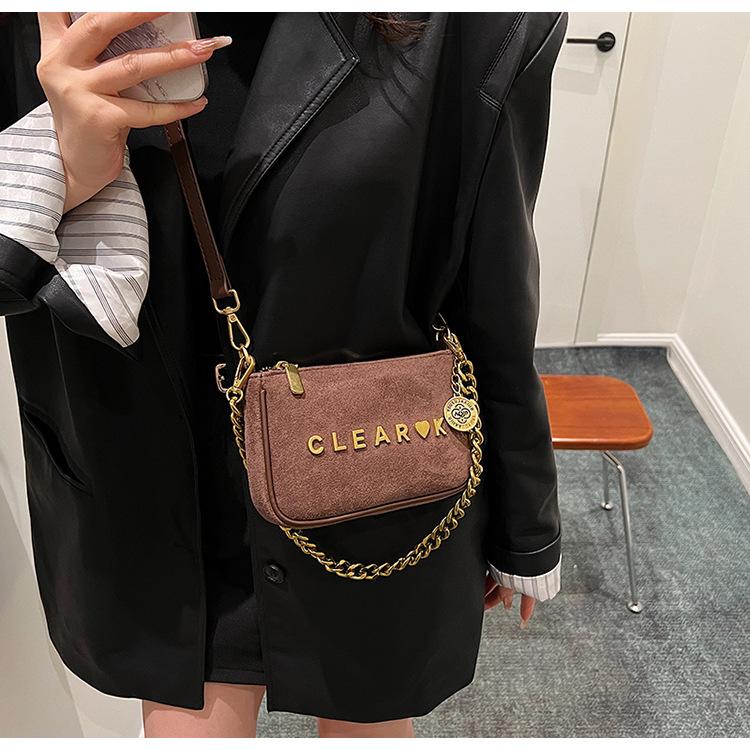 Moda Pequena Bolsa Feminina Outono e Inverno 2025 Nova Camurça Vintage Nicho Bolsa Crossbody Corrente Ombro Único Axila Pequena Bolsa Quadrada