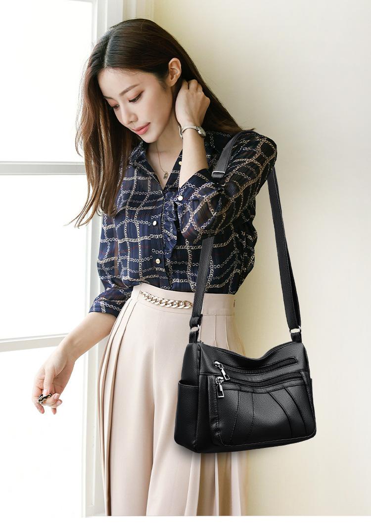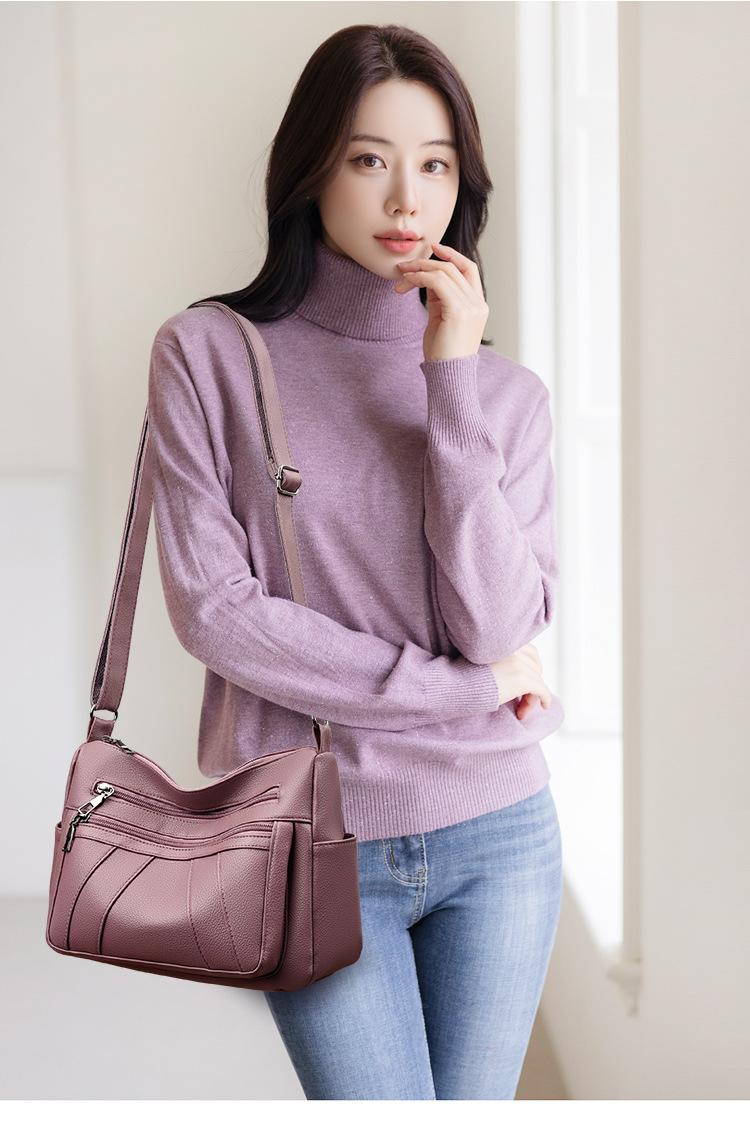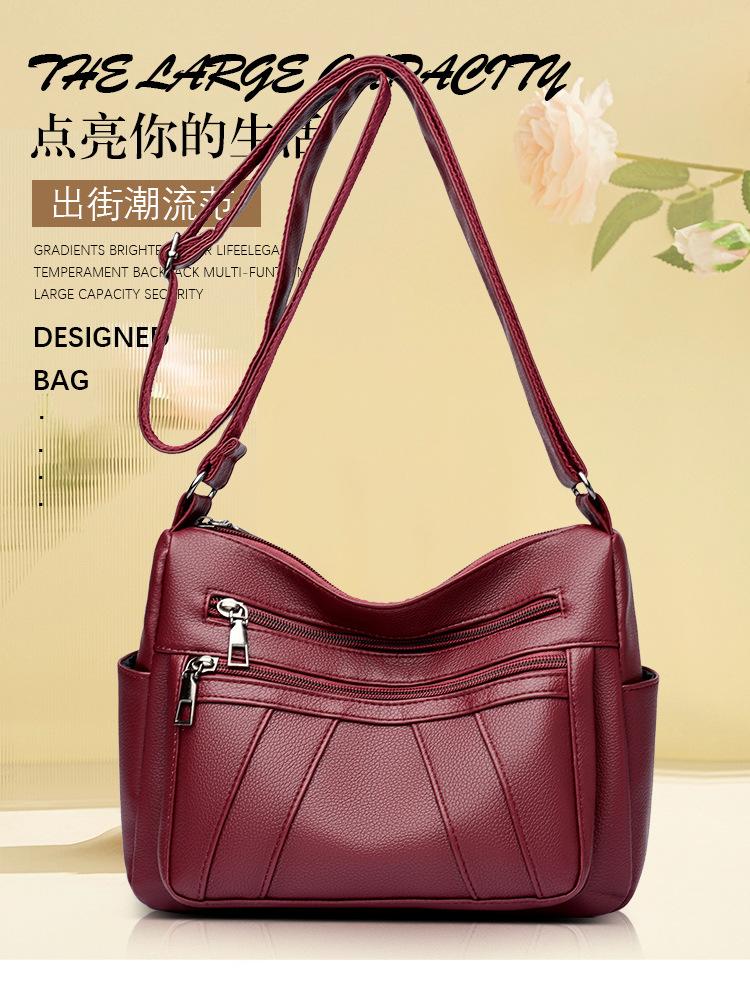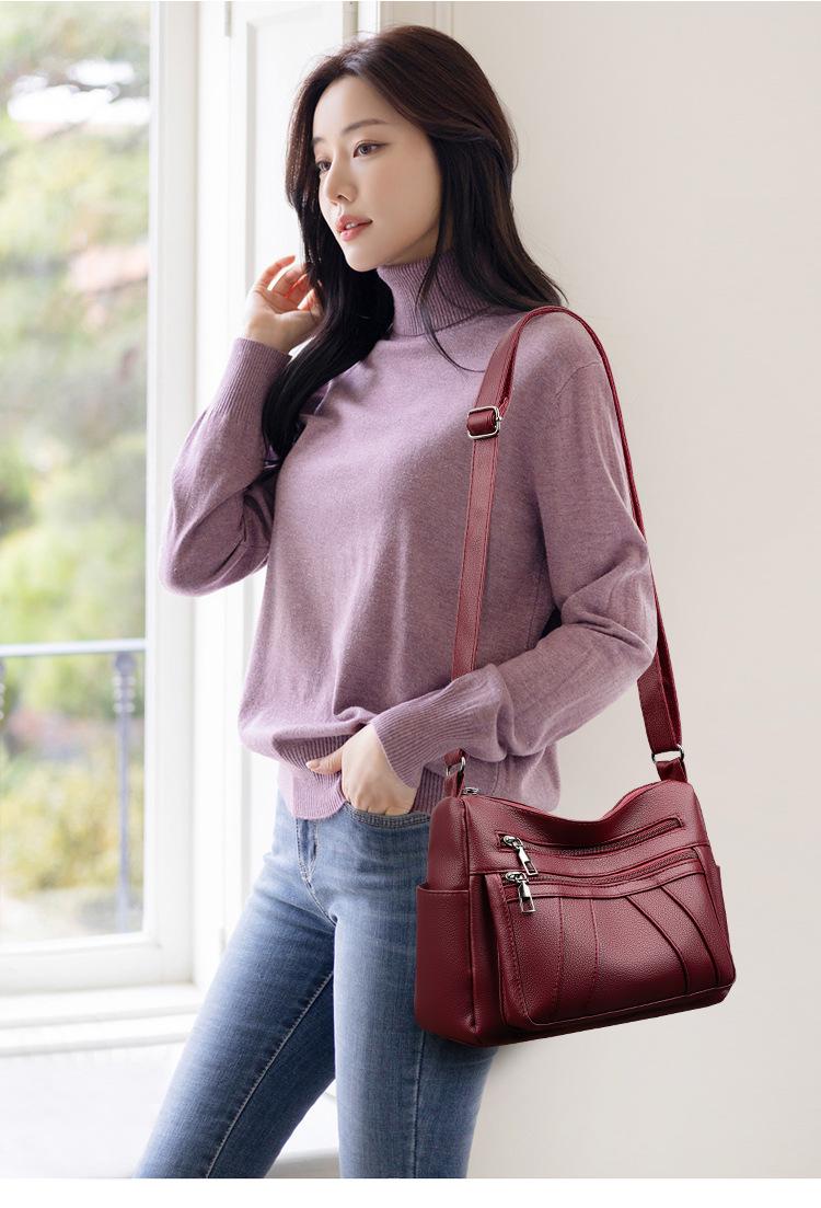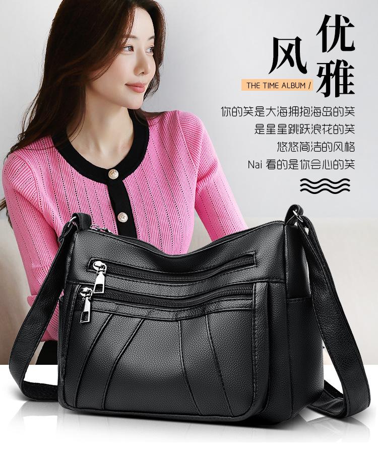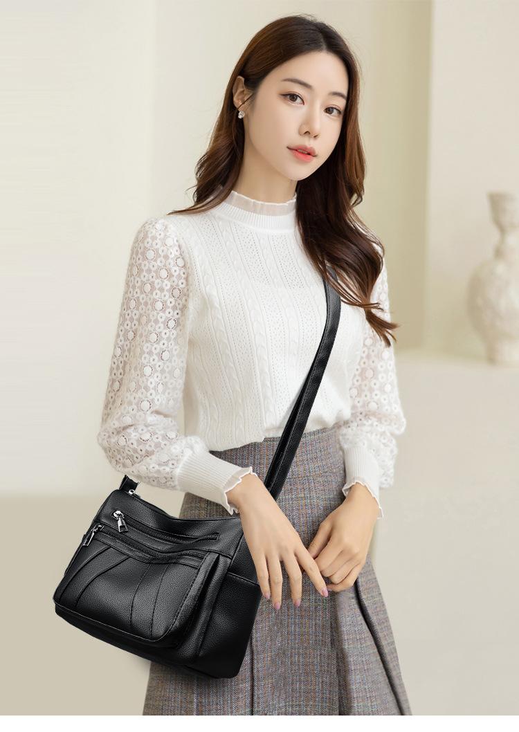 Bolsa feminina 2024 Nova Outono e Inverno Couro Macio Multicamadas All-match Bolsa de Ombro Crossbody Grande Capacidade Bolsa de Mãe de Meia Idade e Idosa Bolsa de Ombro
