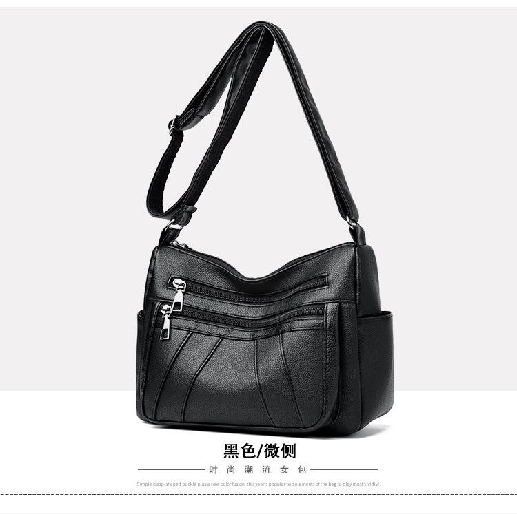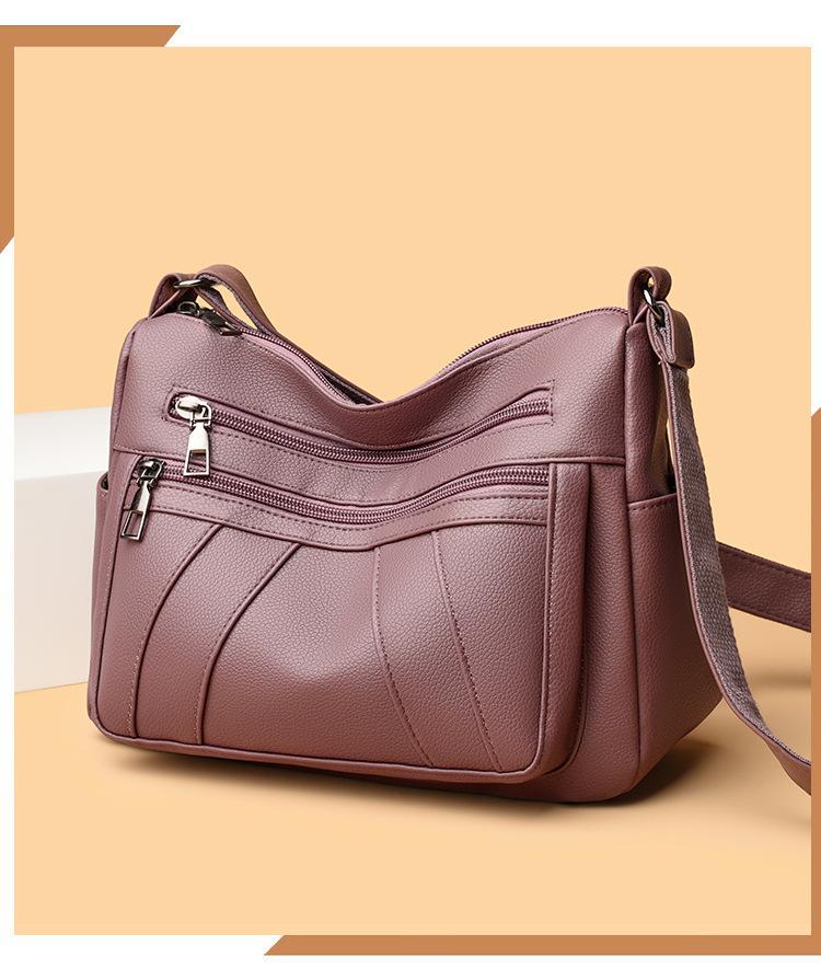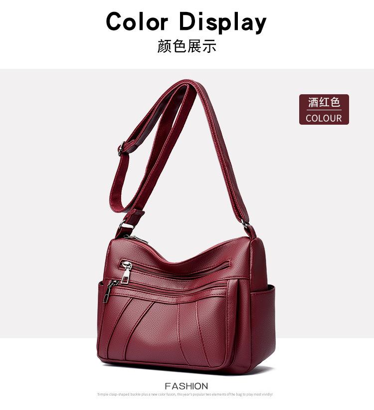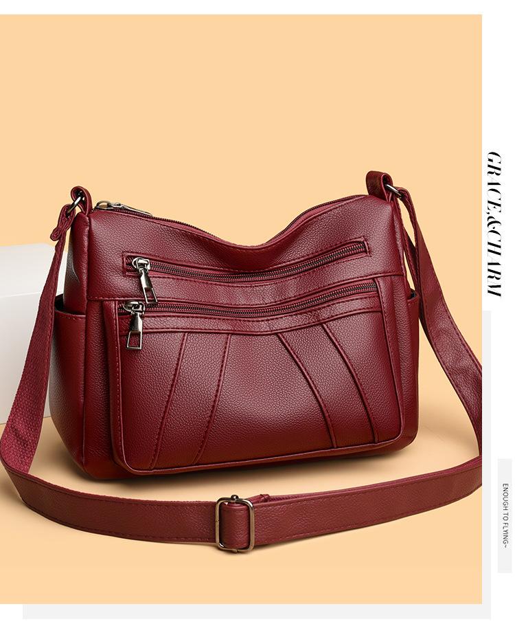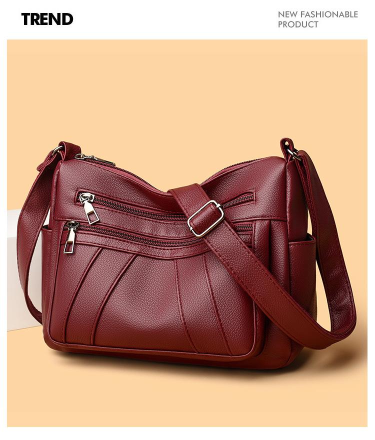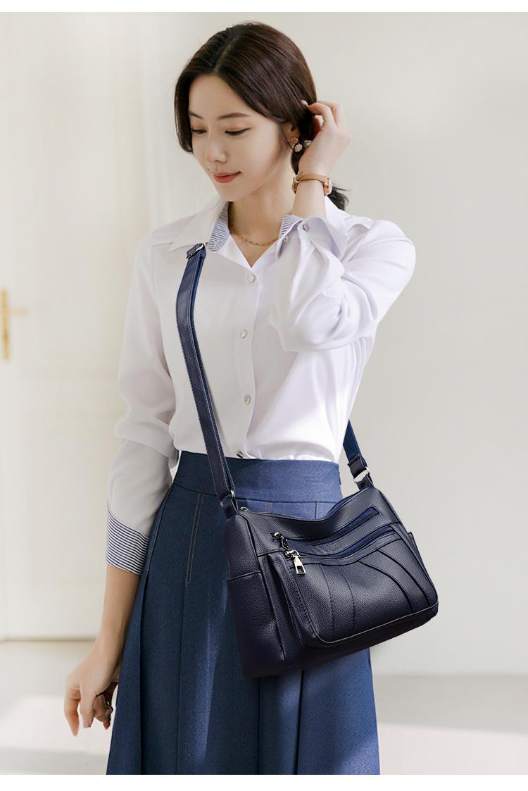 Bolsa feminina 2024 Nova Outono e Inverno Couro Macio Multicamadas All-match Bolsa de Ombro Crossbody Grande Capacidade Bolsa de Mãe de Meia Idade e Idosa Bolsa de Ombro