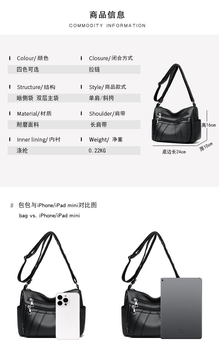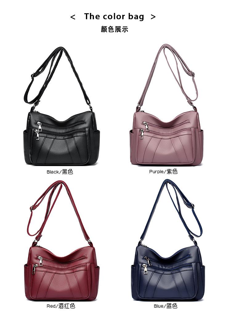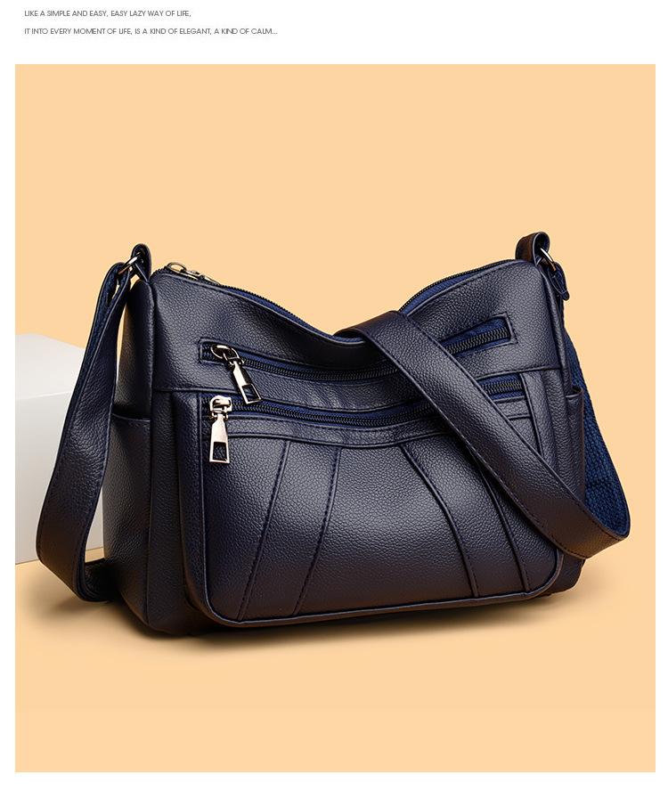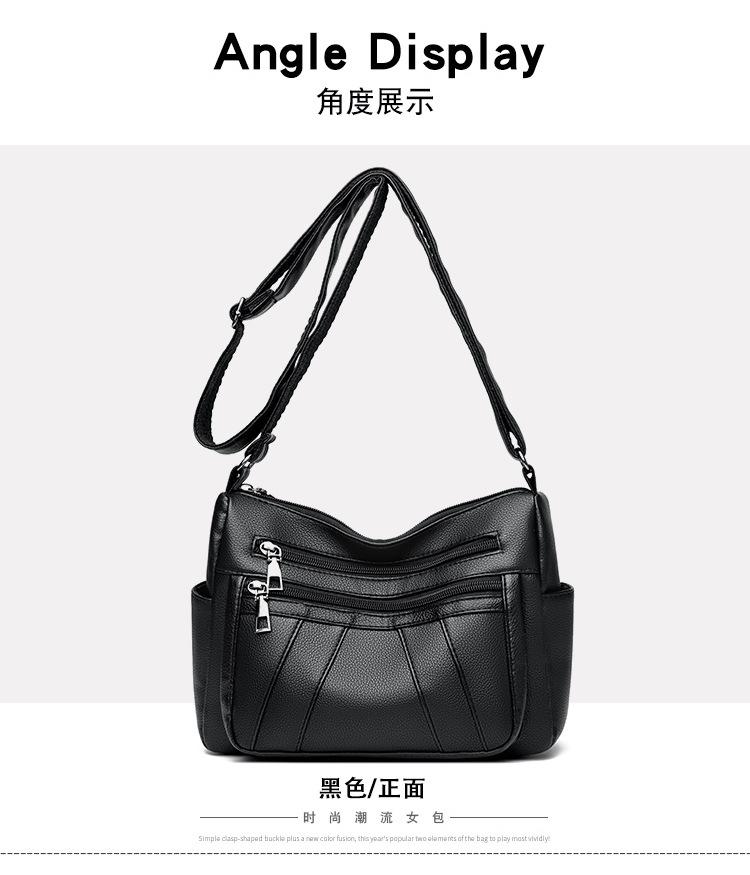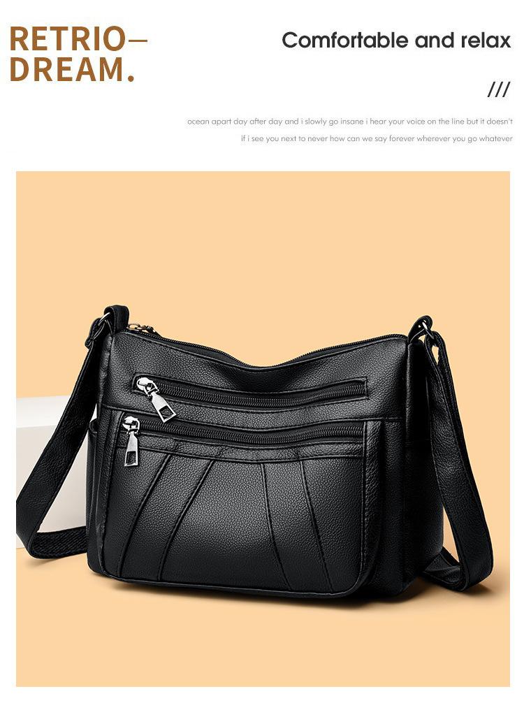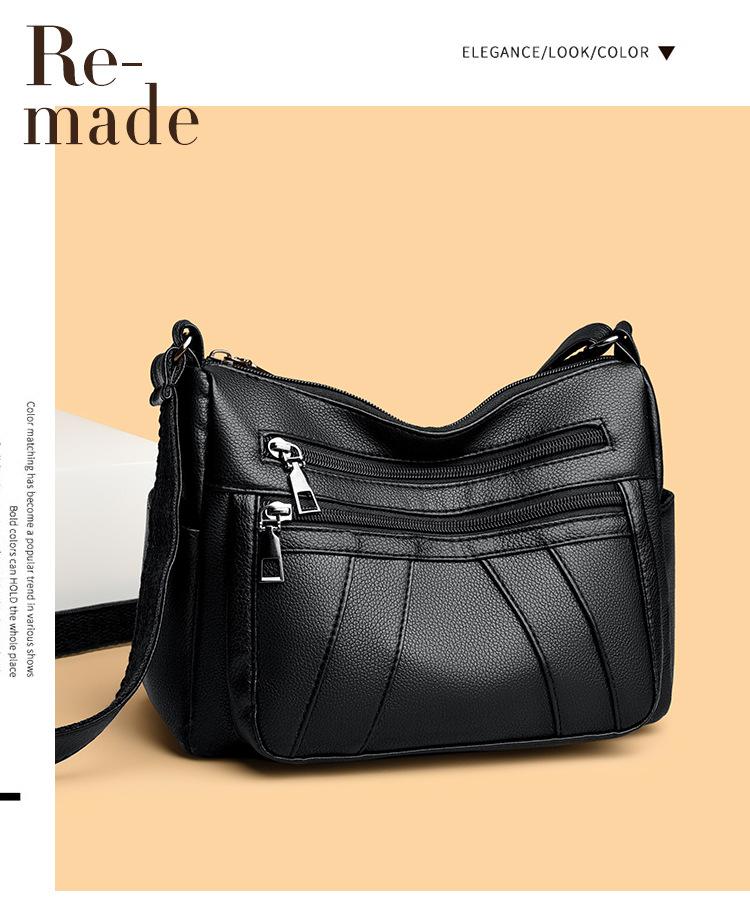 Bolsa feminina 2024 Nova Outono e Inverno Couro Macio Multicamadas All-match Bolsa de Ombro Crossbody Grande Capacidade Bolsa de Mãe de Meia Idade e Idosa Bolsa de Ombro