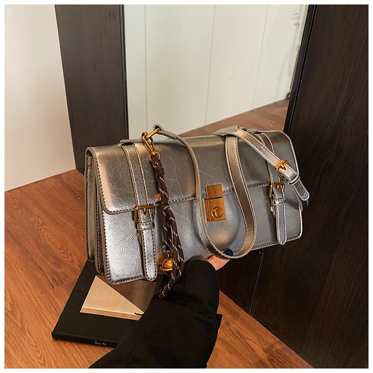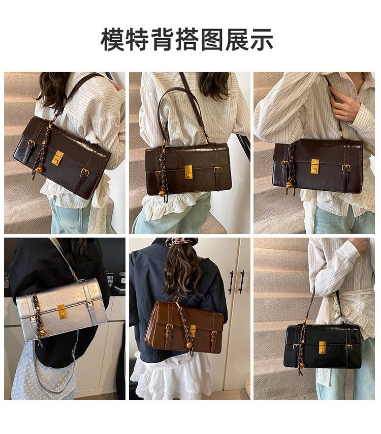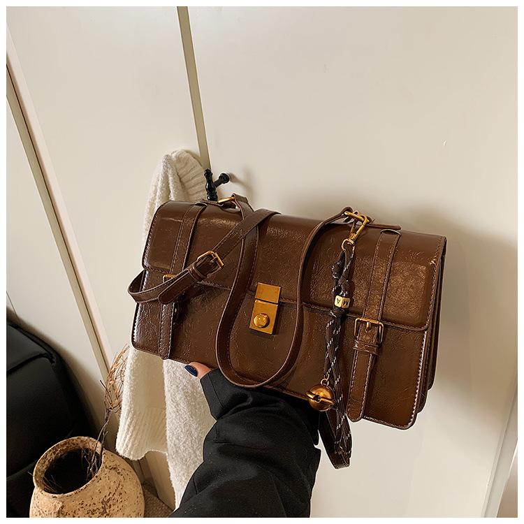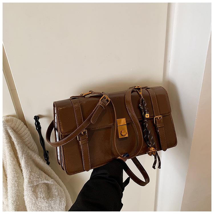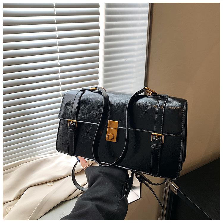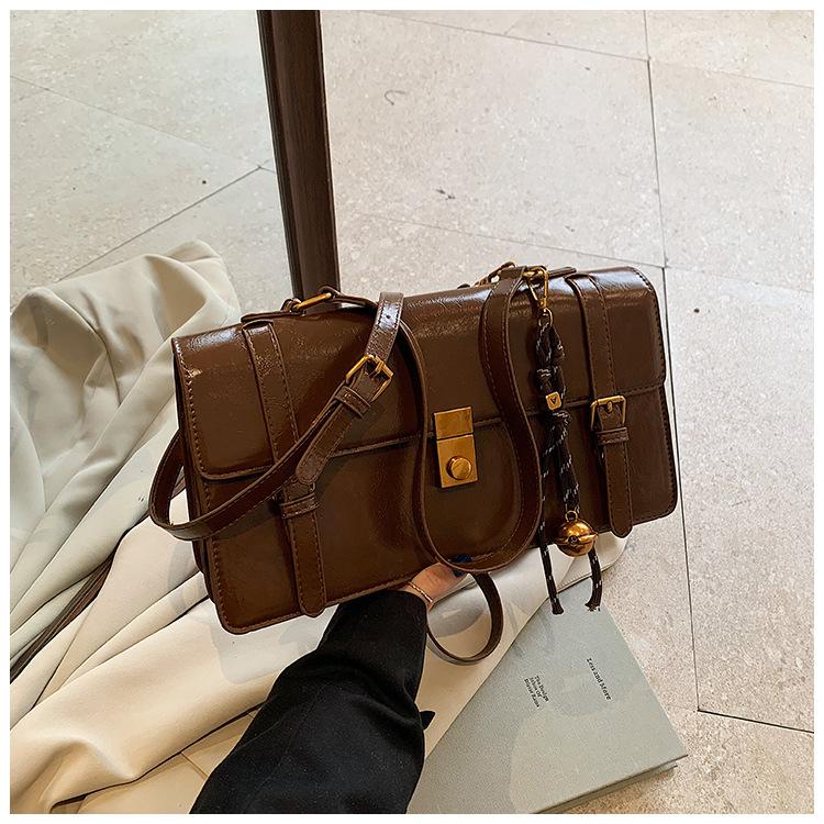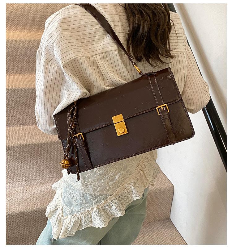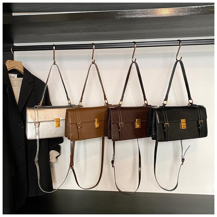 Bolsa transversal simples vintage estilo Hong Kong, bolsa feminina nova, moderna, portátil, pequena, quadrada, casual, combinando, bolsa de um ombro, axila