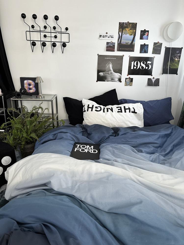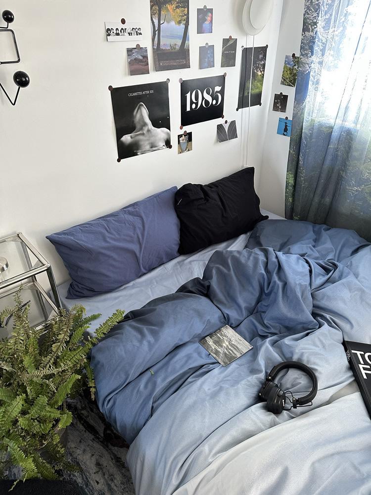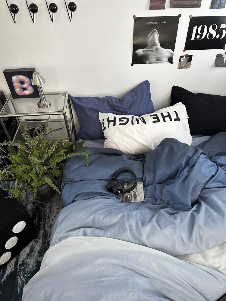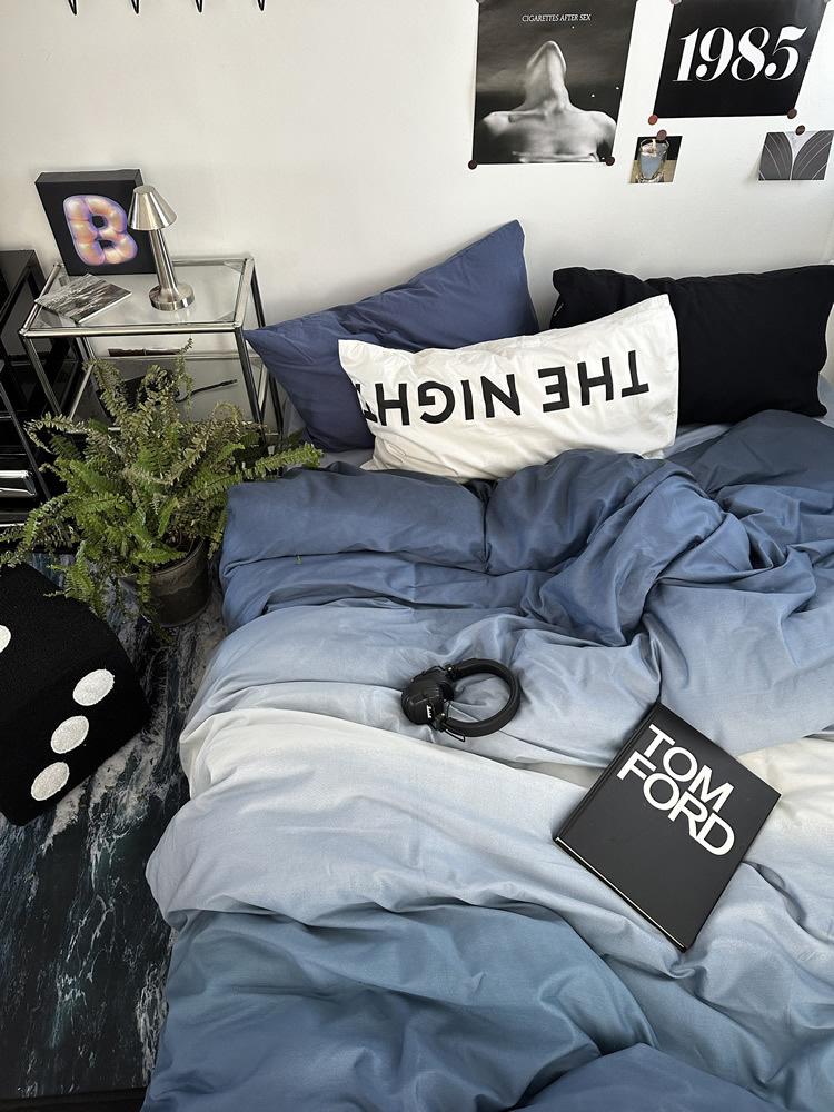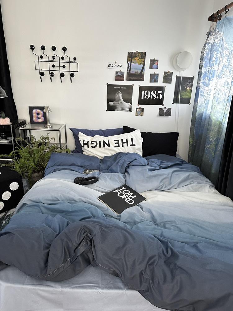 Conjunto de Quatro Peças de Algodão Azul Degradê Ins Lençóis de Sarja de Algodão Puro Lençóis de Elástico Conjunto de Cama de 4 Peças Azul Céu Estrelado