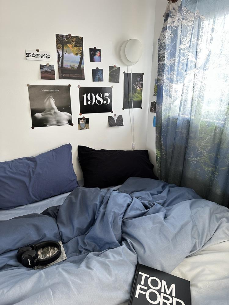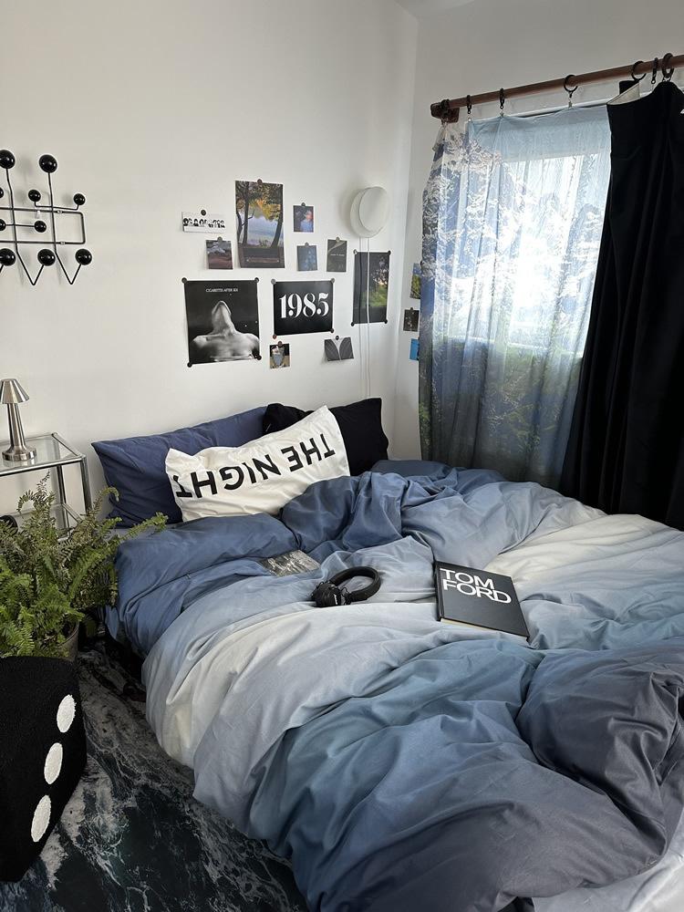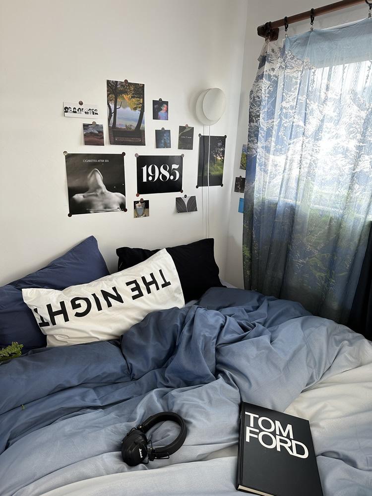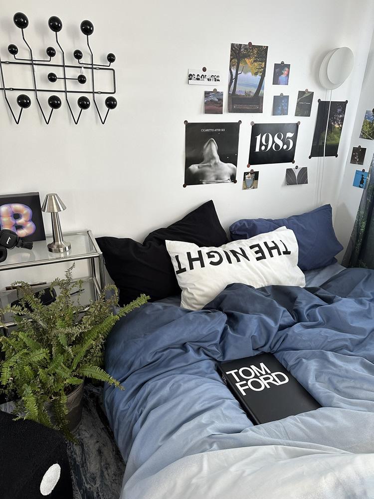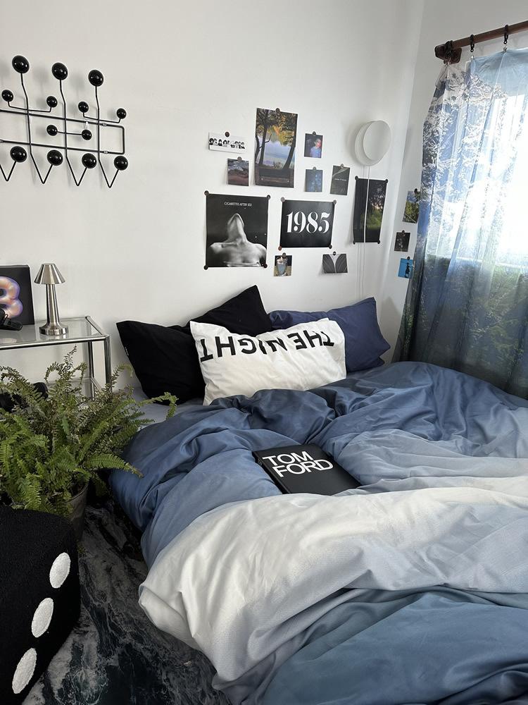 Conjunto de Quatro Peças de Algodão Azul Degradê Ins Lençóis de Sarja de Algodão Puro Lençóis de Elástico Conjunto de Cama de 4 Peças Azul Céu Estrelado