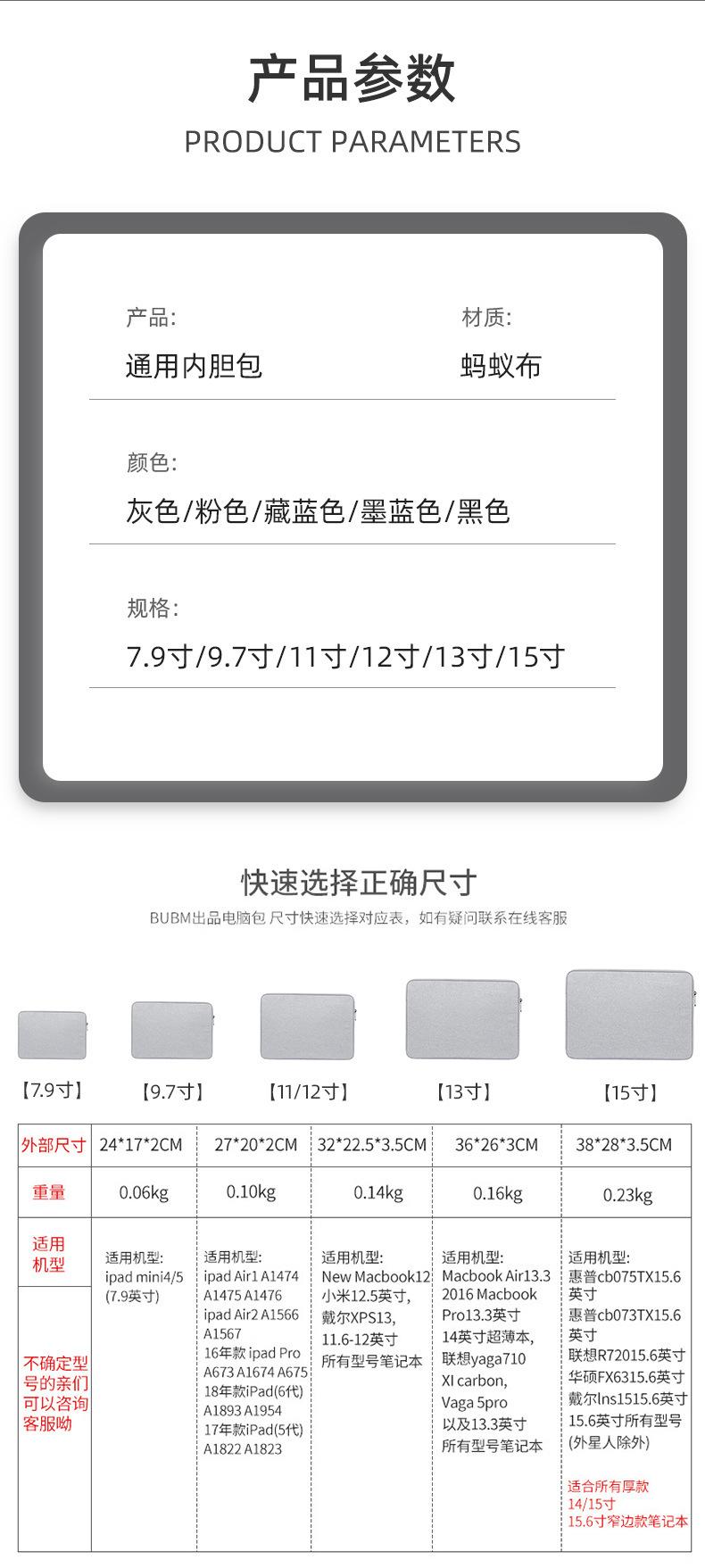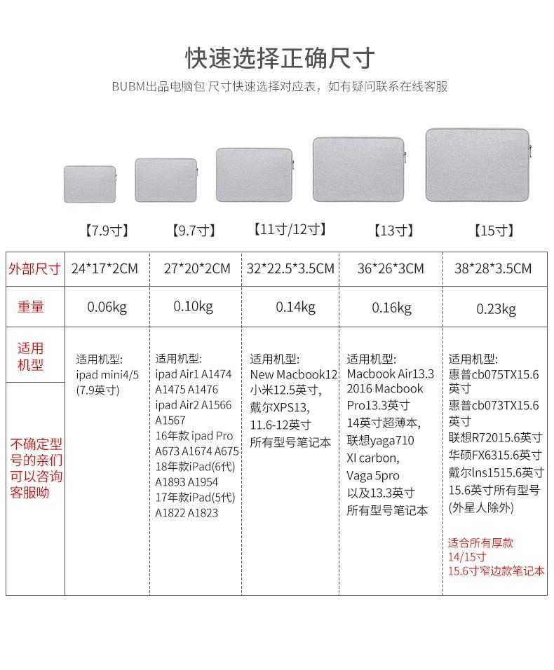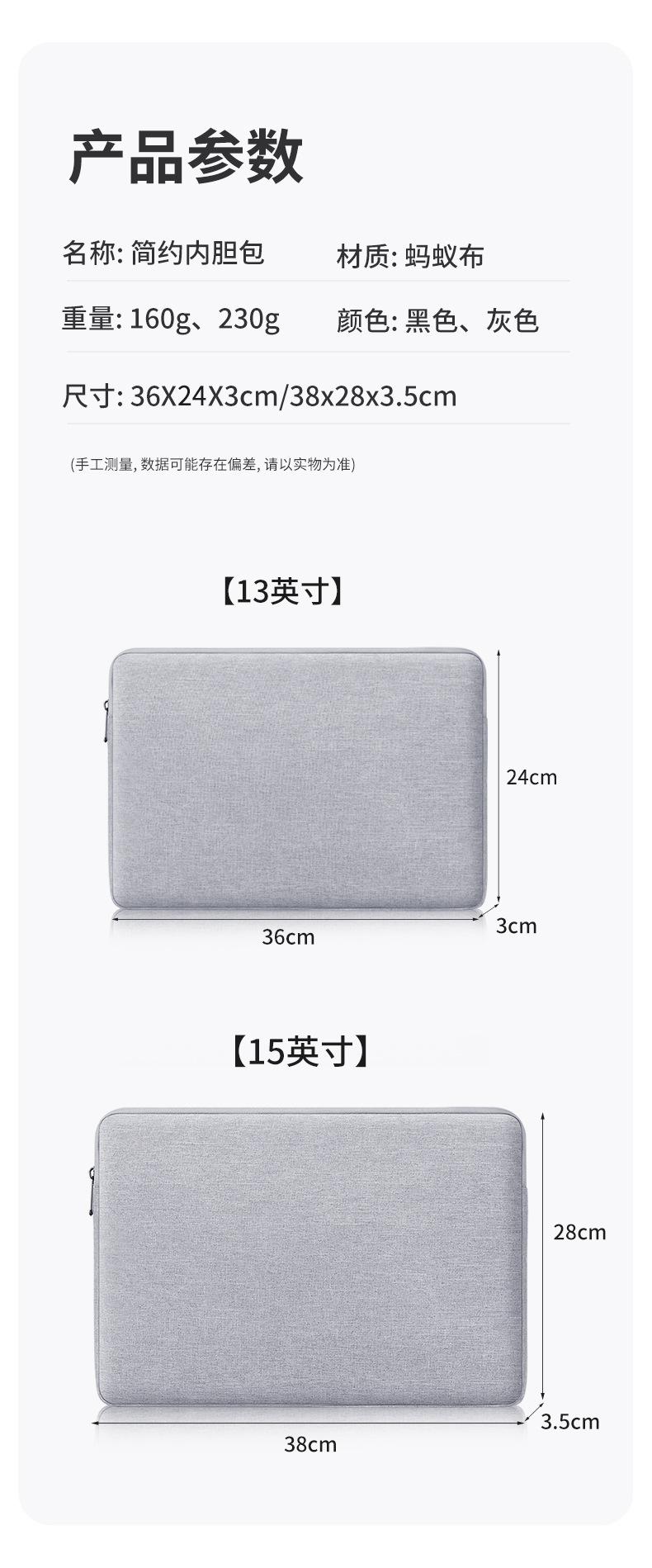 11inch (32*3*22.5cm) 140g, 13inch (36*3*26cm) 160g, 15inch (38*3.5*28cm) 230g, 14inch (37.5*3*27cm) 183g