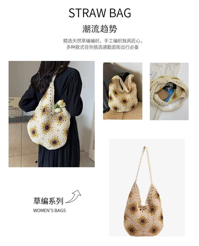 Nova Bolsa Feminina de Palha Tecida Estilo Férias Versátil Bolsa Feminina para o Dia a Dia Bolsa Tecida à Mão Bolsa de Praia Bolsa Feminina Bolsa de Ombro Feminina