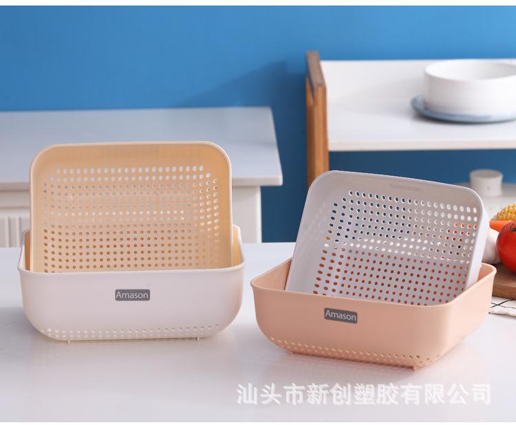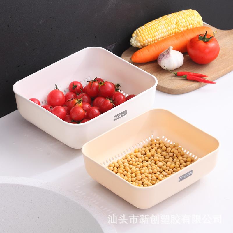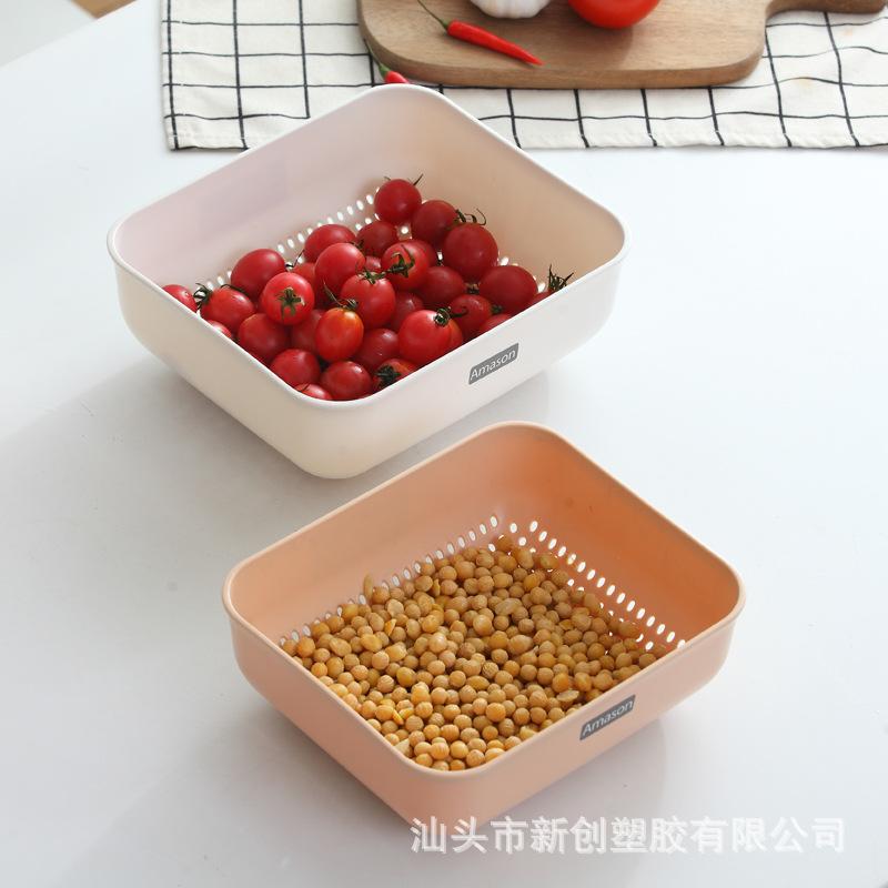 Cesto de lavagem de vegetais domésticos, cesto de drenagem, cesto oco de plástico para lavagem de frutas e vegetais, cozinha, sala de estar, prato de frutas criativo, peneira quadrada