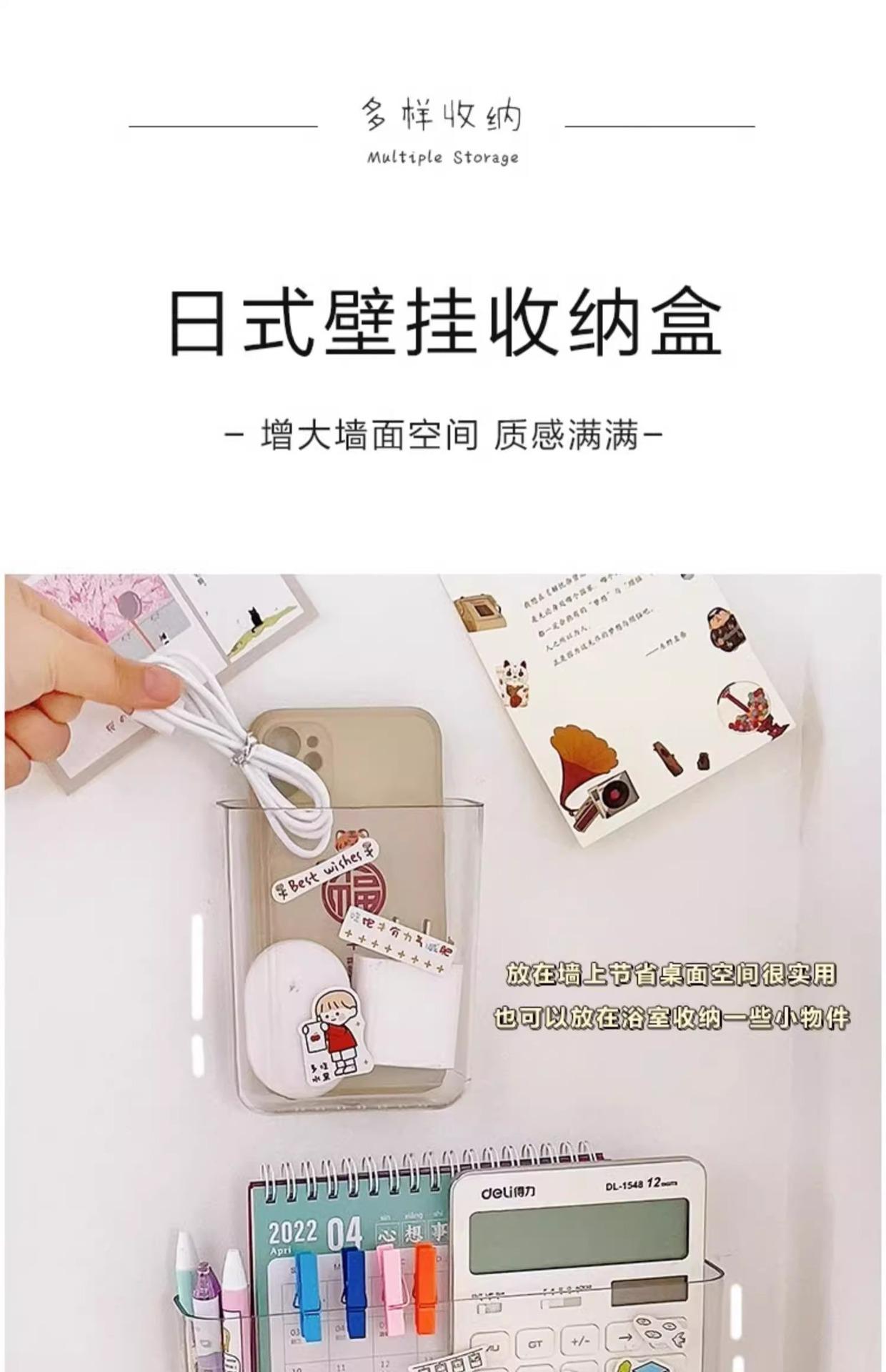 Prateleira de Parede Sem Furos para Armazenamento Caixa de Armazenamento para Celular de Cabeceira de Dormitório Prateleira de Armazenamento Transparente para Dormitório Caixa de Armazenamento Montada na Parede