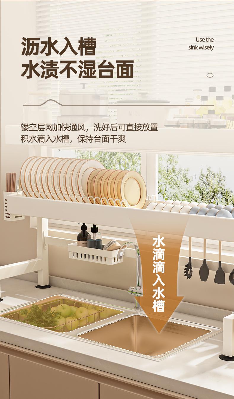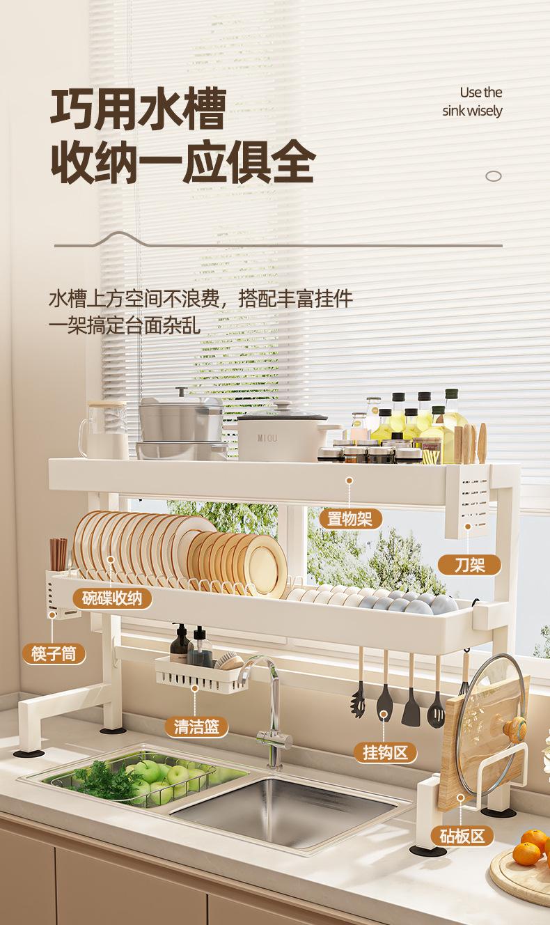 Prateleira de armazenamento para pia de cozinha Prateleira para lavar louças de bancada Tigela e escorredor de pratos Prateleira multifuncional para pia e pauzinhos Prateleira de armazenamento
