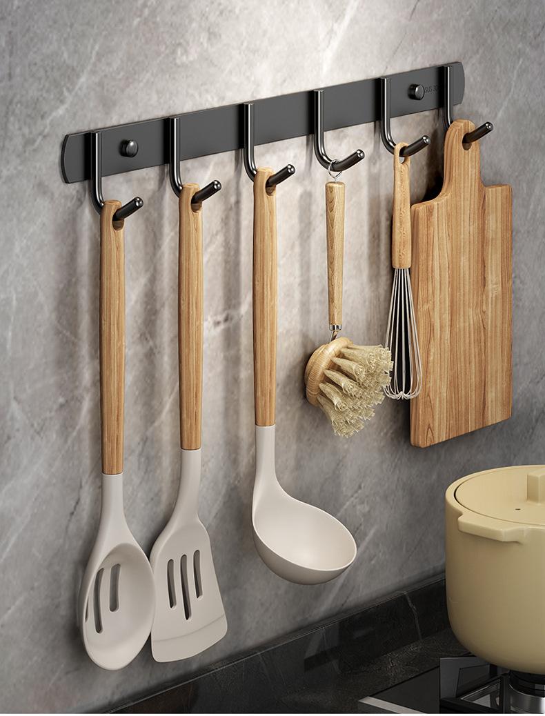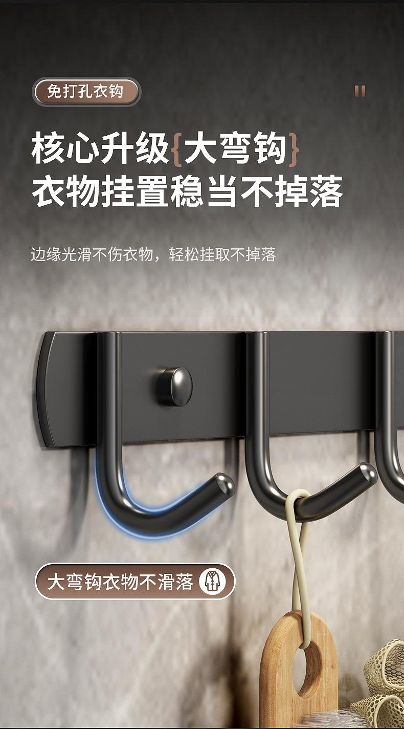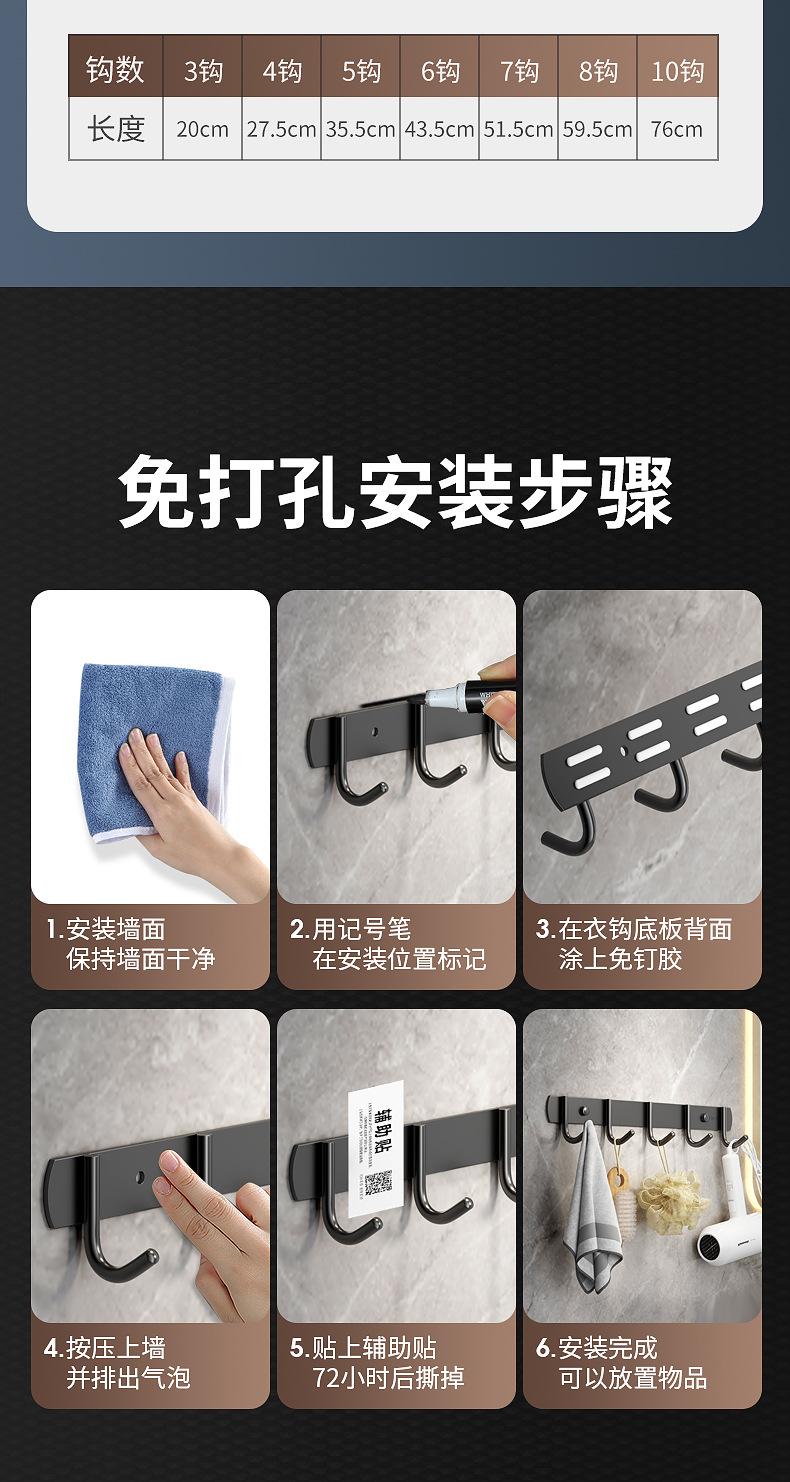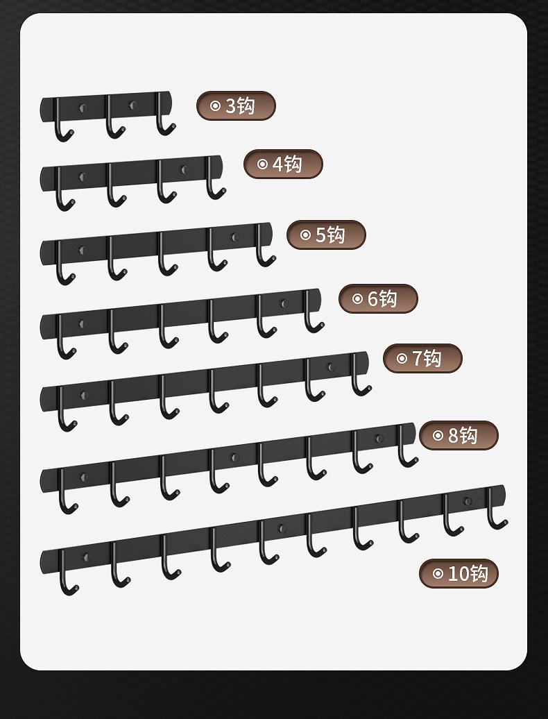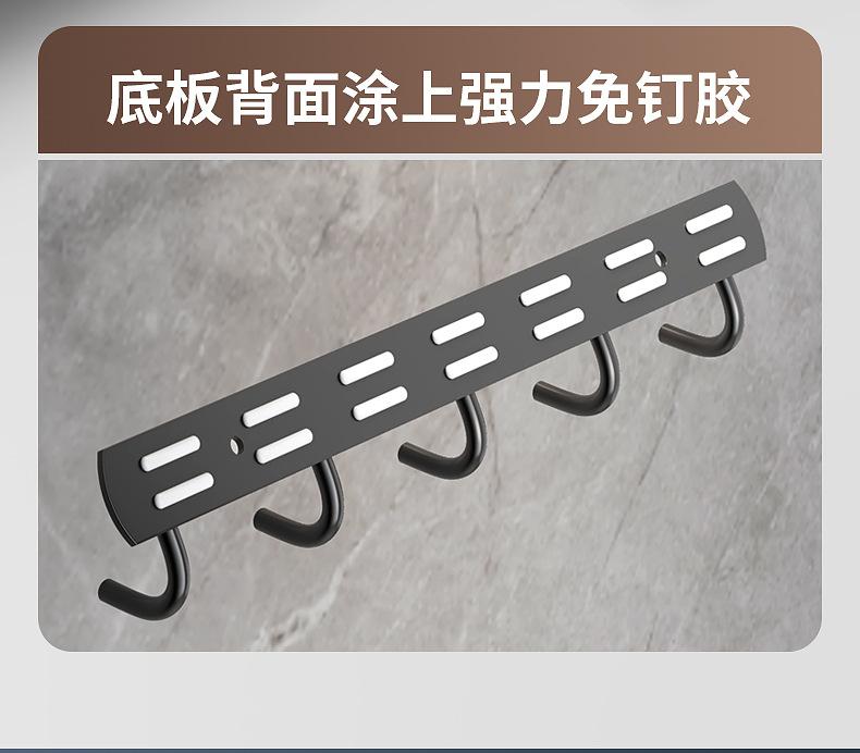 Gancho Preto de Aço Inoxidável Espessado Gancho de Fileira Gancho para Roupa de Banheiro Gancho Adesivo Sem Furo Gancho de Rack de Armazenamento Multifuncional para Cozinha