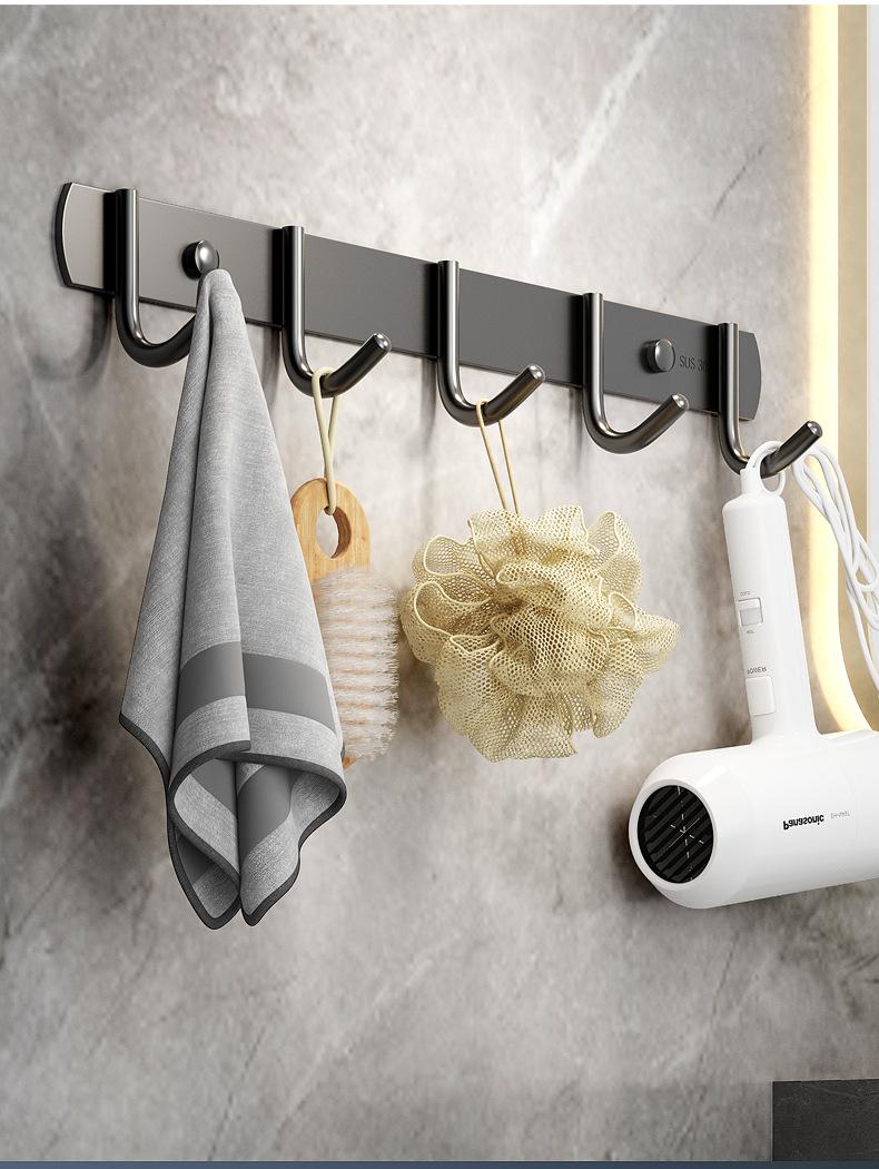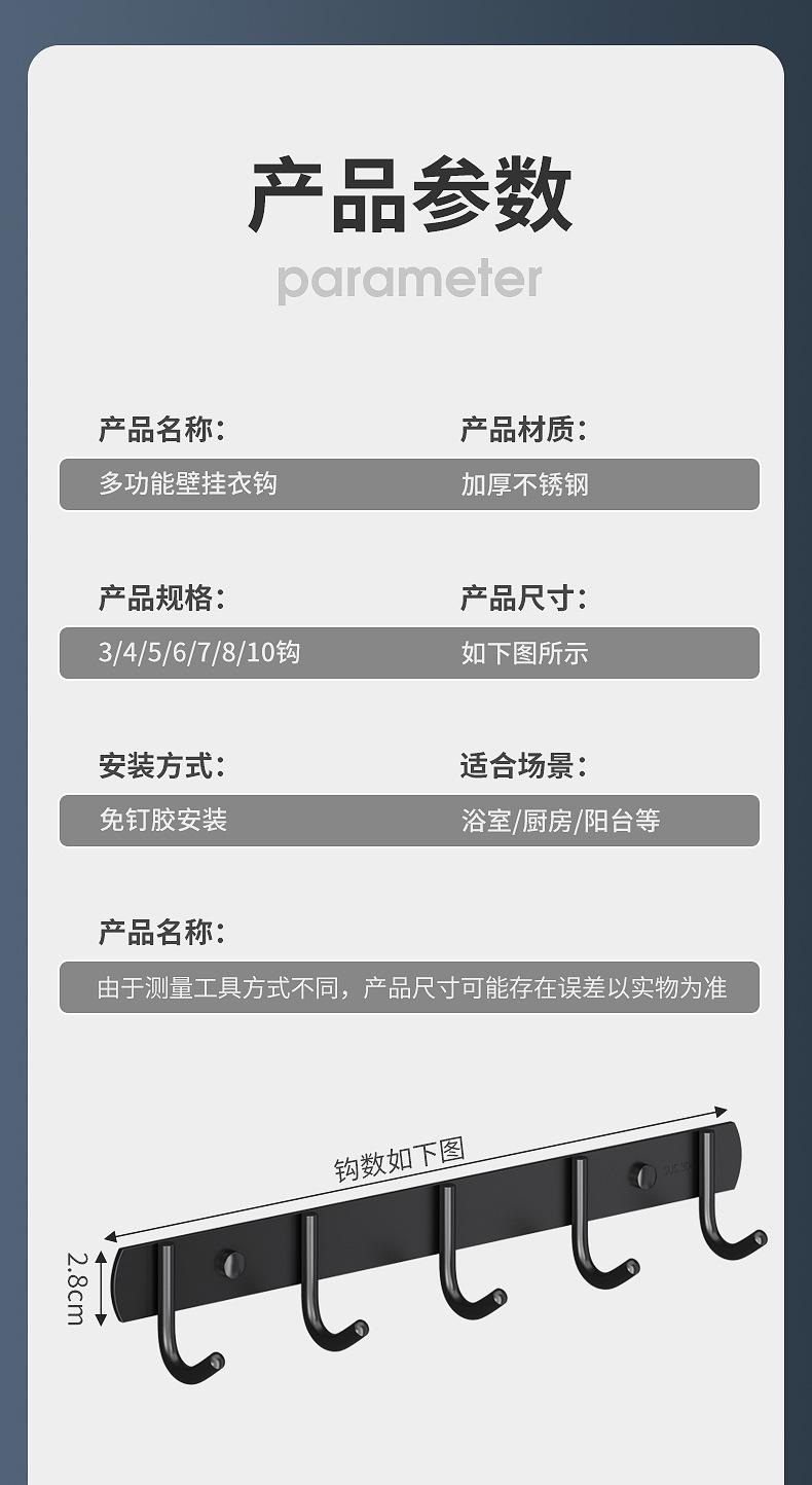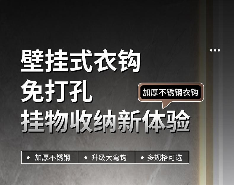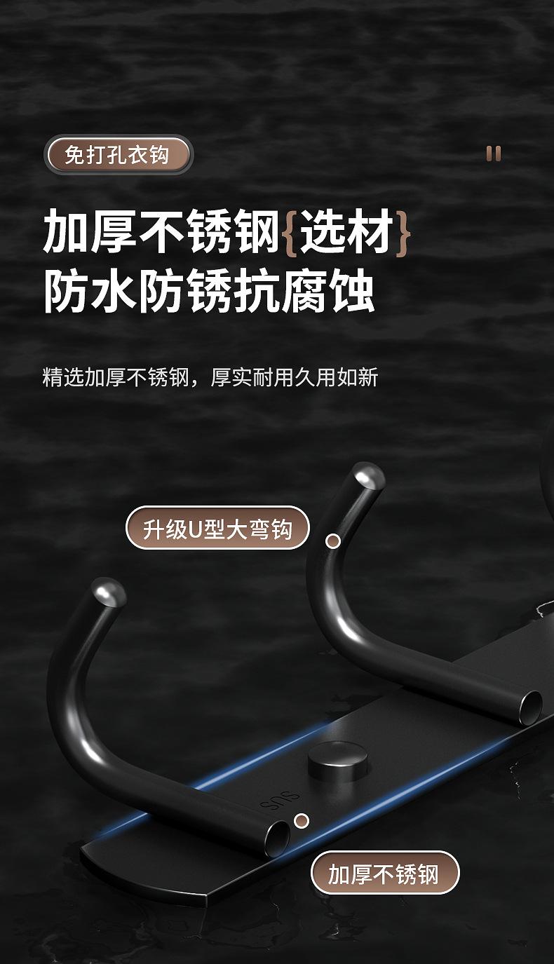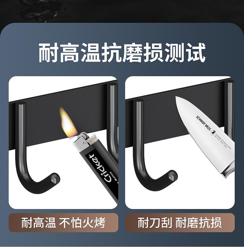 Gancho Preto de Aço Inoxidável Espessado Gancho de Fileira Gancho para Roupa de Banheiro Gancho Adesivo Sem Furo Gancho de Rack de Armazenamento Multifuncional para Cozinha