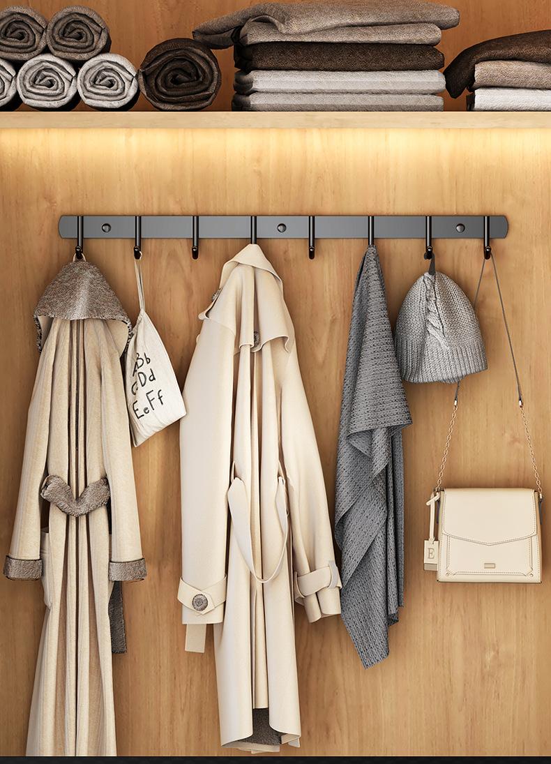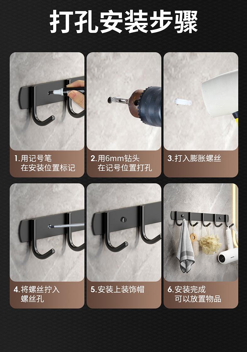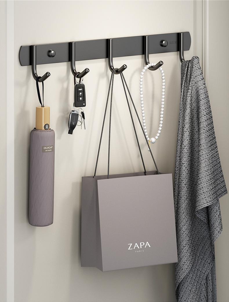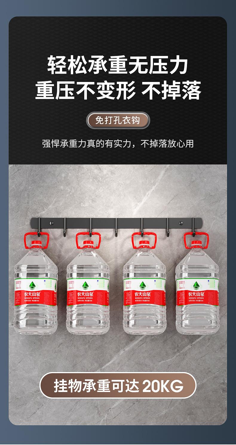 Gancho Preto de Aço Inoxidável Espessado Gancho de Fileira Gancho para Roupa de Banheiro Gancho Adesivo Sem Furo Gancho de Rack de Armazenamento Multifuncional para Cozinha