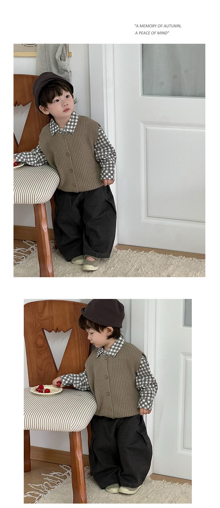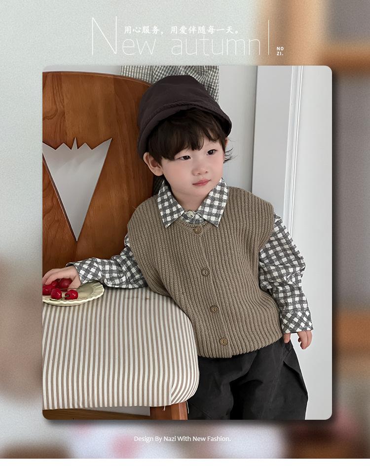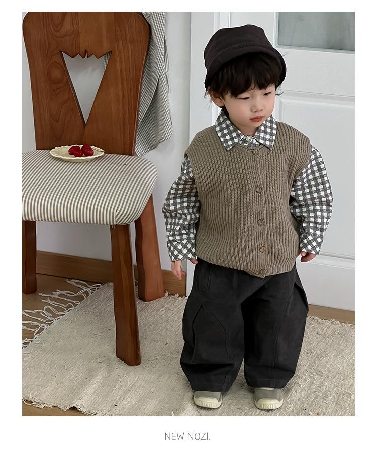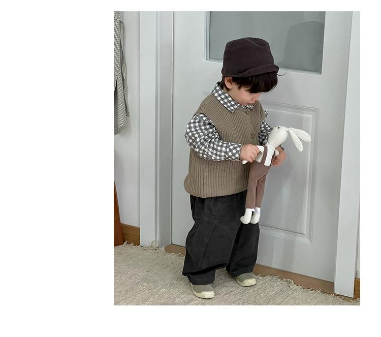 Roupa de Outono para Bebê 2025 Novo Estilo Coreano Roupa Infantil Roupa de Outono para Meninos Camisa Xadrez com Lapela Terno Calças Casuais Tendência