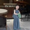 Conjunto de Verão Macacão de Alça para Meninas 2025 Novo Bebê Menina Estilo Coreano Conjunto de Duas Peças Tendência de Roupa Infantil de Verão