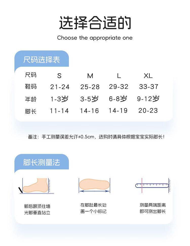 S size 1-3 years old [recommended shoe size 21-24], M size 3-5 years old [recommended shoe size 25-28], L size...