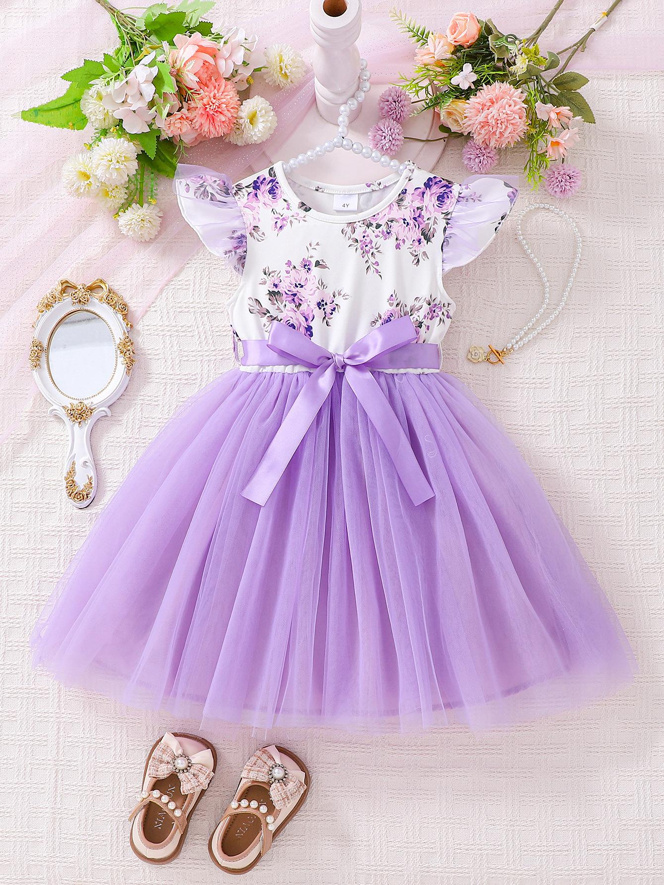 Compre Vestido de Menina Verão Roupa Infantil 2024 Novo Estilo Comércio Exterior Médio e Grande Infantil Meninas Moda Renda Manga Voadora Vestido de Princesa no atacado no Joom.pro