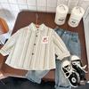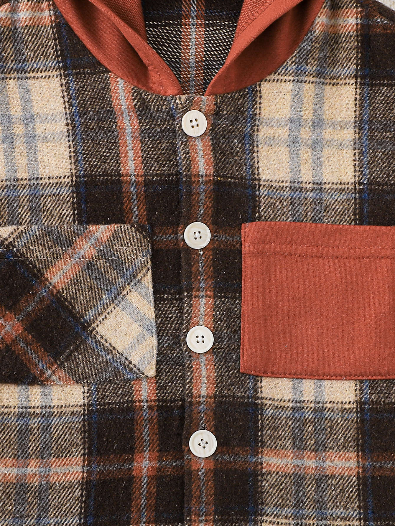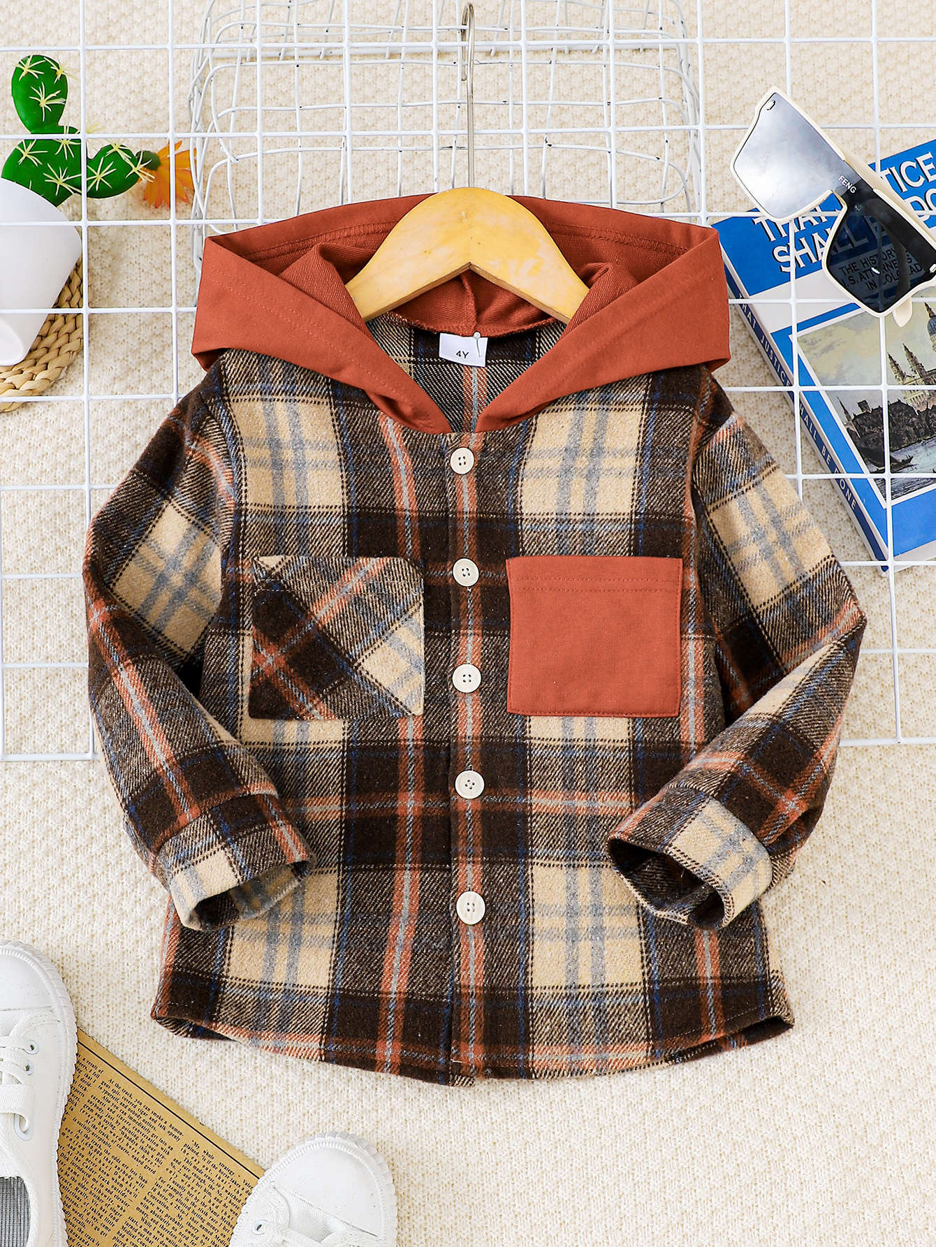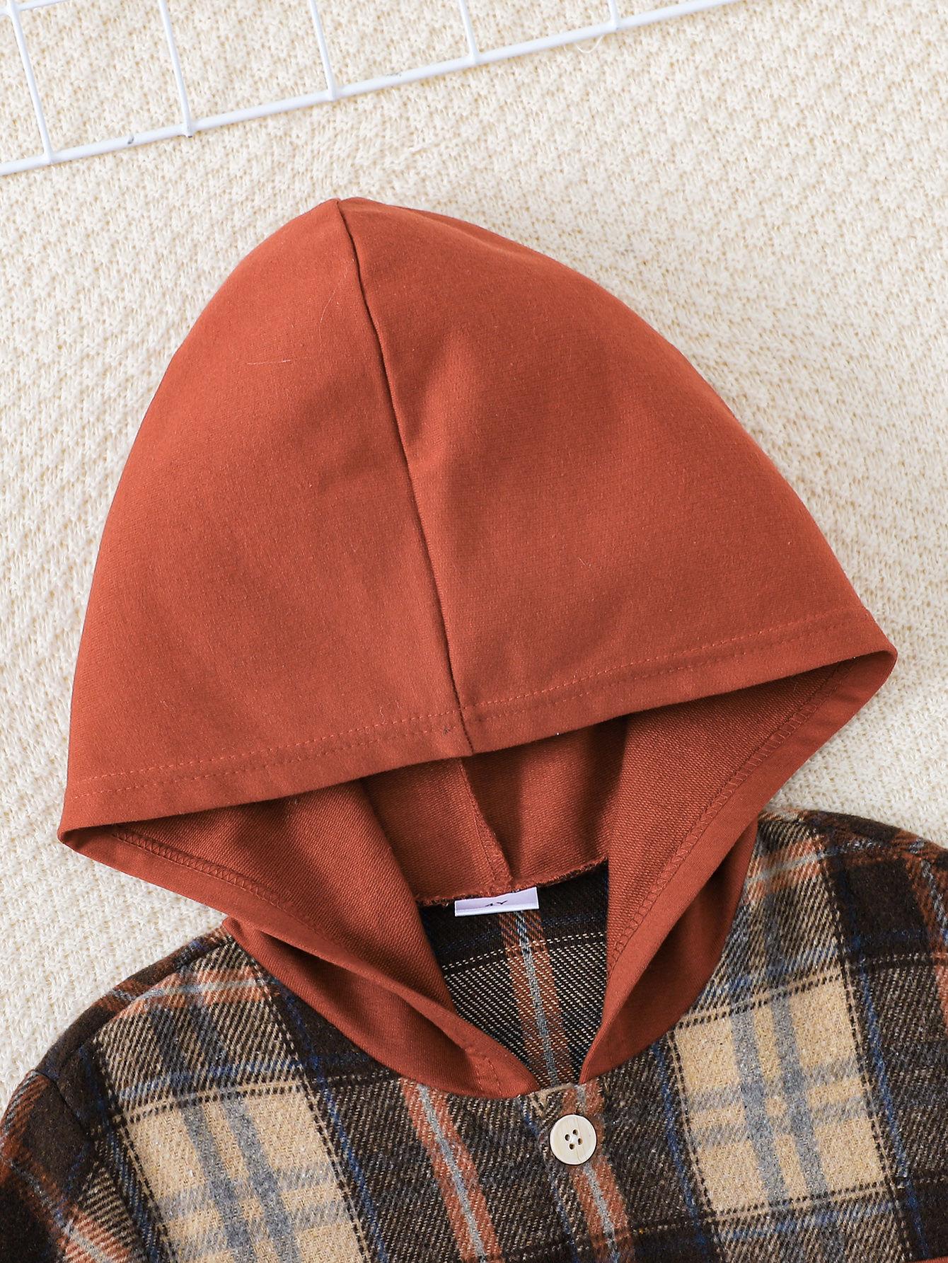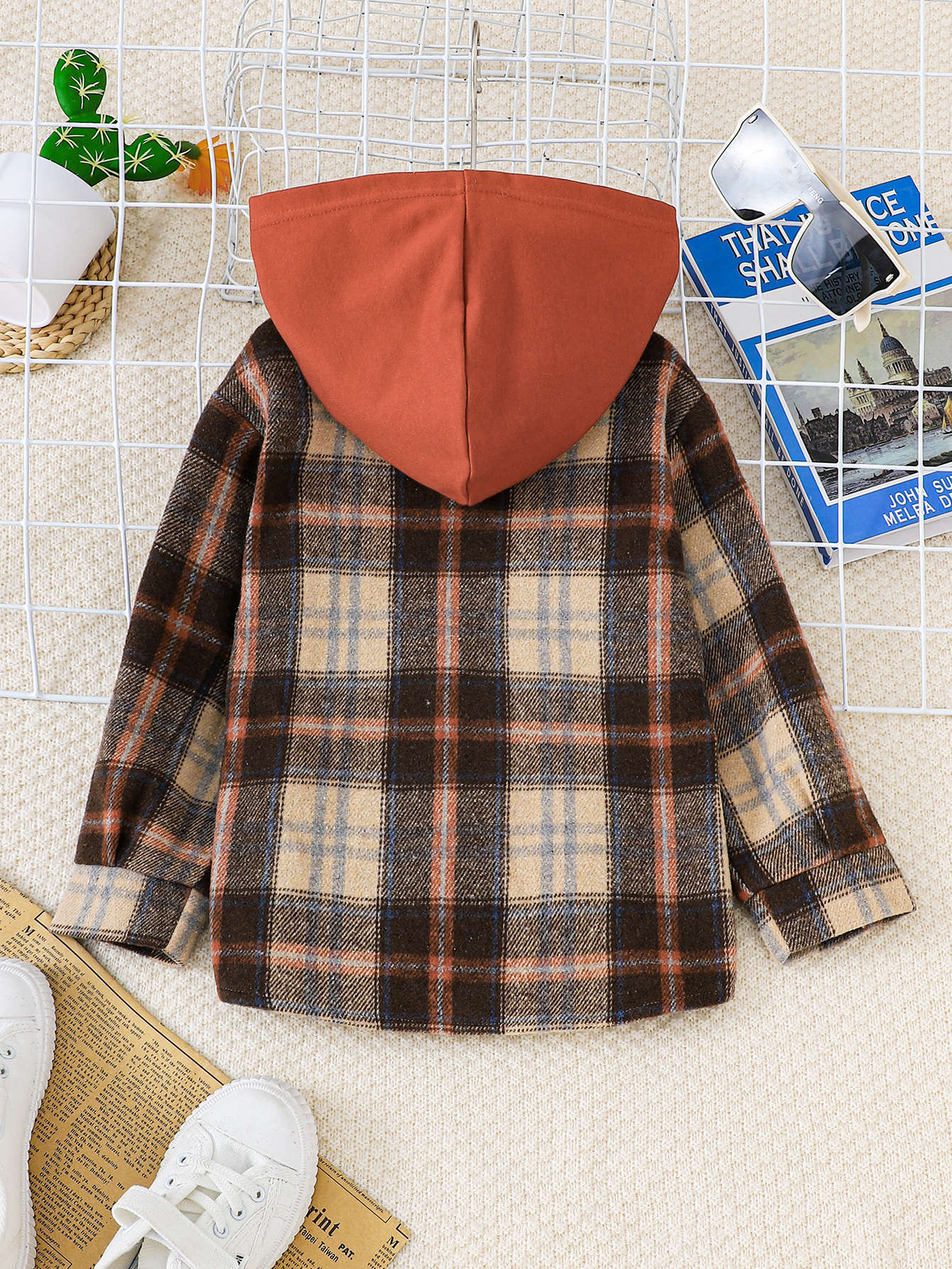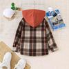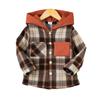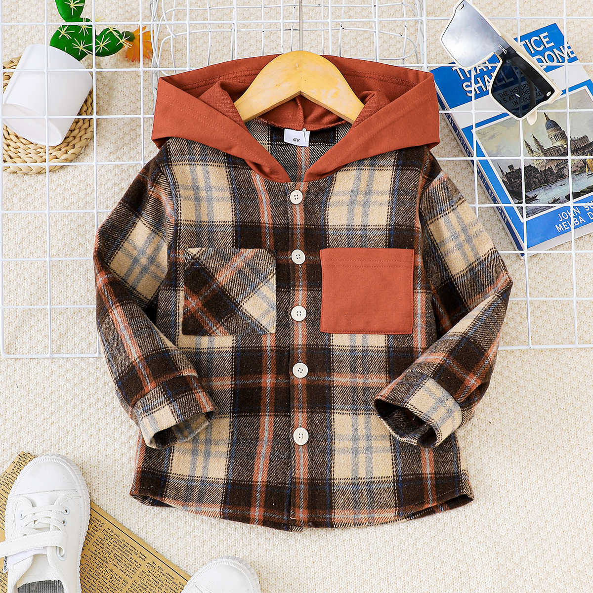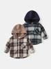 Camisa infantil com capuz 2025 outono nova coreana meninos xadrez manga longa camisa bebê top casual atacado