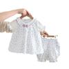 Terno de verão para meninas 2025 Novo conjunto de duas peças com gola de arco de verão para bebês infantis, manga curta, moda casual