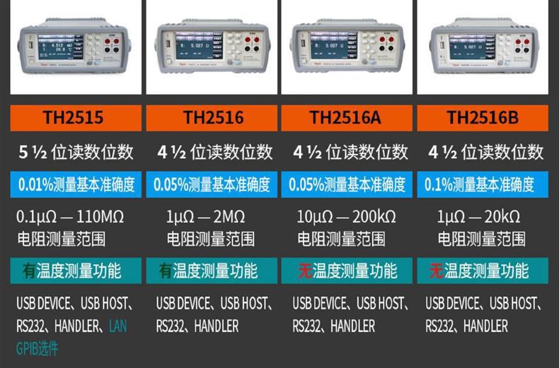 TH2511A, TH2512+, TH2512A+, TH2512B+, TH2512 patch cord, TH2516B (standard version cost-effective), TH2516A, T...
