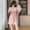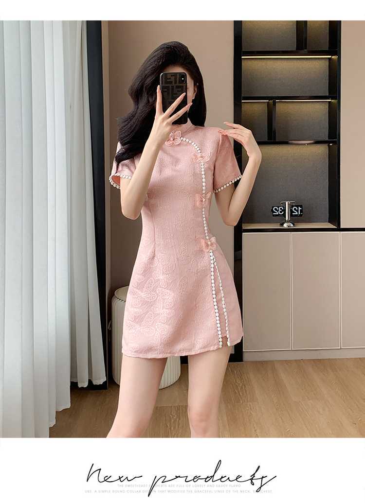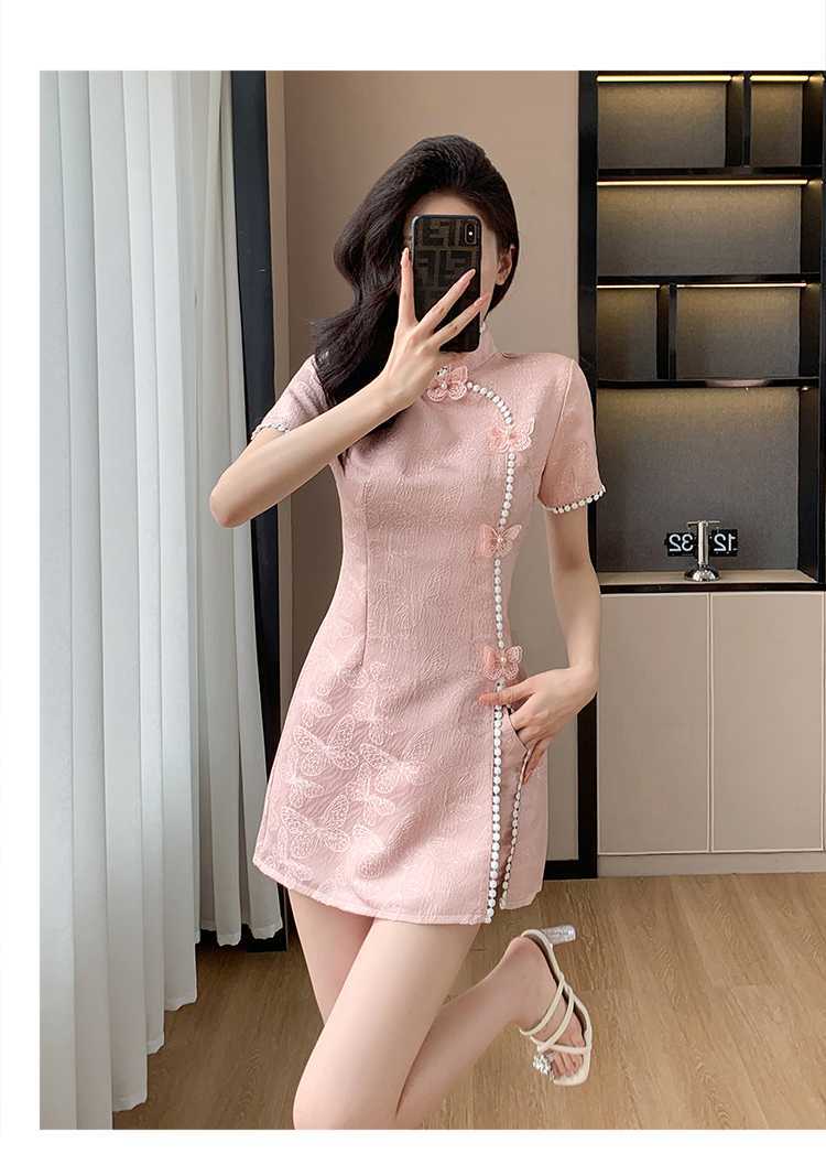 Foto real em estoque 2024 verão novo chinês jacquard borboleta costura melhorado cheongsam vestido shorts conjunto de duas peças
