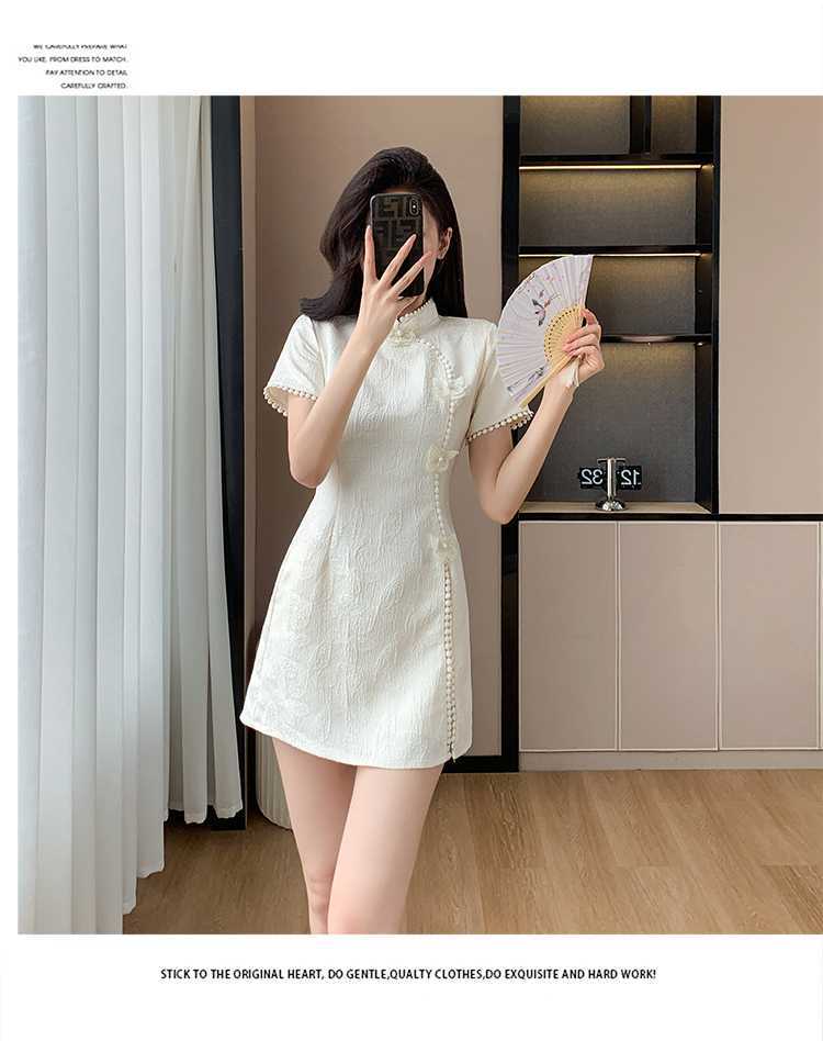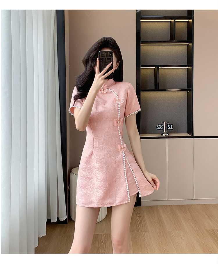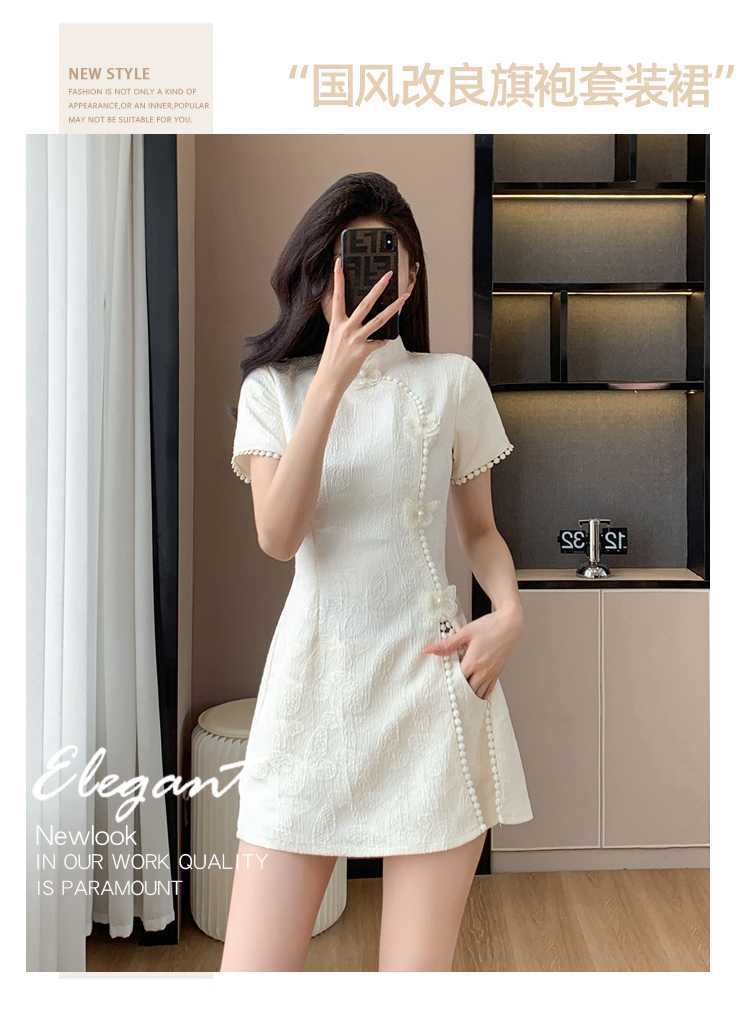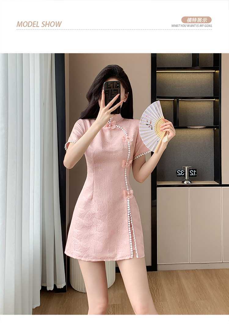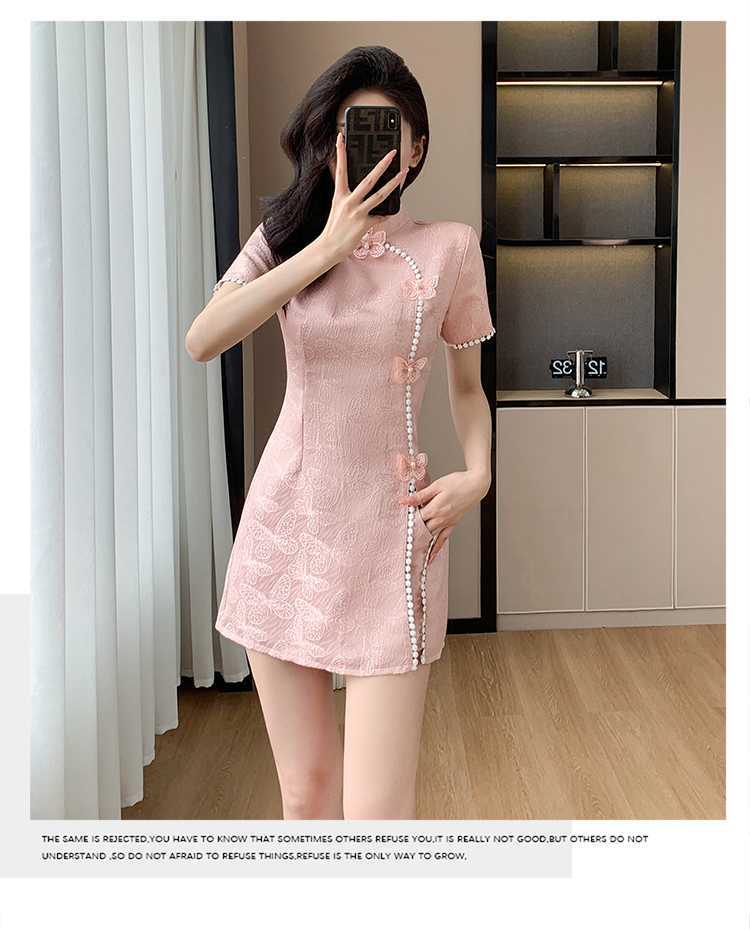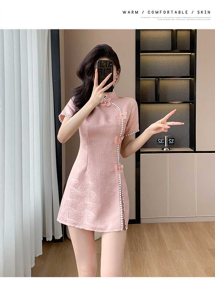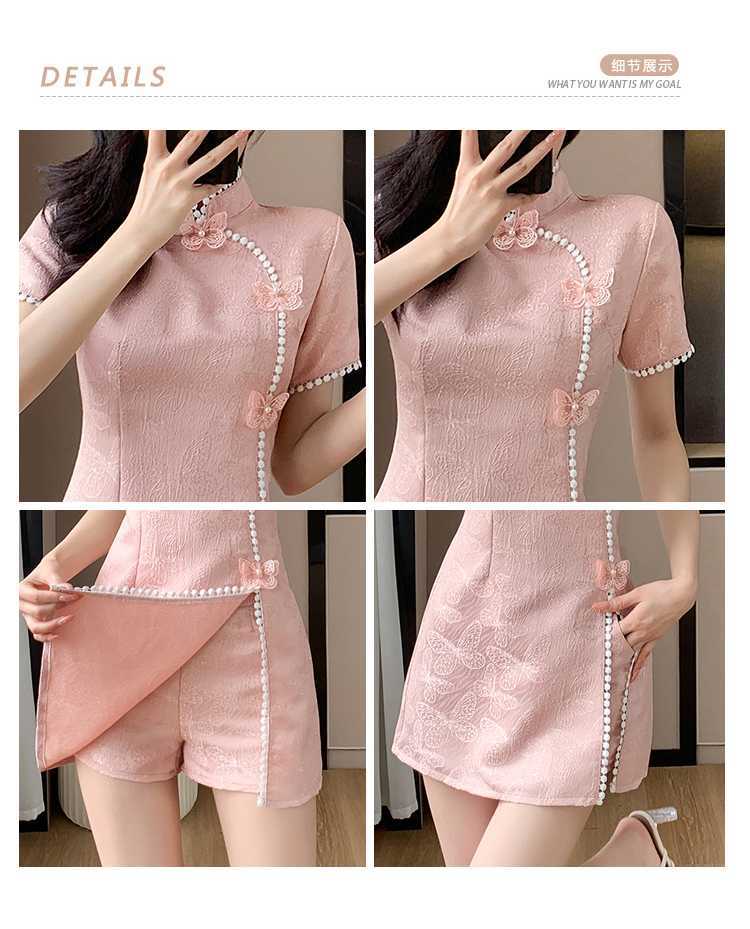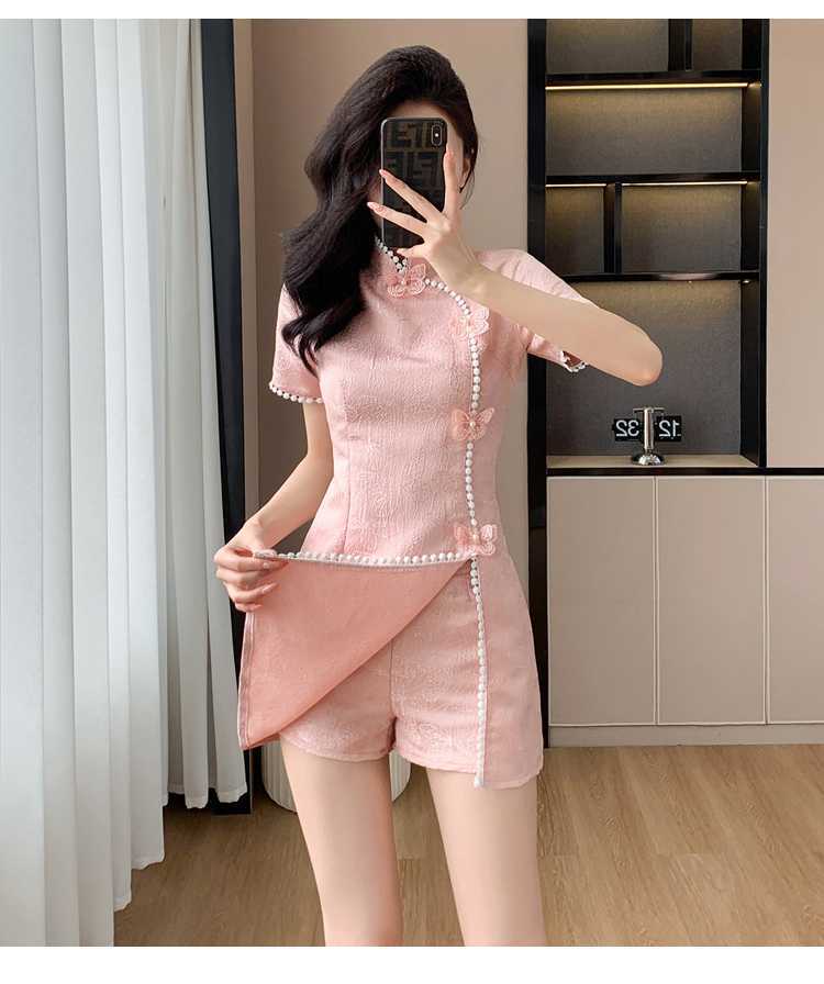 Compre Foto real em estoque 2024 verão novo chinês jacquard borboleta costura melhorado cheongsam vestido shorts conjunto de duas peças no atacado no Joom.pro