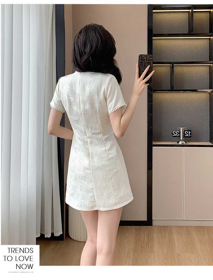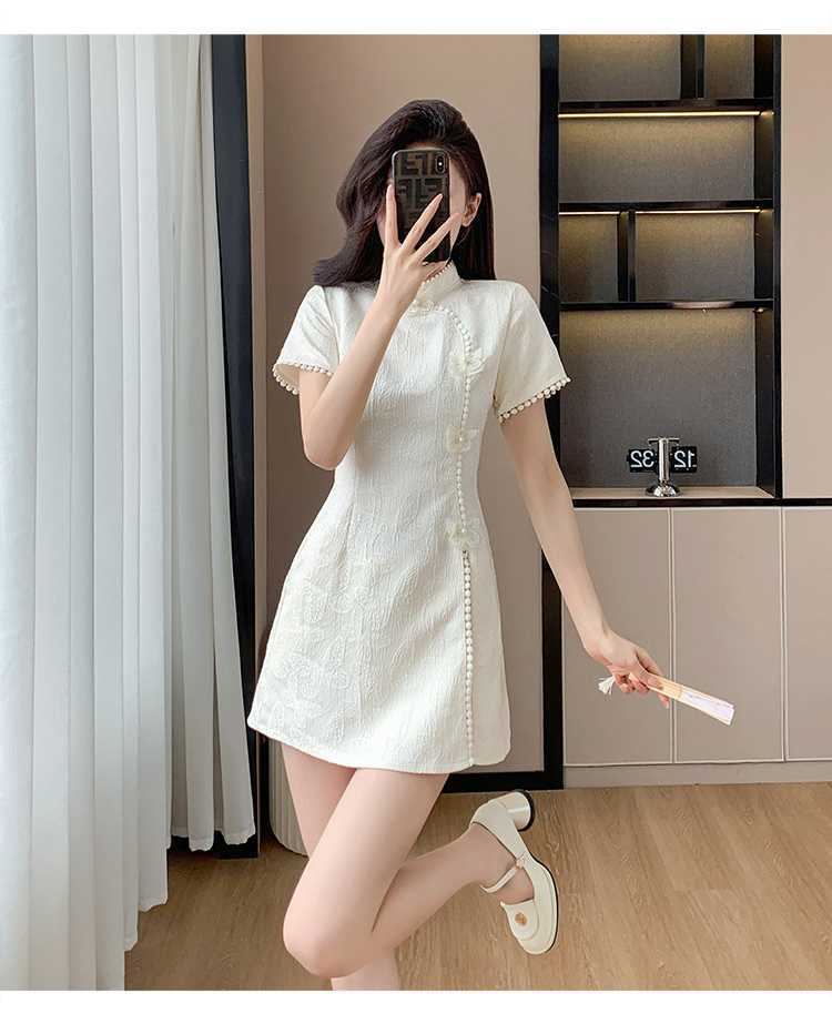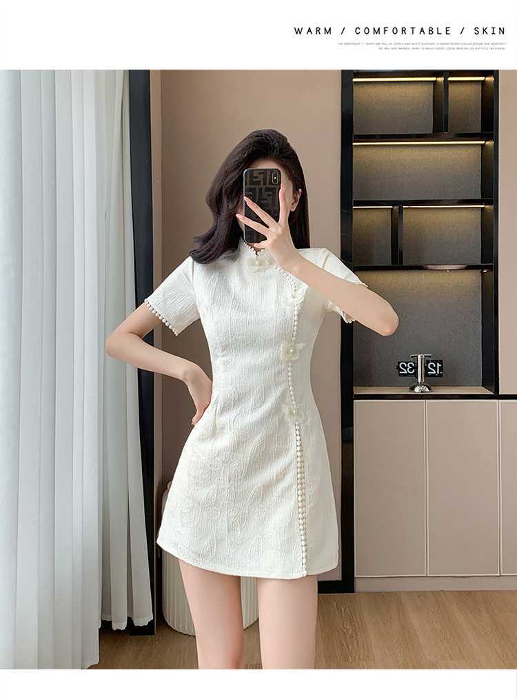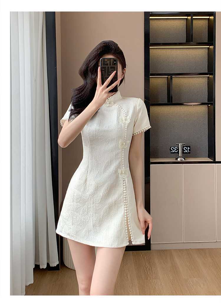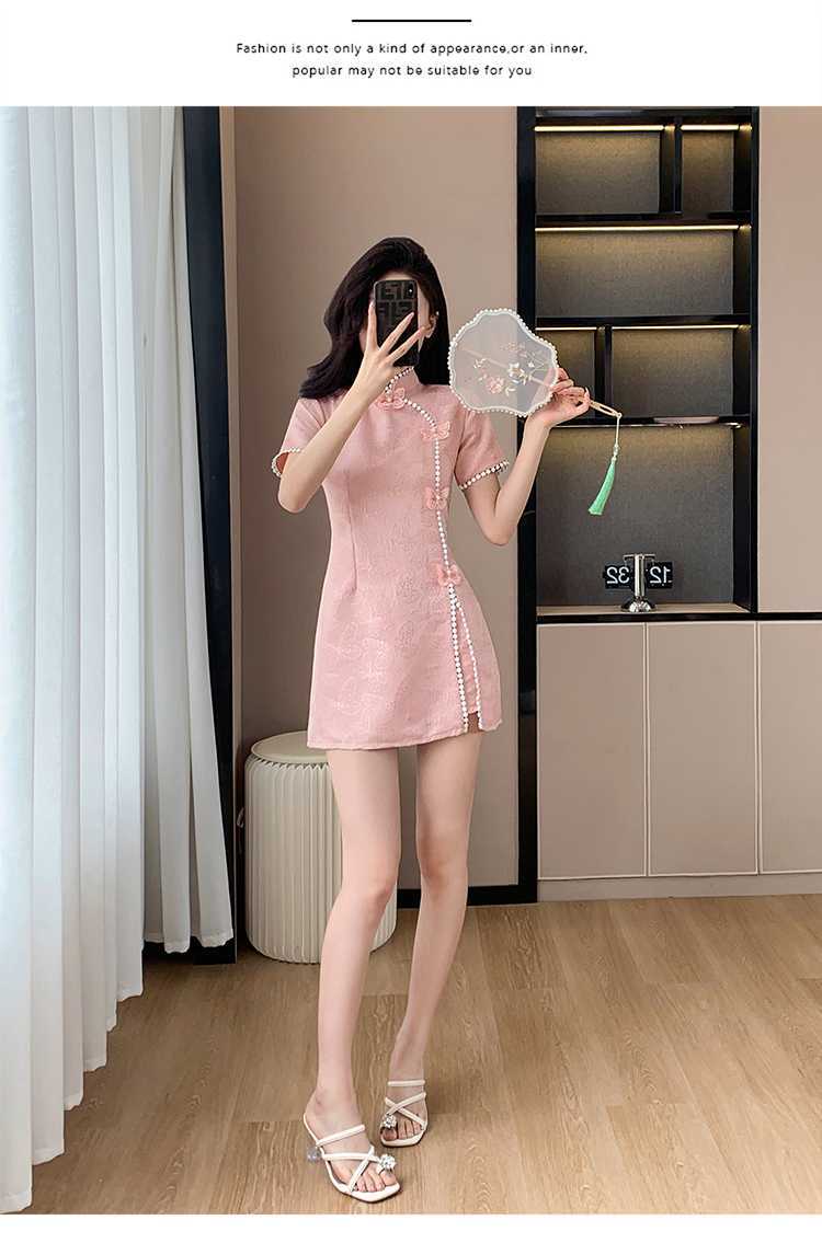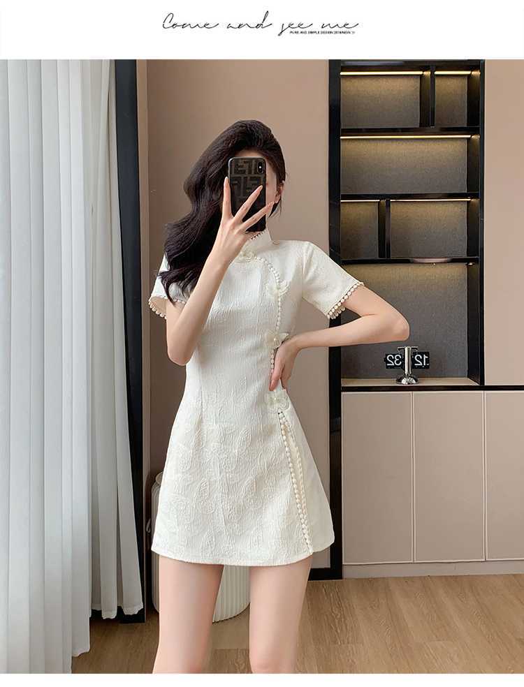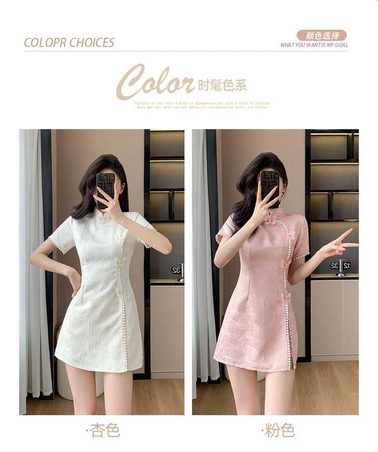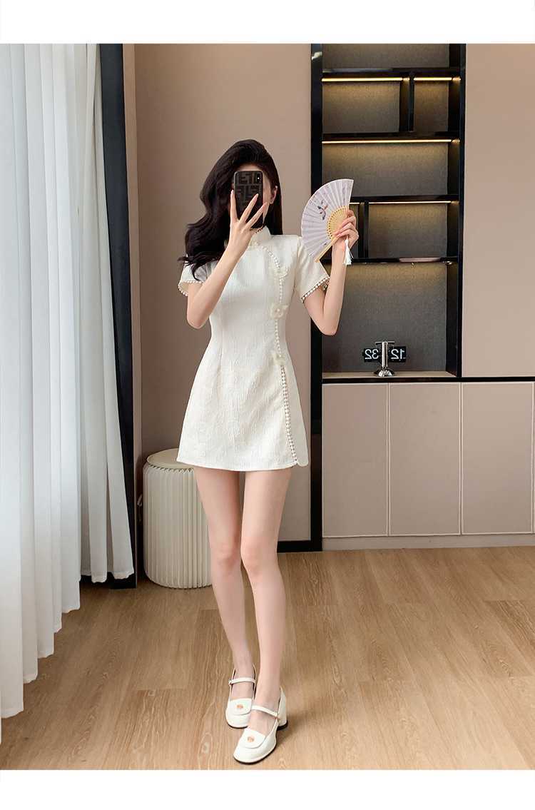 Compre Foto real em estoque 2024 verão novo chinês jacquard borboleta costura melhorado cheongsam vestido shorts conjunto de duas peças no atacado no Joom.pro