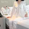 Pure Desire Style Lace Manga Longa Calças Casa Roupas Pijamas terno Simples Cor Sólida Doce Pijama Feminino Verão