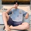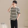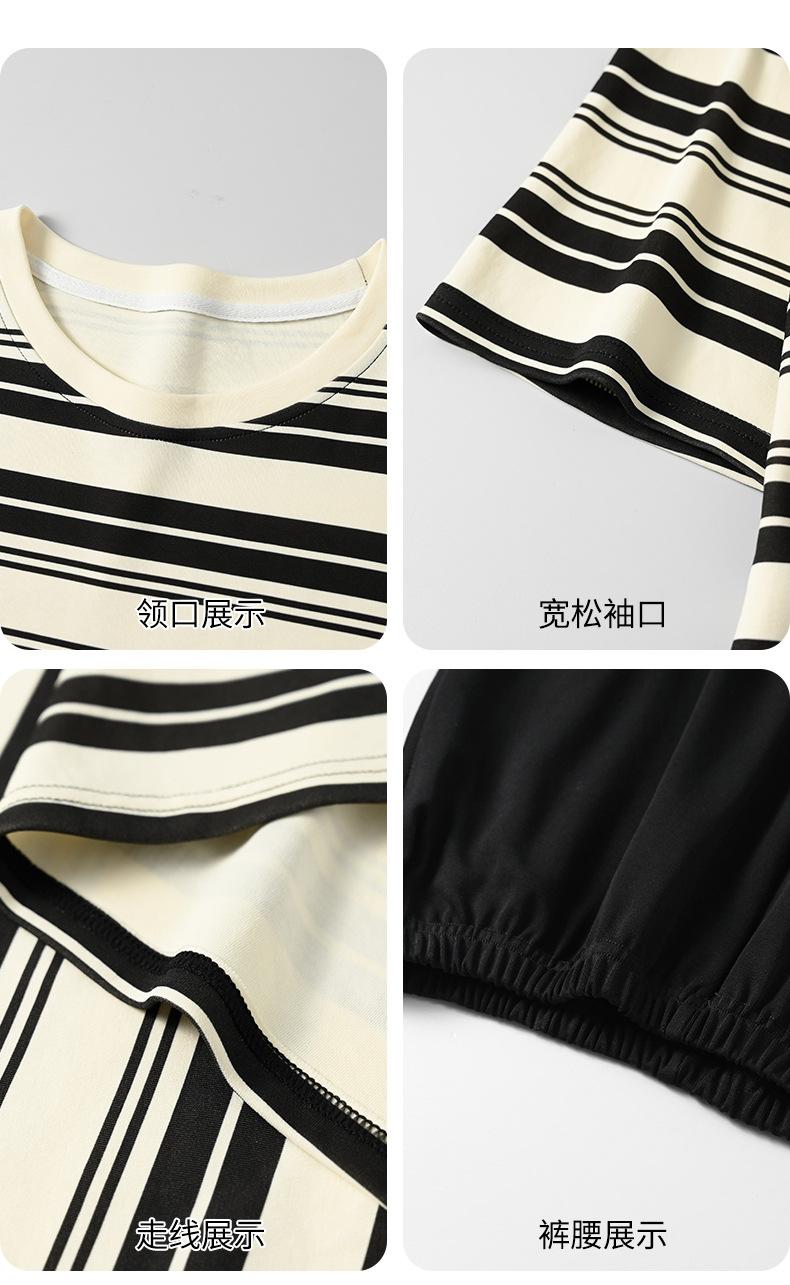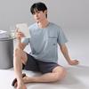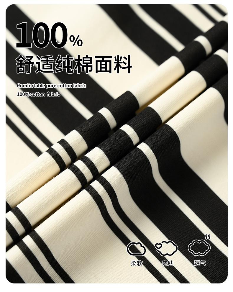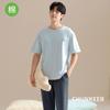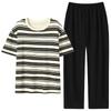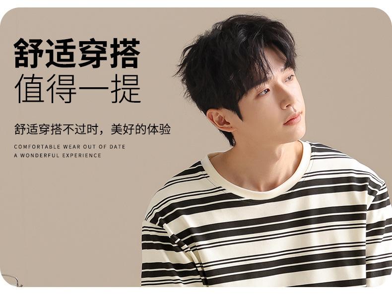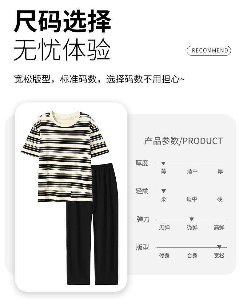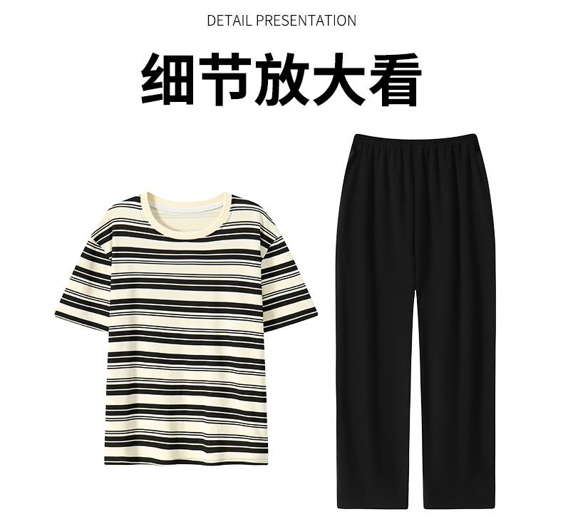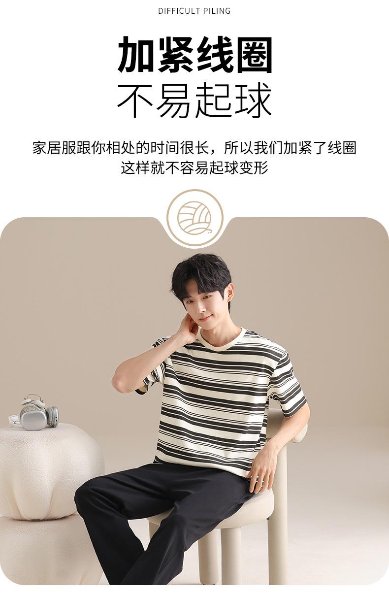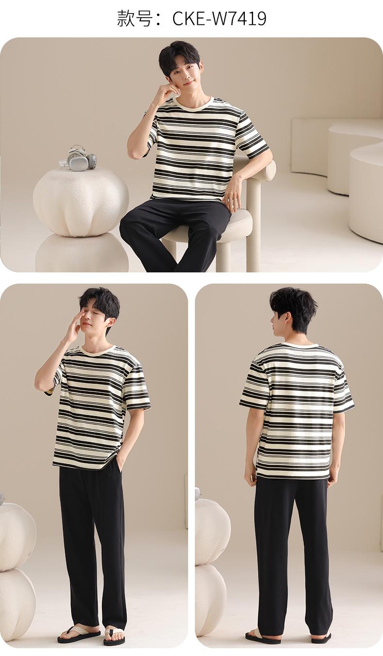 Pijama de algodão puro masculino, pulôver de verão, calças de manga curta, listrado, casual, conjunto completo, roupa nova, roupa de casa, terno