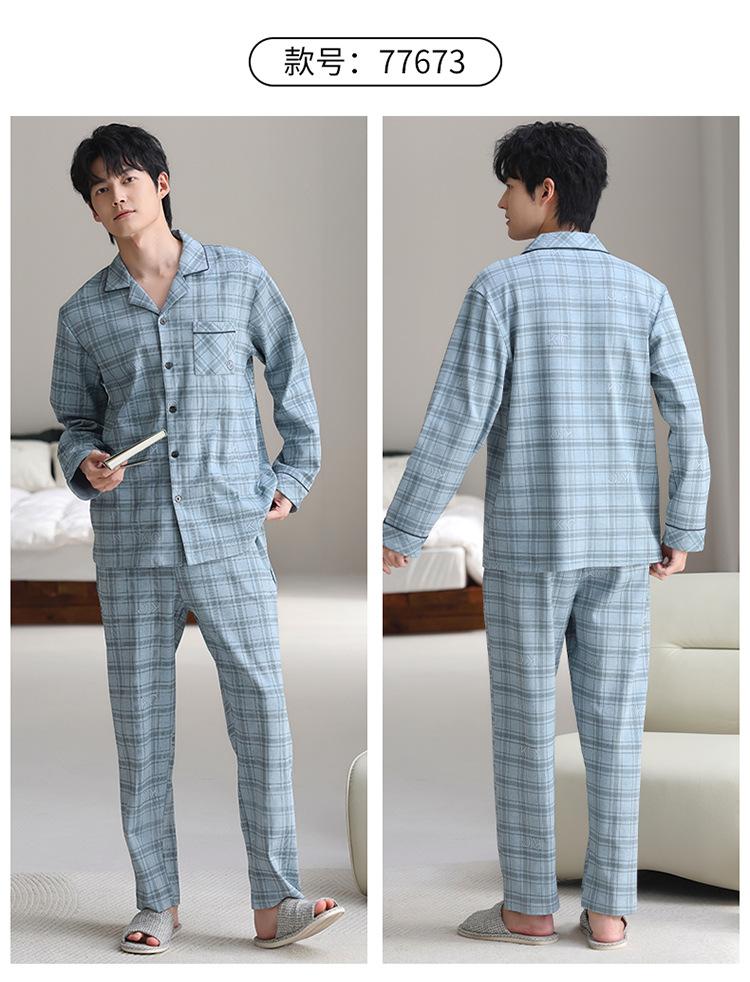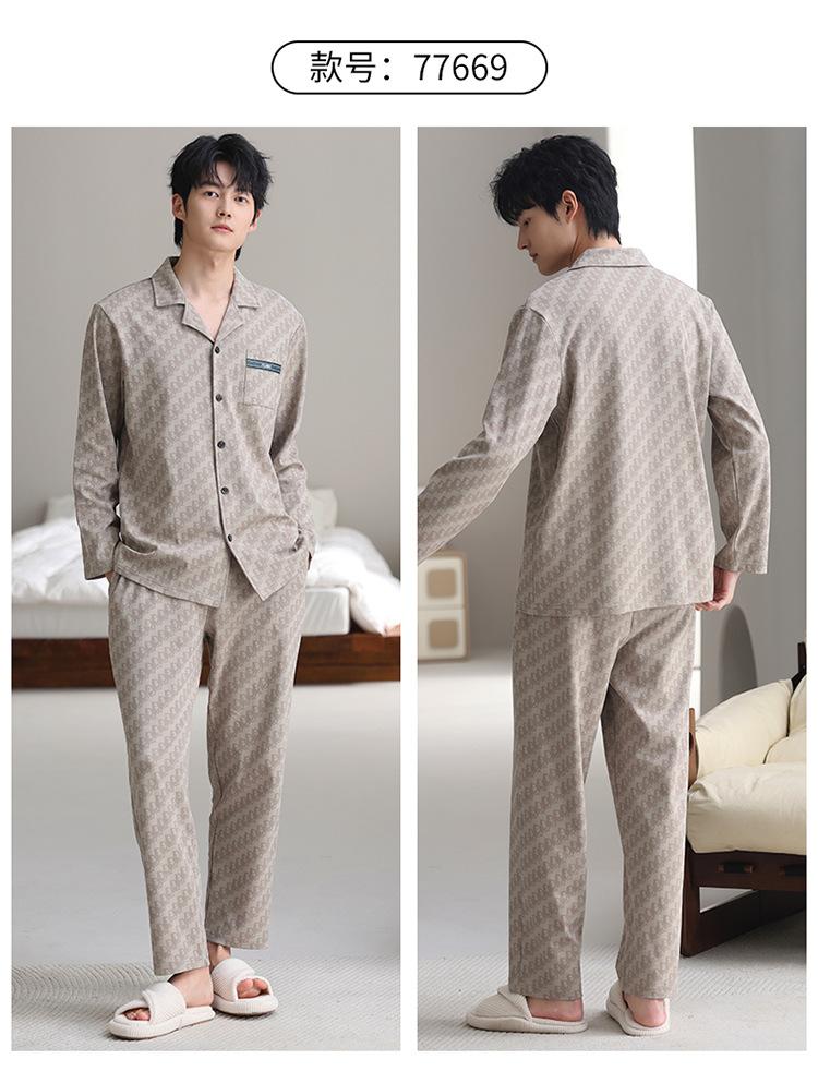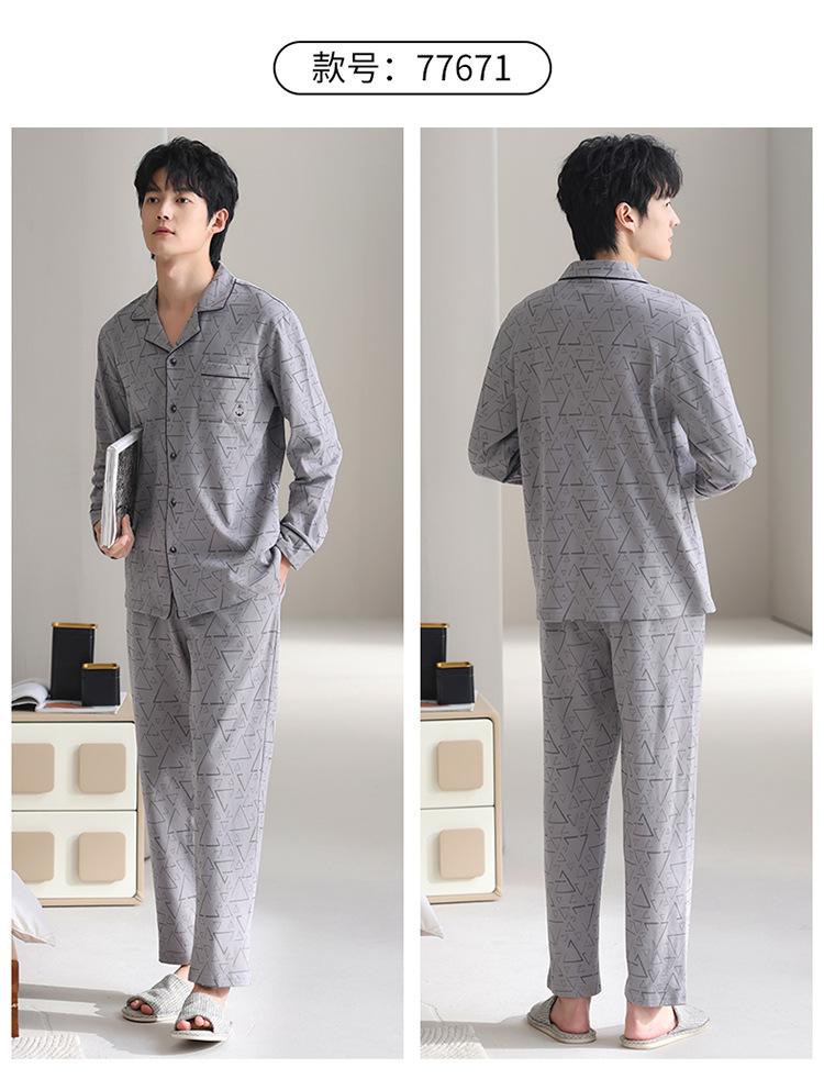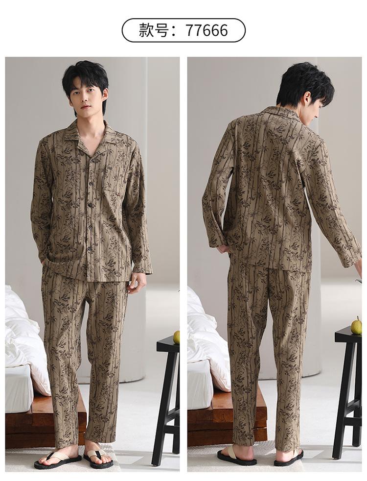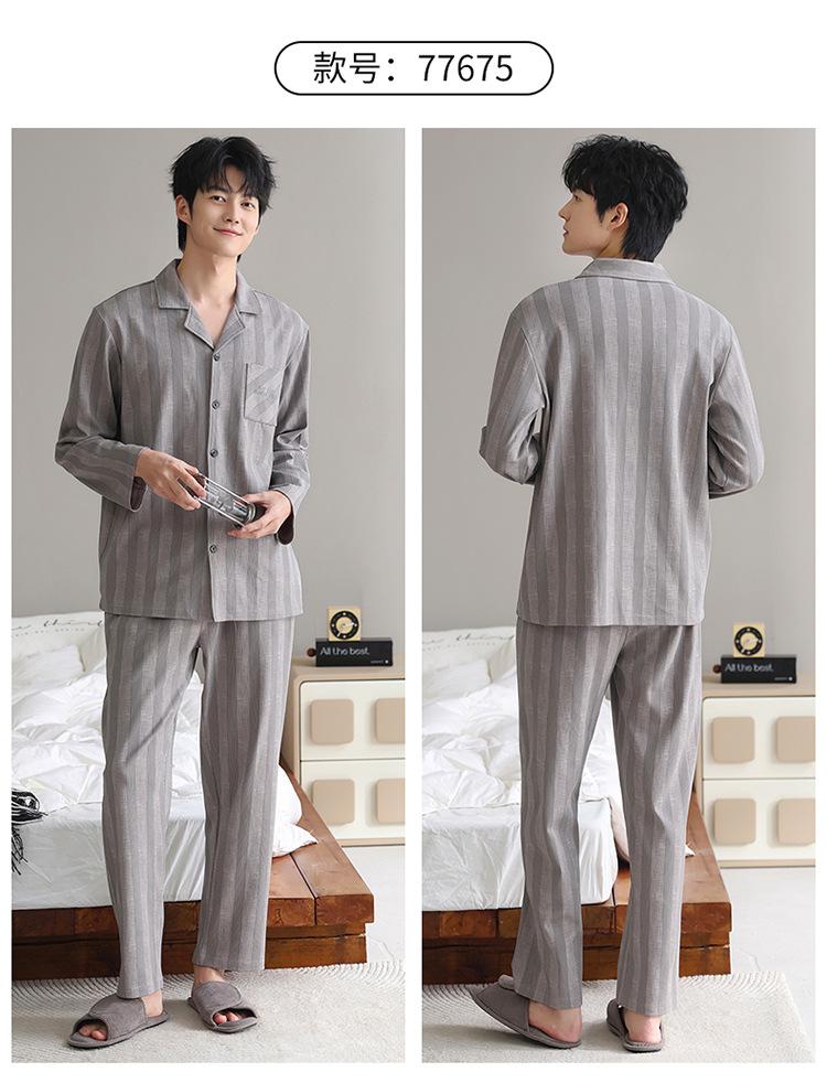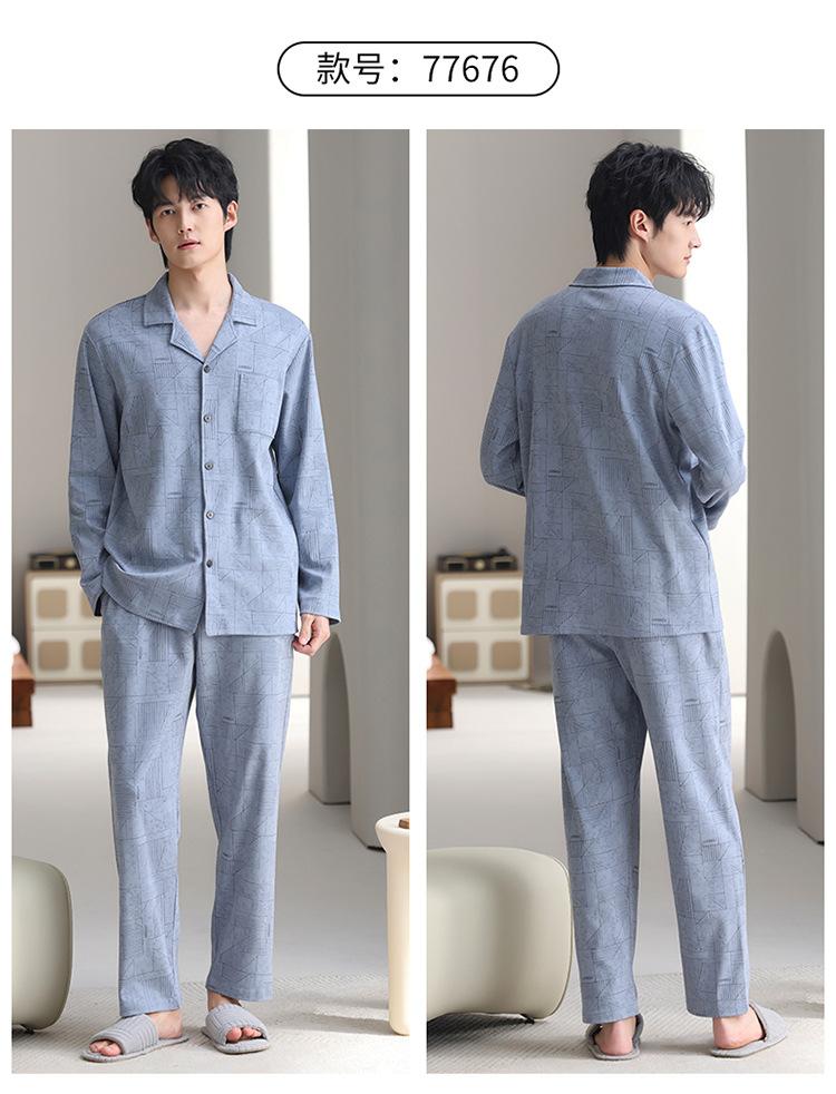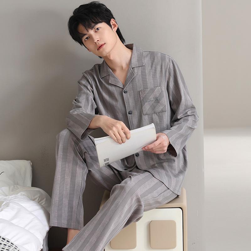 Novos pijamas masculinos de algodão primavera e outono manga comprida cardigan lapela calças simples casual roupas de casa terno desgaste exterior