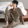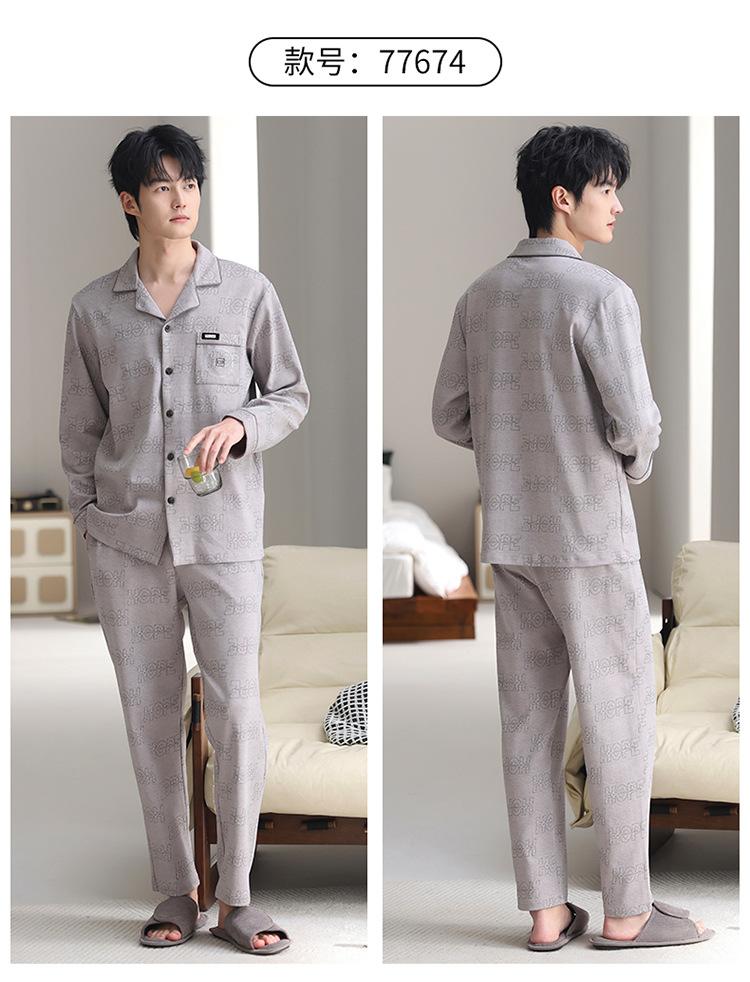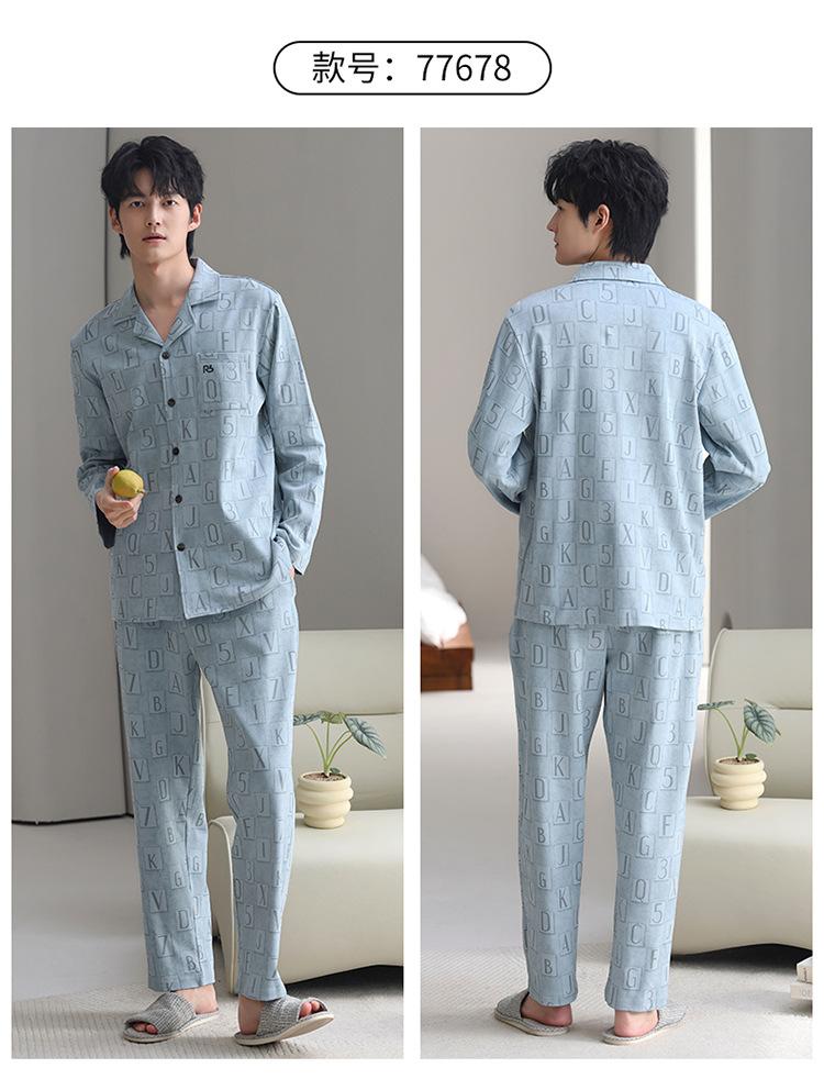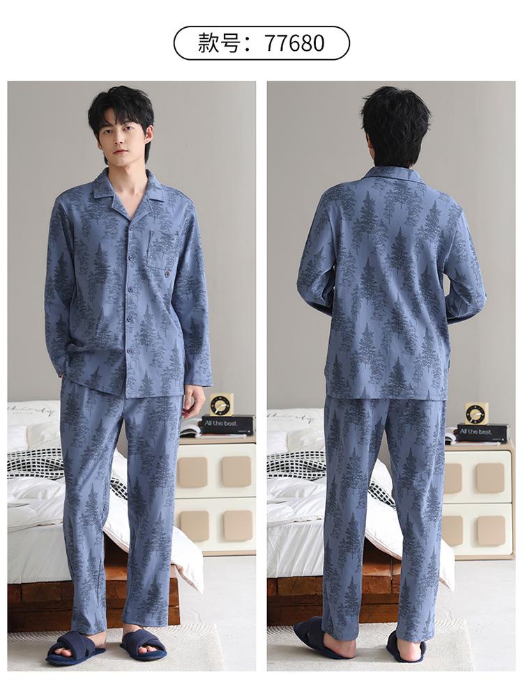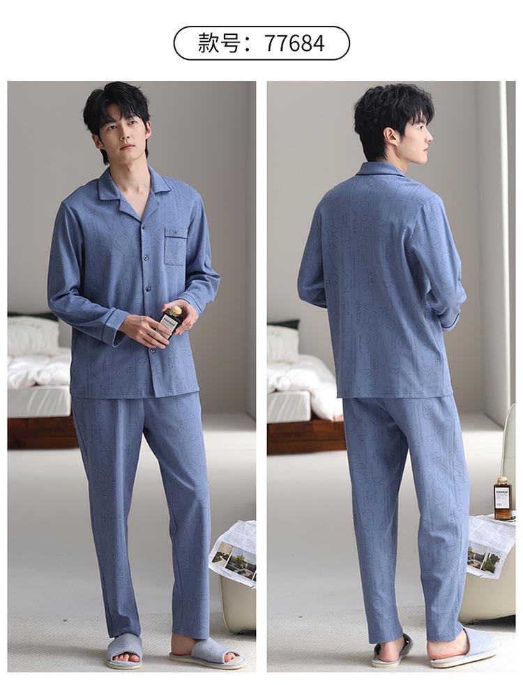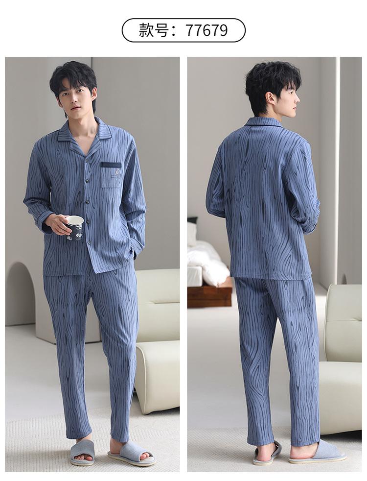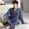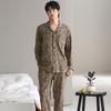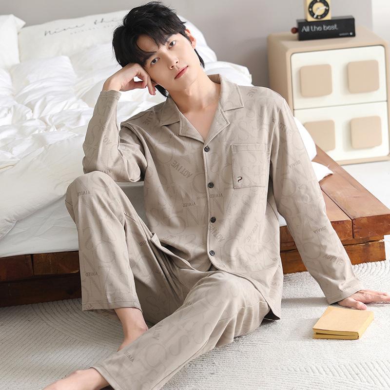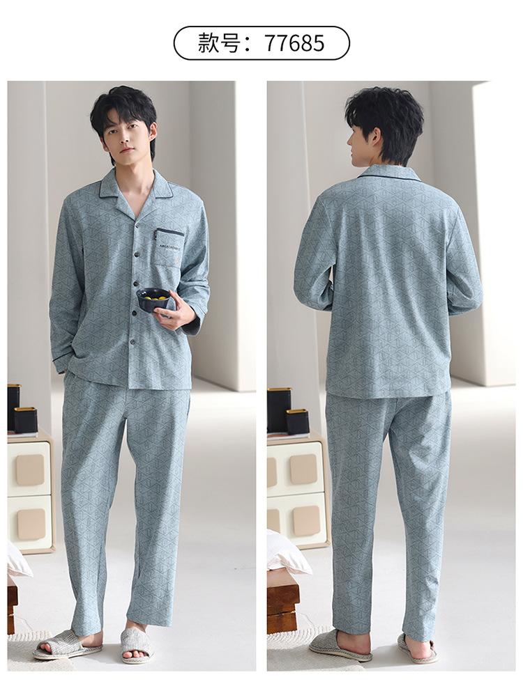 Novos pijamas masculinos de algodão primavera e outono manga comprida cardigan lapela calças simples casual roupas de casa terno desgaste exterior