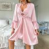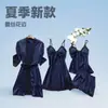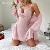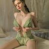 Pijamas divertidos e sensuais de verão, novos, costurados em cetim, renda, decote em V profundo, camisola feminina, roupas para casa, terno 2029
