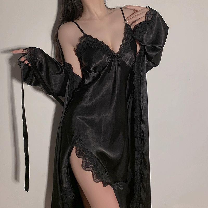 2024 Novos pijamas de renda sexy sling femininos verão seda gelo de alta qualidade decote em V com almofada no peito camisola primavera e outono