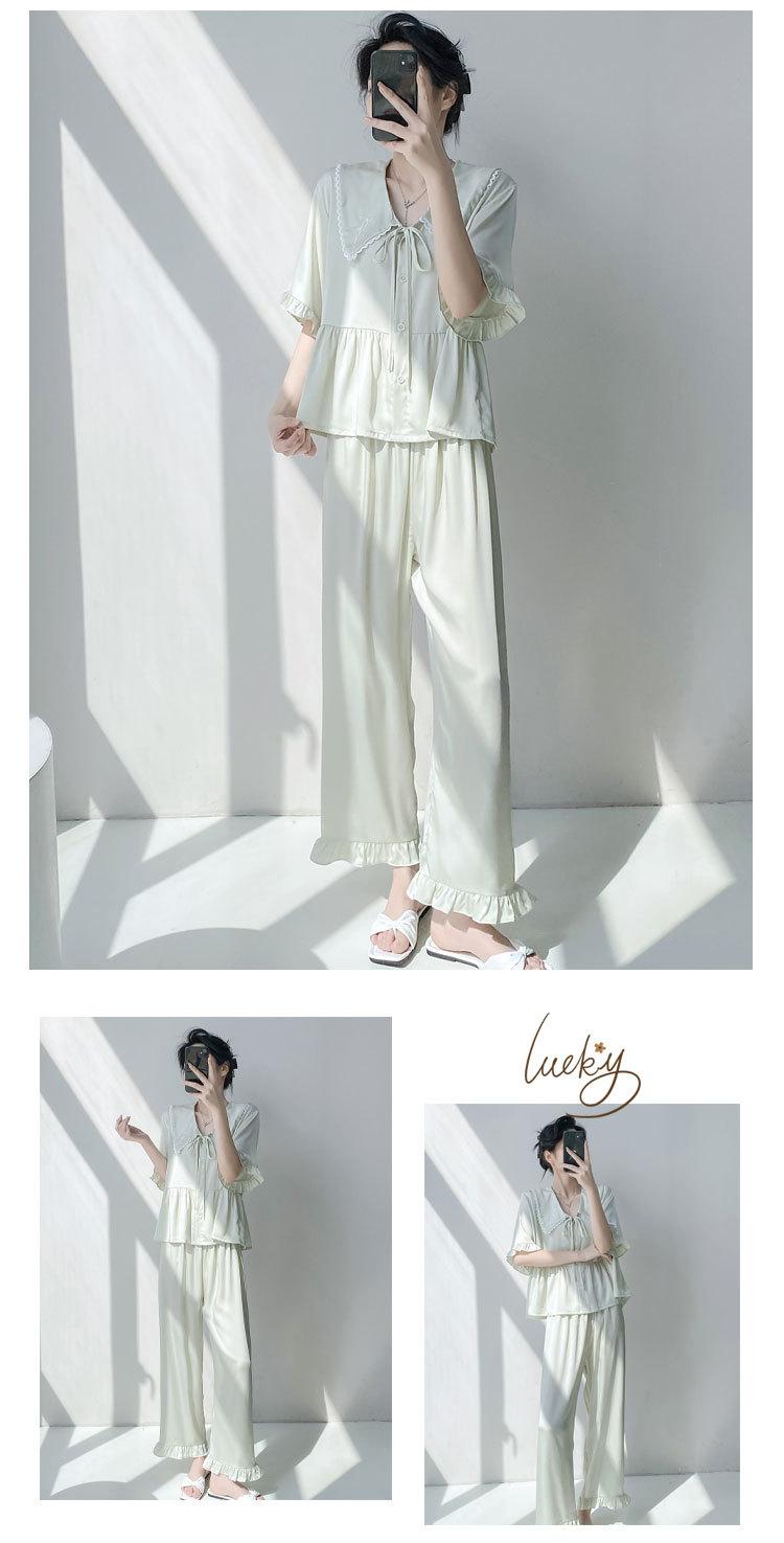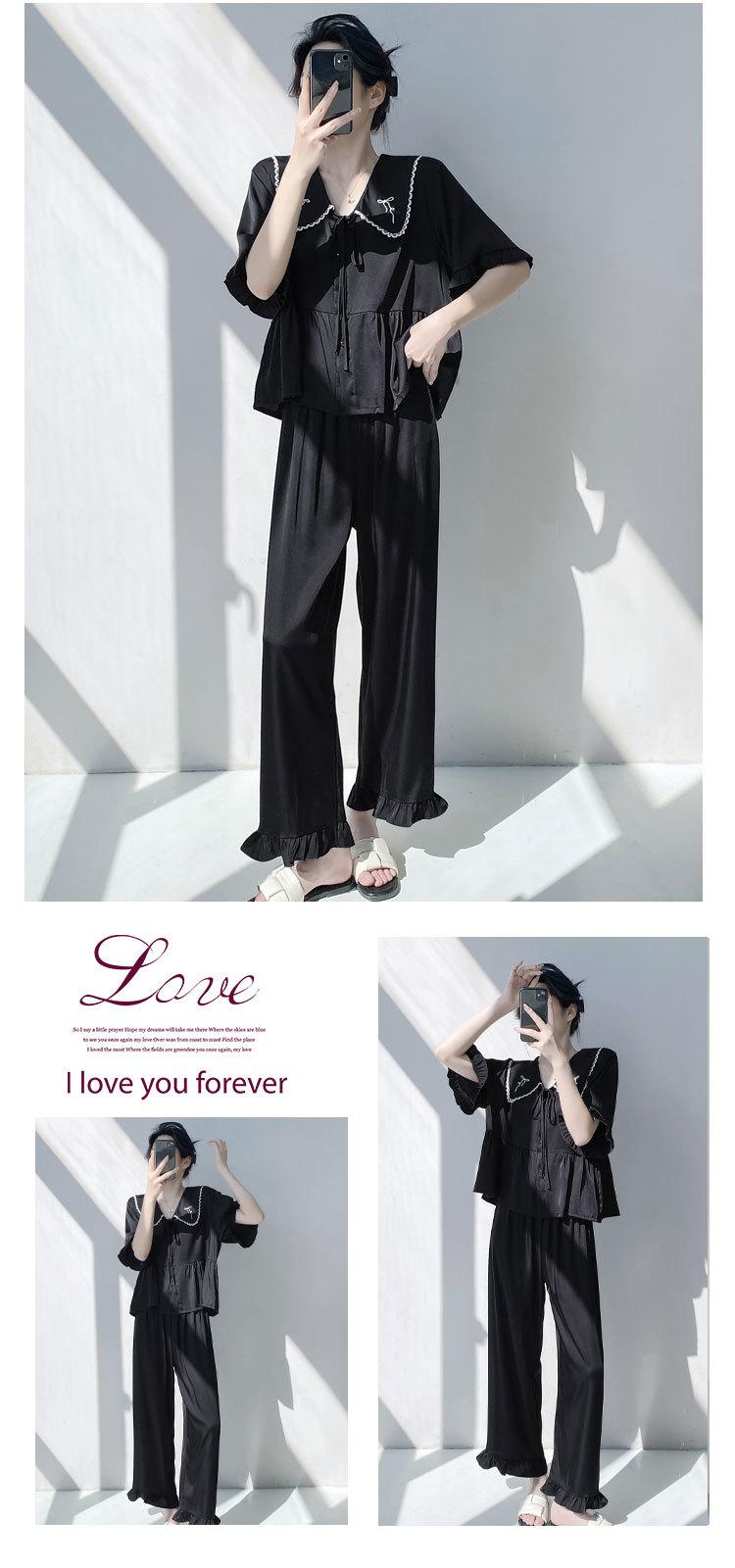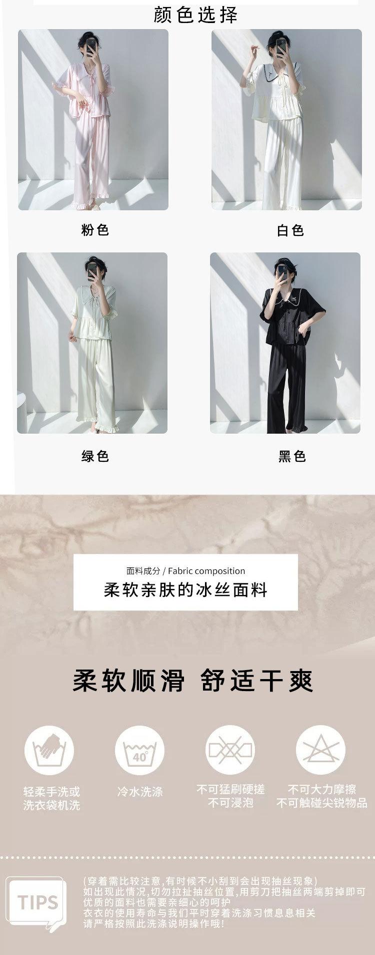 Pijamas femininos de manga curta, calças, primavera e outono, seda fina, gelo, duas peças, terno, uso externo, simulação de seda, roupas para casa, verão