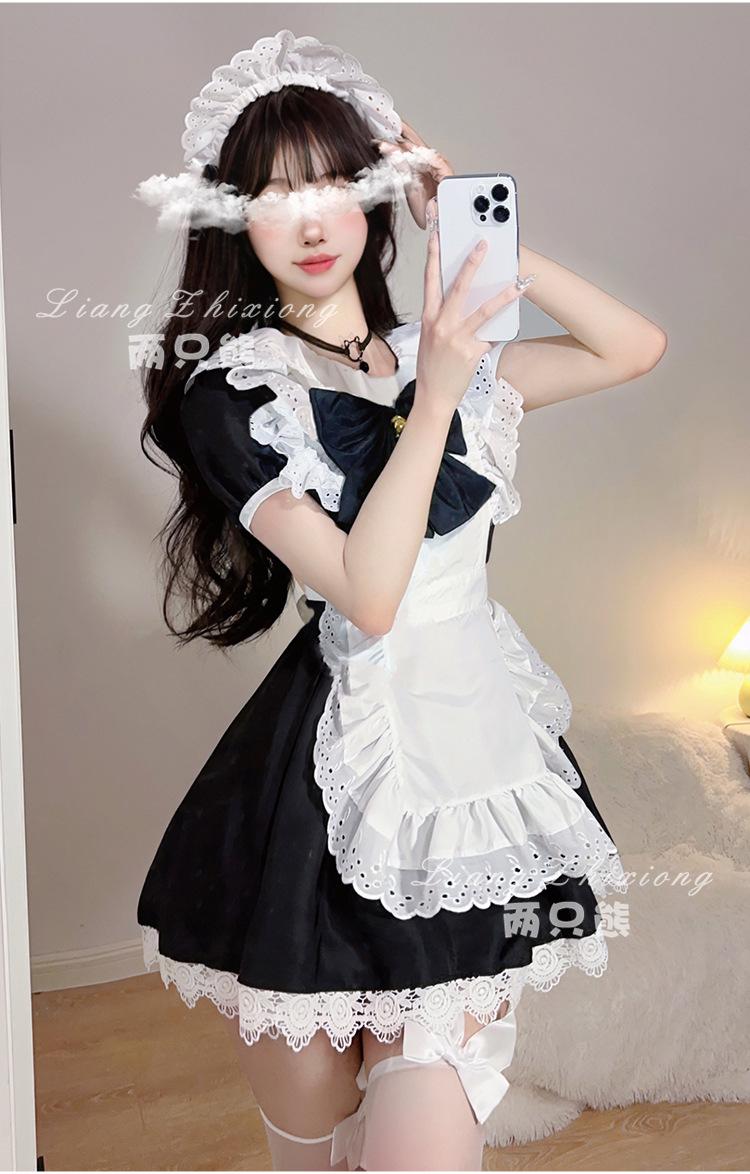 Vestido de empregada japonesa preto e branco Lolita vestido de menina macia anime Princesa saia grande cos roupas uniforme de empregada terno